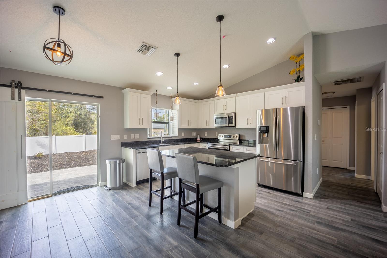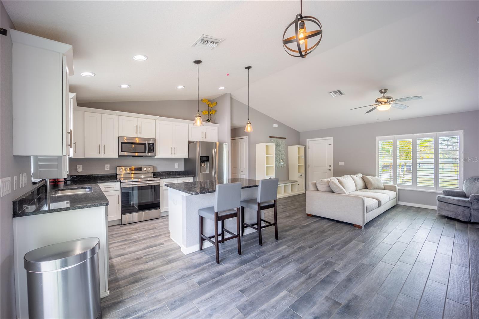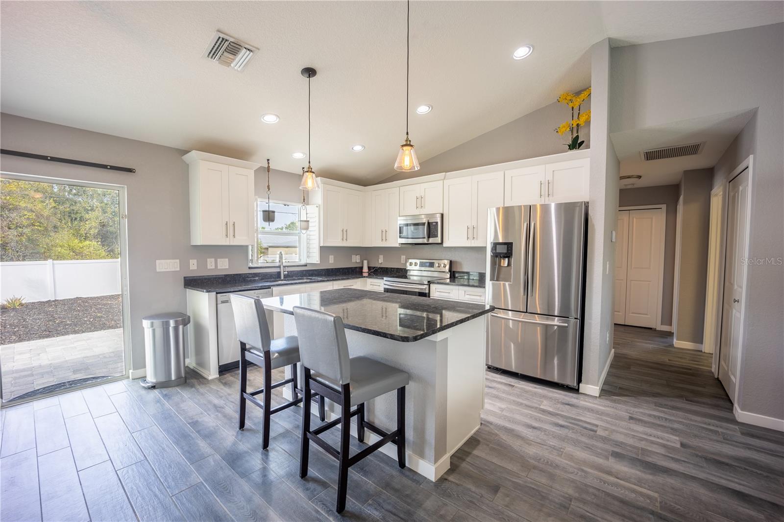 Uma ou mais fotos foram praticamente encenadas. Construído em 2017 e fora da zona de inundação, esta elegante casa de North Port apresenta acabamentos modernos elegantes, um quintal cercado e um pátio lindamente projetado para entretenimento. Com balcões de granito, aparelhos inoxidáveis e design limpo e minimalista, é a mistura perfeita de conforto e vida contemporânea. Descubra a elegância moderna em 4373 Atwater Dr - sua próxima casa de sonho aguarda! Aninhado no coração vibrante de North Port, esta imaculada residência de um andar de 2017 oferece uma mistura encantadora de estilo moderno e vida serena. Com um espaçoso layout de 1.300 pés quadrados, esta casa não é apenas uma residência; É um retiro projetado para quem aprecia o bom equilíbrio entre design e funcionalidade. Entre em uma cativante área de estar em plano aberto, onde o estilo encontra conforto. A cozinha elegante é um sonho culinário com armários brancos, bancadas impressionantes de granito escuro e hardware prateado brilhante, complementado por aparelhos de aço inoxidável de primeira linha e uma ilha prática-perfeita para preparação de refeições e reuniões sociais. Flua perfeitamente para a sala de estar, onde pisos largos e cinza e paredes cinza macias formam um cenário moderno e minimalista, ideal para relaxar ou divertir. A transição para o ar livre, onde um pátio lindamente pavimentado convida você a desfrutar de refeições ao ar livre e churrascos de fim de semana. Cercado por paisagismo exuberante com caminhos de cascalho branco e camas de cobertura escura, este espaço cercado é o seu santuário privado por relaxar ou hospedar amigos e familiares. Localizado a apenas 32 quilômetros das praias primitivas da Costa do Golfo e com fácil acesso a comodidades locais, como shopping centers, opções de refeições e instalações recreativas, incluindo um YMCA, parque público e biblioteca. Beneficie -se do excelente acesso às melhores escolas e instalações de saúde, enquanto desfruta da segurança de viver fora de uma zona de inundação. Esta propriedade é uma descoberta rara no porto norte, oferecendo a mistura perfeita de excitação e tranquilidade. Aja rapidamente para garantir sua chance de visualizar 4373 Atwater Dr e comece a imaginar sua vida neste lar excepcional. Entre em contato conosco hoje para agendar sua visita e experimentar o fascínio da vida costeira com todas as conveniências modernas que você deseja.