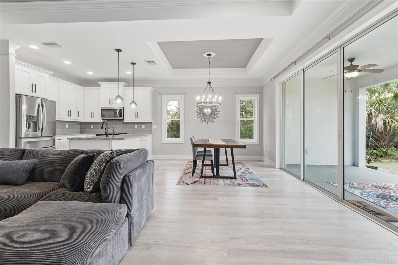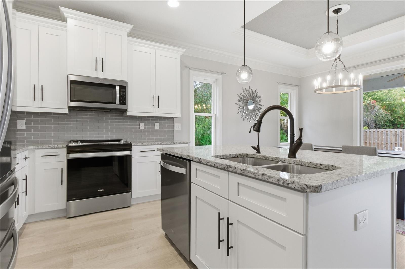 Lindamente construída em 2021, esta casa de 3 quartos e 2 banheiros oferece um layout espaçoso e bem projetado com tetos altos, portas internas de 2,5 metros e uma combinação de piso laminado com aspecto de madeira nas principais áreas de estar e piso de cerâmica nas áreas úmidas. Os espaços abertos de estar e jantar são realçados por tetos de bandeja e abundantes sancas, criando uma atmosfera luminosa e acolhedora que funciona bem tanto para a vida cotidiana quanto para o entretenimento. Alguns móveis já estão incluídos, o que você vê é o que você ganha. A cozinha para refeições foi cuidadosamente projetada com eletrodomésticos de aço inoxidável, bancadas de granito, backsplash de azulejos e uma grande ilha central com assentos no balcão para café da manhã. Armários altos com sancas, portas e gavetas com fechamento suave e uma despensa generosa proporcionam excelente armazenamento e funcionalidade. A área de jantar adjacente tem vista para o quintal, oferecendo um ambiente confortável para refeições e reuniões. Portas de vidro deslizantes da área de estar levam ao pátio e quintal, ampliando o espaço de estar ao ar livre. A suíte principal serve como um retiro privado, com tetos retangulares, acesso direto ao pátio, um grande closet e um banheiro privativo com azulejos personalizados, pia dupla, banheira de imersão e chuveiro com box de vidro. Os quartos de hóspedes são bem dimensionados, com amplo espaço no armário, e o banheiro secundário também possui azulejos personalizados com combinação de banheira/chuveiro. Os destaques adicionais incluem nenhum HOA, nenhuma taxa de CDD e a propriedade não está localizada em uma zona de inundação. Convenientemente localizada com fácil acesso às principais rodovias, lojas, escolas, parques e comodidades locais, esta casa bem conservada oferece acabamentos modernos, atualizações cuidadosas e um layout prático em um local desejável.