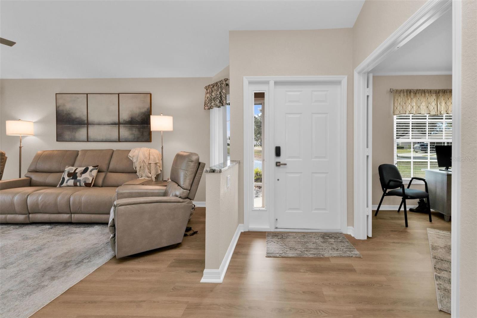 Impecavelmente renovada e verdadeiramente pronta para uso, esta villa lindamente decorada com 3 quartos e 2 banheiros está localizada dentro de um condomínio fechado privado em North Port e está situada fora de uma zona de inundação designada, oferecendo maior tranquilidade e potencial economia de seguro. A casa desfruta de vistas tranquilas para o lago e apresenta uma coleção cuidadosa de atualizações de qualidade, incluindo piso de tábuas largas, pintura interna fresca, lavanderia interna e uma cozinha atualizada com bancadas de granito e novos eletrodomésticos de última geração, armários personalizados, backsplash de azulejos em espinha e acabamentos modernos e limpos. As principais melhorias mecânicas incluem um telhado mais novo, ar-condicionado mais novo, um aquecedor de água quente mais novo e um protetor contra surtos de tensão em toda a casa, enquanto a proteção completa contra tempestades é fornecida com persianas sanfonadas em todas as janelas e três persianas elétricas que protegem ambos os lados da varanda e a entrada frontal blindada. A vida ao ar livre é aprimorada por um novo paisagismo e uma varanda nos fundos com vista para o lago, sem casas diretamente atrás da vila, oferecendo uma sensação bem-vinda de privacidade e calma. A garagem para dois carros possui piso de epóxi e tela extensível, e a casa é oferecida totalmente mobiliada para uso imediato. Os residentes se beneficiam de um HOA bem gerenciado que inclui manutenção externa e do terreno, estradas privadas, internet, reservas de garantia e acesso a um clube com sala de ginástica, espaços sociais e de reuniões e uma piscina aquecida com amplo deck e espreguiçadeiras, todos idealmente localizados perto de golfe, restaurantes, lojas e toda a gama de comodidades de North Port.