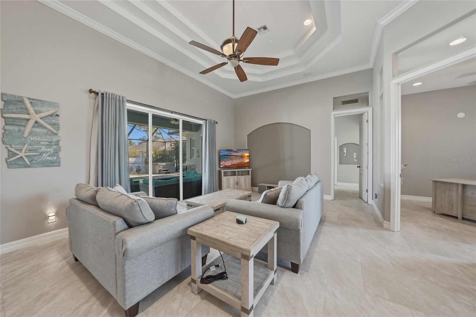 Descubra a vida confortável na Flórida nesta casa bem conservada e mobiliada de 4 quartos e 2,5 banheiros, localizada em um bairro tranquilo de North Port. NÃO É UMA ZONA DE INUNDAÇÃO! A propriedade apresenta um layout aberto convidativo com áreas de estar iluminadas que fluem facilmente para a área de jantar e cozinha, criando uma configuração funcional para a vida cotidiana. A cozinha possui armários de madeira com fechamento lento, bancadas em granito, eletrodomésticos em aço inox, balcão e copa. Duas áreas de estar incluem uma ampla sala de estar com teto triplo e controles deslizantes de vidro, a sala com controles deslizantes de vidro que levam à varanda e à área da piscina. O design de quarto dividido oferece privacidade, com uma espaçosa suíte principal com closet e banheiro privativo com duas pias e banheira de hidromassagem. Teto bandeja no quarto principal com barras de vidro que levam à área da piscina. Os quartos adicionais são bem dimensionados e versáteis para hóspedes ou melhorias de móveis. Piscina de água salgada aquecida e banheira de hidromassagem, bar molhado, arrecadação e lavabo. NOVO TELHADO e Isolamento 2022. Azulejo novo em todas as áreas habitacionais. Convenientemente situado perto de lojas, restaurantes, parques e praias da Costa do Golfo. A casa oferece uma mistura equilibrada de conforto, conveniência e valor em uma comunidade em crescimento. “Tour Virtual 1” para visualizar o Tour 3-D e a Planta Baixa. "Video Tour 2" para ver o vídeo tour.