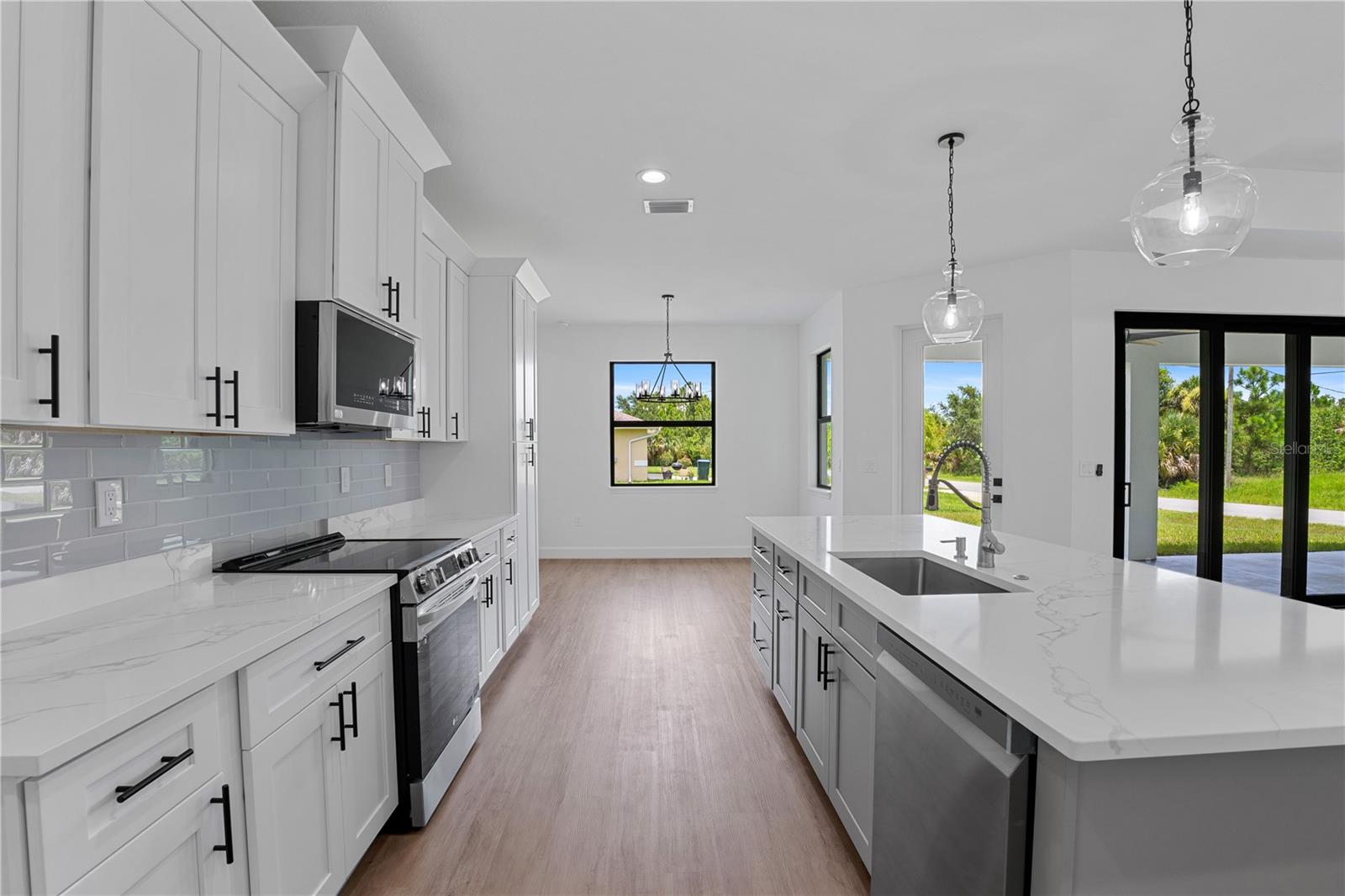 Pronto para mover-se e novo, aninhado em um lote de canto tranquilo e sereno na cidade de North Port. Três (3) quartos, dois (2) banheiros, uma entrada de vidro da porta francesa, tanto na frente quanto na cova, lavanderia em tamanho real e muito mais esperando que você chame de sua própria fatia de sol da Flórida. Todas as bancadas de quartzo em áreas úmidas, armários de estilo de agitador de close suave, calçada de pavimentação, janelas e portas de impacto por furacões, salões expandidos, tetos de bandeja, pacote de eletrodomésticos de ponta, pacote de aparelhos de armário duplo em salas mestres, são apenas alguns dos recursos luxuosos e a lista continua. Algumas considerações adicionais nesta casa incluem um termostato de ninho, juntamente com uma unidade de A/C recuada para adicionar ainda mais espaço na garagem expansiva, uma garagem estendida para um espaço de estacionamento adicional, e esta casa está localizada onde nenhum prêmio de inundação é necessário economizar para você! Venha agendar uma visualização privada e fazer sua casa e vida dos seus sonhos na Flórida, torne -se sua realidade.