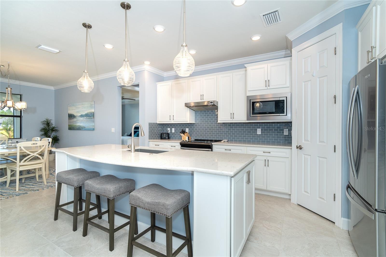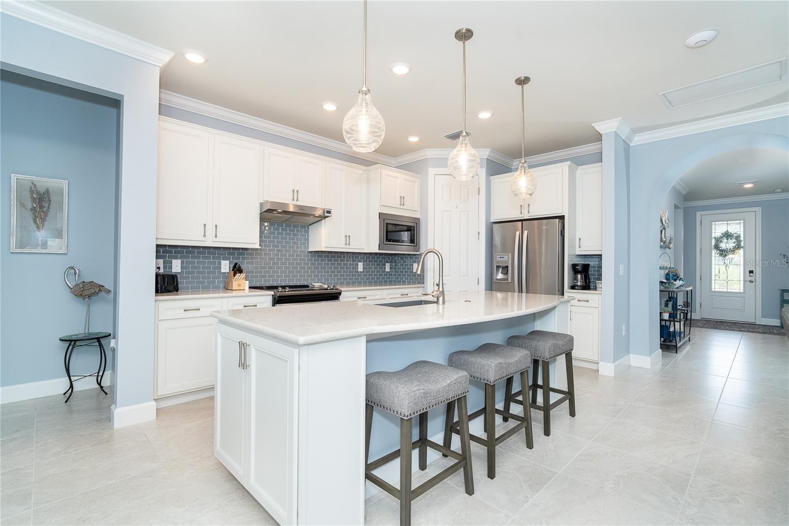 *** Novo preço melhorado *** Bem-vindo a esta impressionante casa de luxo fornecida e proibida na cobiçada comunidade de 55 mais de 55 Del Webb de Cypress Falls, oferecendo o melhor na vida sem complicações. Com mais de US $ 70.000 em atualizações, incluindo persianas de furacões, oferecendo facilidade e conforto em qualquer tempestade. Esta imaculada casa de 2 quartos e dois banheiros possui uma sala flexível versátil e uma garagem estendida e de grandes dimensões com espaço para o seu carrinho de golfe. Aprecie as vistas serenas do lago do seu oásis de quintal lindamente paisagístico. No interior, o design aberto e arejado recebe você com tetos de 9 ', portas de 8' e janelas grandes, criando uma atmosfera brilhante e convidativa. A cozinha do chef é um showstopper, equipado com utensílios de aço inoxidável, armários brancos atualizados, um elegante backsplash de telha e bancadas de quartzo branco. Com muito espaço no gabinete, uma despensa e uma iluminação pendente sobre a ampla ilha, esta cozinha é perfeita para a vida e o entretenimento diários. A suíte do proprietário, com vistas deslumbrantes da água, fornece um retiro semelhante ao spa com pias duplas, uma vanguarda de granito, um luxuoso chuveiro, um armário de linho e um espaçoso closet. A planta de piso conceito aberto é ideal para entretenimento, e o layout de quartos divididos garante a privacidade para você e seus convidados. O segundo quarto e banheira de hóspedes, com chuveiro, oferecem espaço e conforto adicionais. A conveniência é fundamental com uma grande lavanderia com lavadora e secadora de arruela e secadora, bancadas extras e armários para armazenamento. Saia através das portas de vidro deslizantes triplas em sua varanda coberta e estendida, onde você pode relaxar e desfrutar do belo clima da Flórida. O LANAI também está equipado com persianas de furacões potentes. Esta casa foi projetada para uma vida fácil com persianas de furacões, paisagismo exuberante, palmeiras e sistema de controle de pragas embutido, proporcionando tranquilidade e um estilo de vida de baixa manutenção. Os cuidados e a irrigação do gramado estão incluídos, permitindo que você desfrute de mais tempo livre sem a preocupação de cortar a grama ou a bordas. O Cypress Falls é uma comunidade sem manutenção, com vida no estilo resort e uma sensação de cidade pequena. Experimente um estilo de vida ativo e vibrante, com uma abundância de comodidades, incluindo piscinas, um spa, quadras de pickleball, bocha, bilhar e muito mais. Descubra o estilo de vida da aposentadoria dos seus sonhos em Cypress Falls - onde o luxo, o conforto e o relaxamento aguardam.