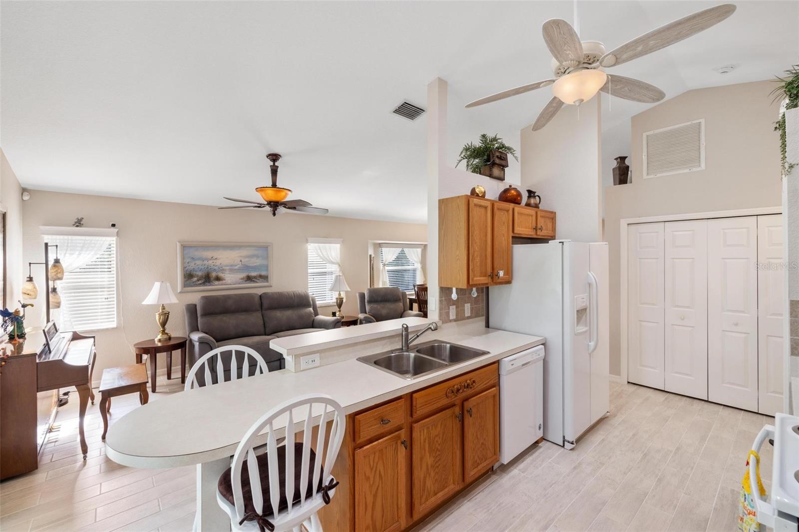 Descubra seu retiro perfeito na Flórida nesta vila imaculada e pronta, aninhada no coração de propriedades desejáveis de Woodhaven. Esta casa lindamente mobiliada de 2 quartos e 2 banheiros possui um espaço versátil de covil/escritório que se converte facilmente para um possível terceiro quarto para acomodar os hóspedes ou uma família em crescimento. <p> Aproveite a privacidade e a luz natural abundante oferecida pelo layout exclusivo, com a vila anexada apenas por uma parede de garagem compartilhada. <p> A cozinha apresenta bancadas brancas elegantes, armários de madeira e uma barra de café da manhã conveniente - perfeita para refeições casuais ou entretenimento. Os tetos altos adornados com prateleiras de plantas elegantes criam um ambiente arejado e espaçoso em todas as áreas de estar de conceito aberto. <p> Novos pisos de ladrilhos, através da área de estar principal e carpetes de pelúcia nos quartos, oferecem estilo e conforto sob os pés. A sala de jantar formal fornece o cenário ideal para reuniões íntimas ou ocasiões especiais. Retire-se para a suíte master de tamanho generoso, completo com um closet, enquanto seus convidados desfrutam de seu próprio santuário particular no bem nomeado segundo quarto e closet. <p> Saia para o seu lanai de vidro tranquilo e plexi, o local perfeito para relaxar e saborear as vistas exuberantes do quintal arborizadas. Esta vila impecável foi meticulosamente atualizada com um novo telhado, tinta interior e exterior fresca, persianas, banheiros altos, nova vaidade no banho de hóspedes e sistemas de ar condicionado e aquecedor de água mais recentes para sua paz de espírito. <p> As a resident of Woodhaven Estates, you'll have access to the COMMUNITY"S HEATED POOL, clubhouse, grilling area, and library. Conveniently located near amenities like Sarasota Memorial Hospital, Town Center Mall, and the vibrant shops and restaurants of Coco Plum and Wellen Park. This villa is on the border of Port Charlotte and North Port, and only minutes to I-75 or US 41, making it a very convenient location when traveling to Sarasota Ou Fort Myers.