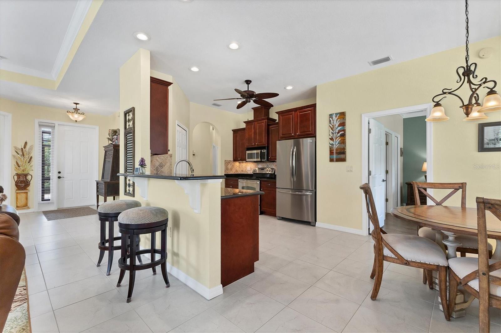 Linda vila de 3 quartos e 2 banheiros nas desejáveis Woodhaven Estates! Descubra conforto, espaço e estilo nesta vila maior e mais nova, MOBILIADA CHAVE NA MÃO! Vila rara SEM HOA, SEM TAXA DE CDD. Construída em 2007 e com janelas e portas de impacto, esta casa lindamente conservada oferece 1.616 pés quadrados de área de estar com ar-condicionado, garagem para dois carros e uma convidativa varanda frontal com tela. Entre para encontrar grandes porcelanatos na diagonal nas áreas de estar e luxuosos pisos laminados de tábuas nos quartos, tetos em caixotões e bandejas (alguns com sancas) e um ótimo design de sala aberta e iluminada com tetos altos. A suíte principal possui teto falso, portas francesas que se abrem para a varanda pavimentada GRANDE e um pátio traseiro extra - perfeito para relaxar ou se divertir. O banheiro principal da suíte tem pias duplas e balcões de granito, um enorme box amplo, vaso sanitário separado e armário de roupa de cama. Ala privada e espaçosa do 2º quarto, juntamente com o banheiro de hóspedes, que inclui balcões de granito e uma combinação de banheira/chuveiro. O terceiro quarto/ESCRITÓRIO ou DEN possui elegantes portas francesas, um armário e uma saliência para mais espaço e luz. A espaçosa cozinha possui armários de madeira (incluindo armários superiores de 42 "com sancas), bancadas de granito, pia dupla de aço inoxidável, eletrodomésticos inoxidáveis e uma barra de café da manhã que flui perfeitamente para a grande sala de estar e área de JANTAR; perfeita para refeições casuais e entretenimento. A área de jantar casual inclui uma saliência conveniente que preenche o espaço com luz natural. Desfrute de um paisagismo maduro que proporciona privacidade e espaço verde adjacente. Detalhes mais cuidadosos por toda parte - calhas ao redor, água quente instantânea e uma sala de serviço interna com extra armazenamento e lavadora e secadora incluídas. A garagem de grandes dimensões para dois carros oferece uma área de oficina e um novo sistema de armazenamento de garagem com piso de epóxi durável. As atualizações recentes incluem um NOVO TELHADO (2023) AR CONDICIONADO (2017) AQUECEDOR DE ÁGUA COM ÁGUA QUENTE INSTANTÂNEA (2021). lista de exclusão). Maravilhosamente localizado em um bairro tranquilo com água e esgoto públicos e ótimo acesso à I75 e US 41, perto da Toledo Blade Blvd, que oferece todas as comodidades que você adora; oportunidade de possuir uma das vilas mais espaçosas e bem equipadas de Woodhaven Estates - pronta para você se mudar e começar a viver o estilo de vida da Flórida!