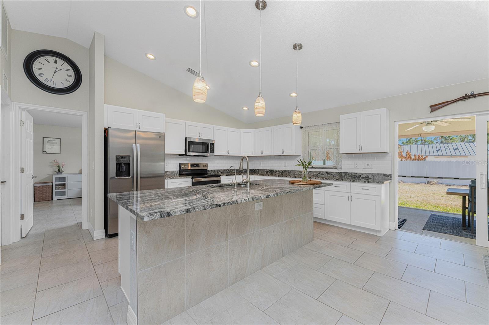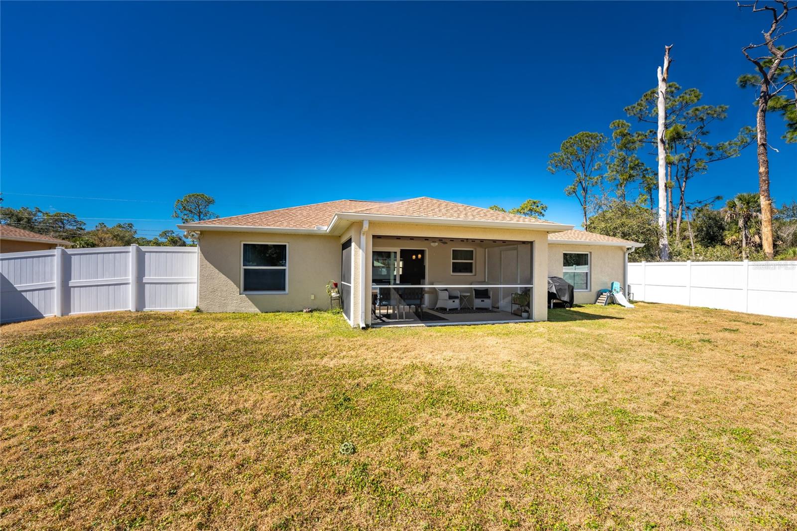 Casa nova em 2023 construída no Porto Norte, perto de lojas, restaurantes e conveniência I-75! Esta casa de três quartos e dois banheiros oferece uma planta aberta dividida e fica em um terreno grande com um quintal cercado com total privacidade, proporcionando muito espaço e privacidade com espaço para adicionar uma piscina. No interior, o piso de cerâmica é executado de forma consistente em toda a casa, criando uma aparência coesa e ao mesmo tempo oferecendo fácil manutenção. A grande sala apresenta tetos abobadados e é repleta de luz natural, enquanto a área de jantar formal e a cozinha se abrem para a área de estar principal, criando um layout ideal para a vida cotidiana e o entretenimento. Portas de vidro deslizantes levam à varanda com tela, permitindo fáceis reuniões internas e externas. O chef da família apreciará a cozinha espaçosa com abundante estilo shaker branco, armários completos com recursos de fechamento suave, generoso espaço de bancada em granito, backsplash de azulejos de vidro, eletrodomésticos de aço inoxidável e uma ilha central perfeita para preparar refeições e manter tudo organizado. O espaçoso quarto principal com banheiro inclui closet, enquanto o banheiro principal oferece pias duplas, bancadas de granito e box amplo totalmente revestido em azulejos. Ambos os quartos de hóspedes são bem dimensionados com armários embutidos, e o banheiro de hóspedes foi cuidadosamente projetado com uma combinação de banheira e chuveiro e uma penteadeira com tampo de granito. Uma lavanderia interna acrescenta comodidade com armários embutidos e uma pia para tarefas e organização. Do lado de fora, as noites na varanda são especialmente agradáveis, com telas panorâmicas que podem ser elevadas para permitir a passagem de uma boa brisa enquanto você aprecia o ambiente tranquilo do bairro. O amplo quintal oferece infinitas possibilidades de expansão futura, piscina, quadras esportivas, galpão ou o que mais se adequar ao seu estilo de vida. Construída com conforto e tranquilidade, a casa apresenta impacto de furacão, janelas isoladas de baixa emissividade e telhas duráveis de 30 anos. Localizada na 5262 Gaghagen Street, esta casa coloca você perto de tudo o que North Port tem a oferecer. Com fácil acesso à Sumter Boulevard e à I-75, viajar para Sarasota, Tampa, Fort Myers e outros lugares é simples e conveniente. Você também vai gostar de estar perto de lojas, restaurantes, do Wellen Park e a uma curta distância de carro das belas praias do Golfo.