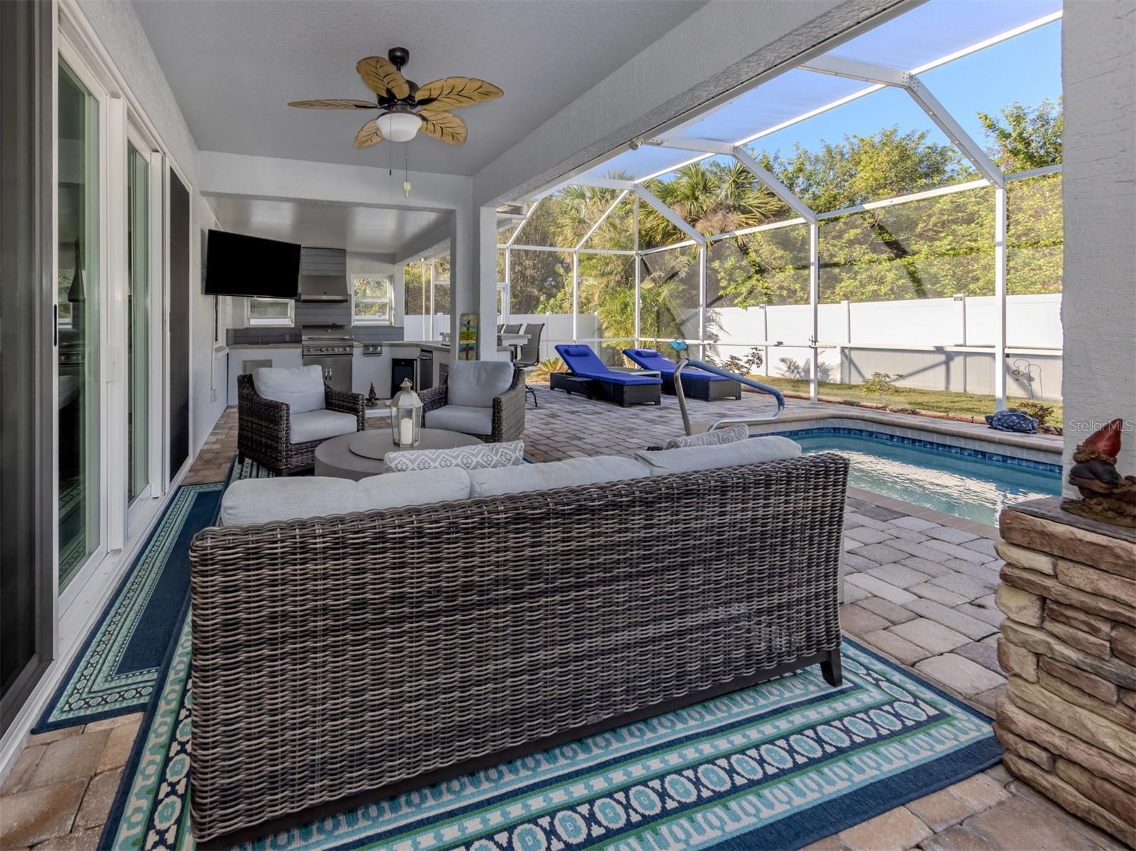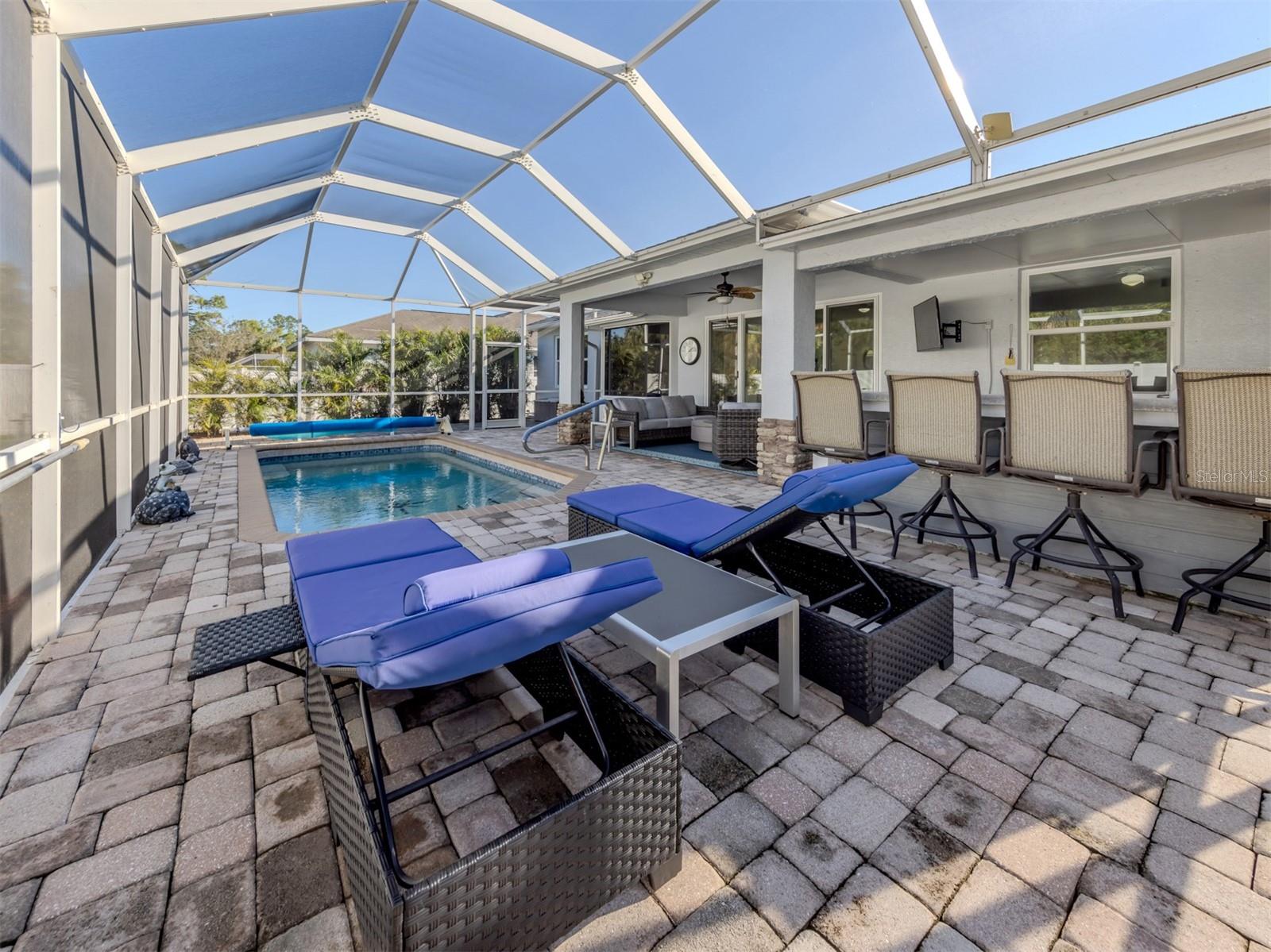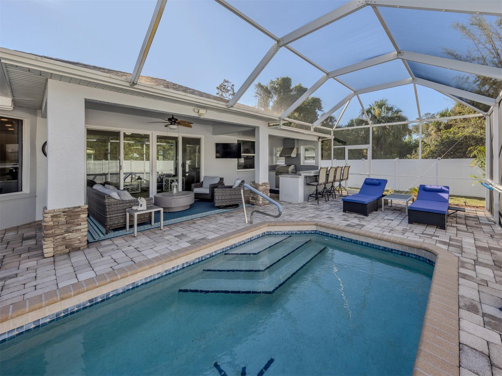 Linda piscina em casa. Aqui está sua oportunidade de possuir uma bela casa centralmente no Porto Norte. Esta casa apresenta uma planta baixa com uma ampla sala com vista para a piscina e a área de Lanai. O quarto principal é espaçoso e tem um enorme armário com prateleiras personalizadas, enquanto o banheiro principal apresenta pias duplas, armário de linho e chuveiro de azulejos. A cozinha foi atualizada com bom gosto com eletrodomésticos inoxidáveis, incluindo forno duplo LG, abundante com gavetas e armários de close macio, muito espaço de contador com belo quartzo novo e uma despensa para armazenamento extra. Ao passar pela cozinha, você notará a janela do aquário com vista para a piscina com o armazenamento extra do banco. Saia dos controles deslizantes e entre em sua área de entretenimento ao ar livre, com uma cozinha ao ar livre com utensílios de aço inoxidável de touro, como churrasqueira, capa de ventilação, fogão a dois queimadores, geladeira de geladeira e mais refrigerada para manter os frios frios. O Lanai mede aproximadamente 35 a 17 pés com pavimentadores de pedra e piscina de sal no solo com bomba de piscina de velocidade variável. Luzes de mudança de cor LED embutidas e um ventilador de teto. O quintal apresenta um pátio lateral para relaxar ao sol ou um espaço extra -divertido. As janelas resistentes ao impacto do furacão incluem controles deslizantes, o teto substituído em 2023, o ar condicionado de três toneladas em 2021 e a casa externa pintada em 2021. Esta é uma casa notável para ver!