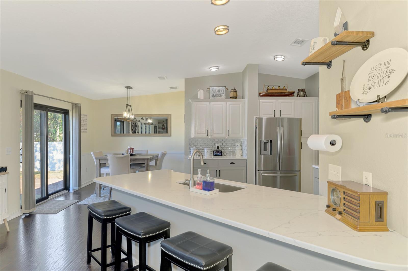 De volta ao mercado devido ao financiamento dos compradores, telhado novo, janelas de impacto e sarjetas, "Publc Water". O vinil completo cercado em um lote de canto de tamanho grande, ótimo para hospedar os churrascos da família e fornecer um local seguro para as crianças, e bebês de peles percorrerem. Além de um baralho e muito espaço para a sua futura piscina. Ao entrar nessa encantadora casa de 3 quartos e 2 quartos que foi pintada recém-pintada por dentro e por fora, você imediatamente sentirá o calor dos cuidados dos proprietários. A passarela da frente é adornada com várias plantas de plumeria, que florescem na primavera, acrescentando um toque de cor e vibração ao se aproximar da casa. No interior, a planta aberta cria uma atmosfera acolhedora, com uma sala de estar aconchegante, com uma parede de acento de madeira elegante, piso de vinil de luxo e iluminação embutida que aprimora a sensação moderna. A cozinha recém -remodelada é perfeita para entreter, oferecendo uma grande bancada de bar de café da manhã, backsplash de ladrilhos de metrô e novos aparelhos de aço inoxidável. Um recanto de café da manhã separado com lambris oferece espaço adicional para hóspedes e refeições casuais, enquanto dois armários de despensa oferecem muito armazenamento. A suíte do proprietário é espaçosa, com um armário de parede a parede e um banheiro privativo bem equipado com pias duplas, um chuveiro separado e uma banheira de jardim-ideal para relaxar após um longo dia. Planta de piso do quarto derramado com dois quartos adicionais, cada um com ventiladores de teto e armários profundos, compartilhe um banheiro bem conservado com banheira e dois armários de linho. Localizado em North Port, Flórida, uma das áreas que mais cresce nos Estados Unidos, esta casa oferece fácil acesso à recém-desenvolvida área de Wellen Park Downtown. Desfrute de atrações próximas, como os jogos de treinamento de primavera de Atlanta Braves, filmes no gramado, caminhões de alimentos e esportes aquáticos no grande lago. As fontes minerais quentes, conhecidas por suas propriedades curativas, estão a uma curta distância de carro, junto com a praça de compras de Coco Plum e uma variedade de restaurantes locais. A área também possui belas praias, incluindo Manasota Key, Veneza Beach e Englewood Beach. Além disso, com acesso conveniente aos aeroportos de Tampa e Fort Myers, a viagem é uma brisa. Faça seu Apt hoje !!!