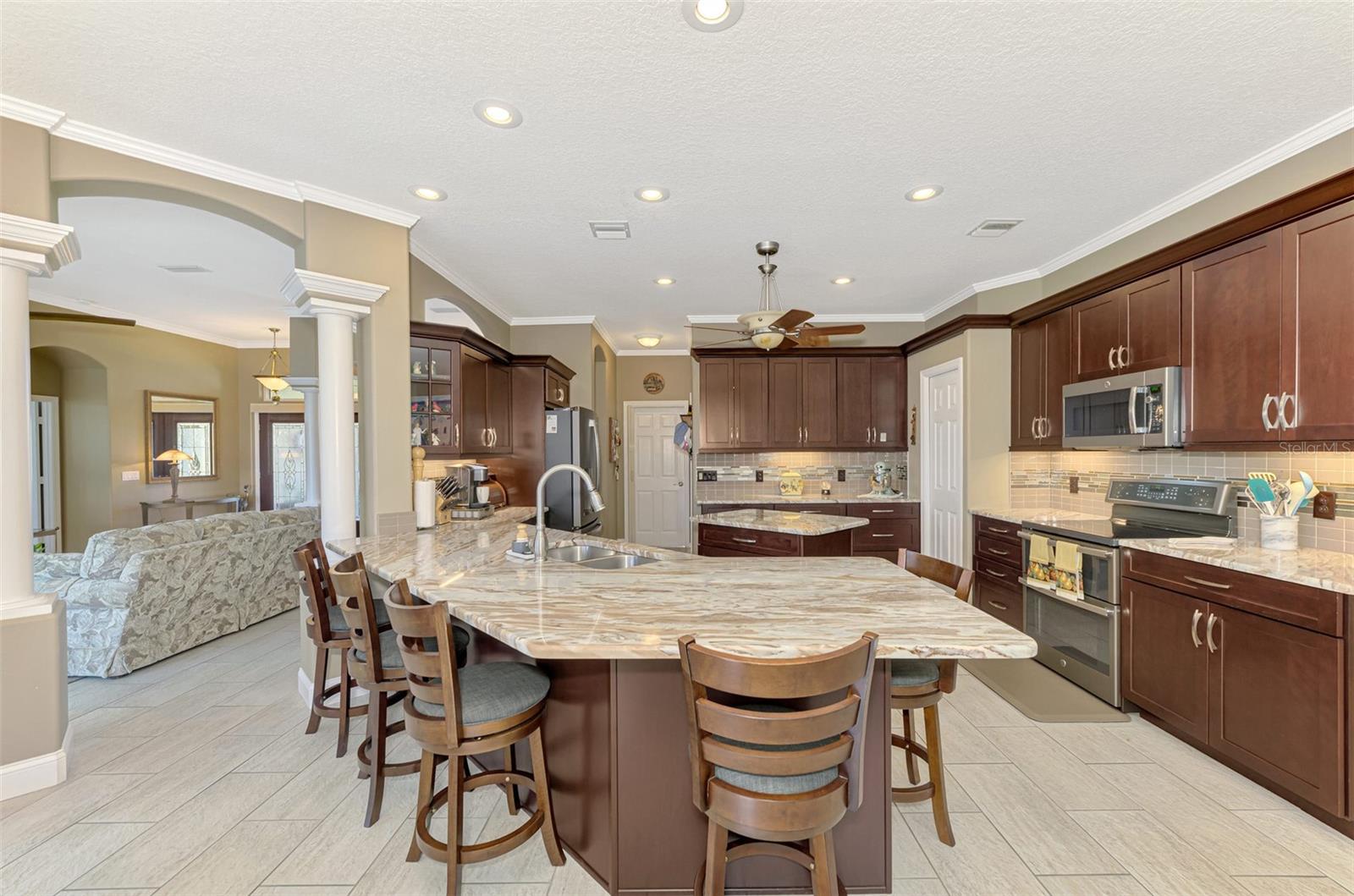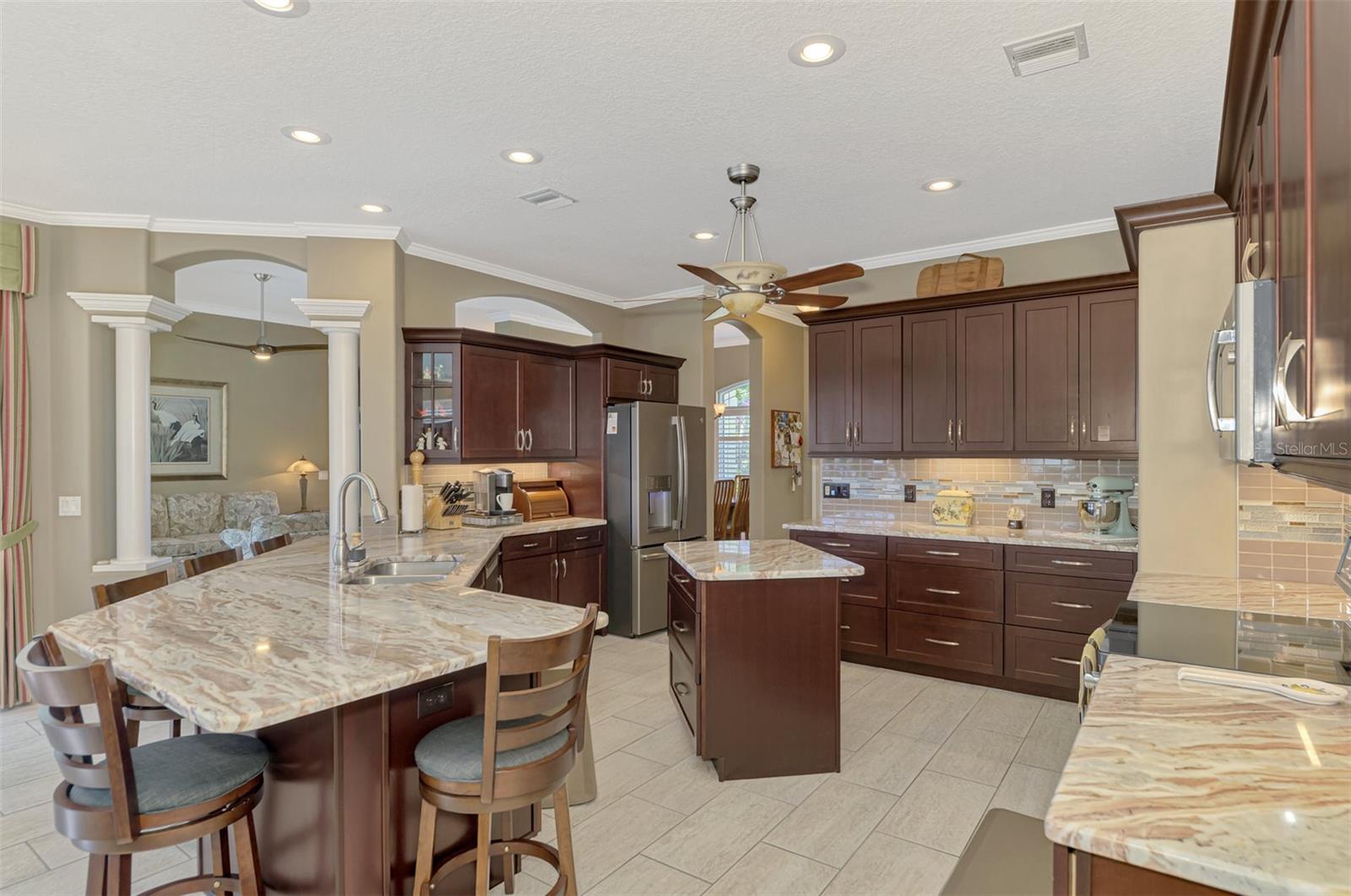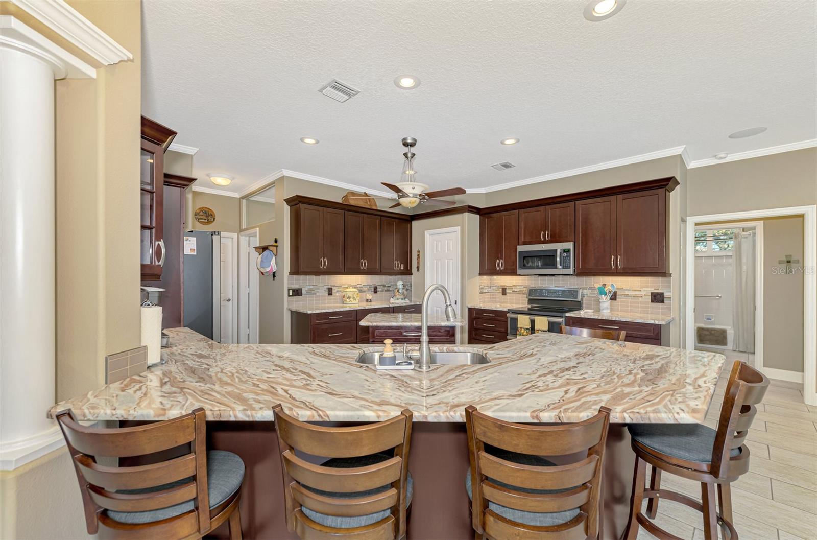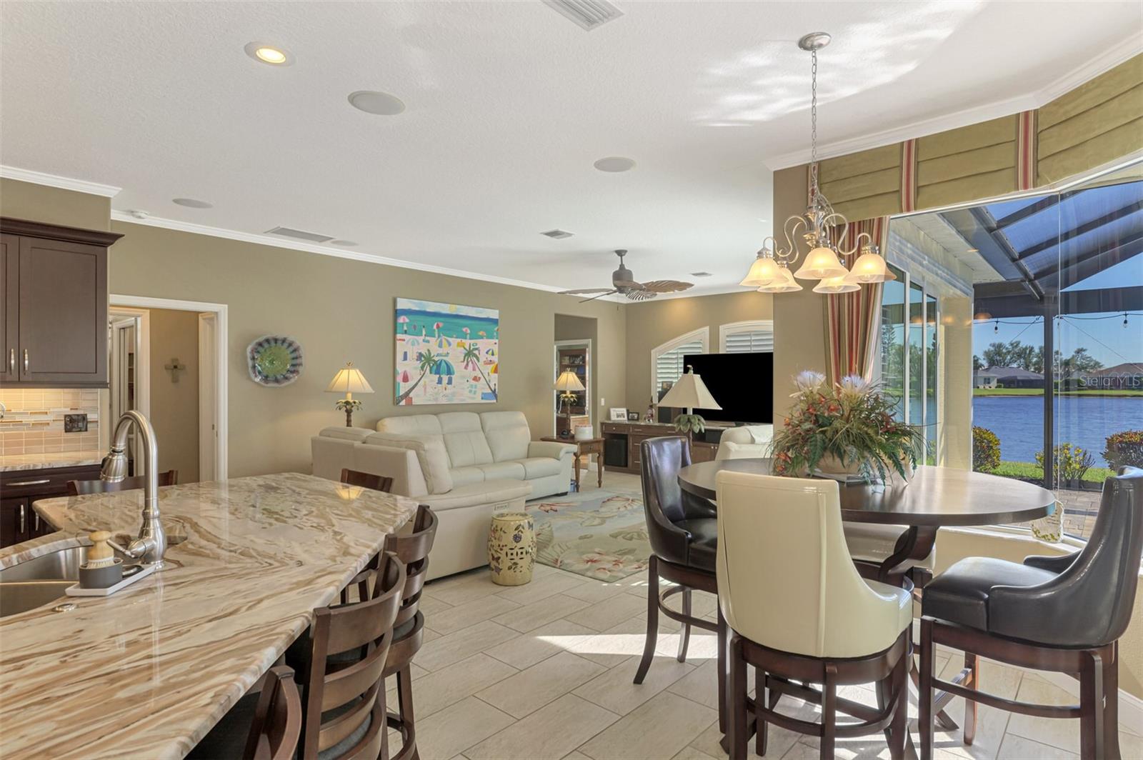 OFERTA ESPETACULAR À BEIRA DO LAGO em Sabal Trace! Não pisque ou você perderá esta casa de 2.491 pés quadrados com 3 QUARTOS + DEN/PISCINA DE 2,5 BANHOS com garagem grande para 3 CARROS e vista deslumbrante para o mar. *COZINHA, BANHOS E PISCINA ATUALIZADOS* Janelas de impacto PGT WINGUARD e telas Rool down Hurricane* A LISTA DE ATUALIZAÇÕES E ATUALIZAÇÕES É LONGA…. Esta casa impecavelmente mantida por UM PROPRIETÁRIO está situada em um tranquilo beco sem saída no pequeno condomínio fechado de SABAL TRACE (SEM CDD Low HOA). Esta casa Peterson personalizada simplesmente verifica todas as caixas. Seu apelo ao meio-fio é incomparável com um amplo HOMESITE de 0,38 ACRE, paisagismo tropical exuberante, um belo pátio frontal pavimentado e entrada de pórtico com impressionantes portas de vidro com chumbo para recebê-lo em casa. Entre e você imediatamente se sentirá como se tivesse chegado ao seu próprio oásis tropical com espetaculares VISTAS PANORÂMICAS DA ÁGUA que o deixarão sem fôlego! A popular planta Banyan ll é espaçosa e arejada e adequada para uma vida fácil e divertida. Dentro de todas as áreas de estar fluem perfeitamente. Esta casa possui pouco menos de 2.500 pés quadrados de área útil e possui uma sala de jantar formal, DEN/OFFICE versátil, uma sala familiar de conceito aberto, layout de quarto dividido com uma ala de hóspedes de 2 quartos com banheiro completo compartilhado e um espaçoso retiro primário. com closets duplos, banheiro privativo remodelado tipo SPA com pias duplas, armários personalizados e tampos de granito e um amplo box com detalhes de azulejos requintados e caixa de vidro sem moldura. A suíte master tem fácil acesso à varanda e à área da piscina através da porta de vidro deslizante ou do BANHEIRO DE PISCINA BÔNUS adjacente. A cozinha é simplesmente UAU!!! É verdadeiramente o coração desta casa e depois de uma renovação completa está agora bem equipada com ricos armários de madeira e uma despensa fabulosa. Bancadas de granito exóticas adornam a península principal, bem como a versátil ilha central, e os azulejos de vidro e os eletrodomésticos SS brilham. Chefs exigentes certamente apreciarão todo o fabuloso espaço de trabalho. A lavanderia possui muito espaço de armazenamento com armários superiores, armário de vassouras e pia útil. Há uma área de jantar ensolarada com vista para a piscina que oferece um lugar perfeito para refeições casuais... Os controles deslizantes em cascata tripla trazem o exterior para dentro e se abrem para uma ampla varanda privada com piscina aquecida em estilo resort e deck pavimentado que se estende por toda a largura da casa, maximizando cada centímetro disponível de espaço ao ar livre para uma vida descontraída! Os proprietários também têm um pátio externo especial, onde você pode desfrutar do seu café da manhã enquanto o sol nasce e onde você pode apreciar todos os pássaros nativos enquanto eles enfeitam o céu e a costa no seu próprio quintal! A garagem extragrande para 3 carros tem espaço para todos os seus brinquedos, além de amplo espaço para oficina e armazenamento! Esta casa está pronta para morar, com detalhes ricos e atualizações do chão ao teto, incluindo paleta de cores neutras suaves, ventiladores e iluminação atualizados, azulejos de cerâmica de fácil manutenção e piso de bambu Cali, persianas de teto com bandeja de volume, tratamentos de janela personalizados, venezianas clássicas e coroa Moldagem. PROTEÇÃO COMPLETA CONTRA FURACÕES, incluindo veneziana de enrolar e janelas PGT Impact. Sabal Trace está convenientemente localizado a apenas uma curta viagem de carro do Heron Creek Golf & CC (semi pvt com assinaturas disponíveis) tem fácil acesso à I-75, CocoPlum Shoppes, o novo centro de saúde SMH, praias do golfo, centro de Veneza, Wellen Park, COSTCO,estádio Braves e aeroportos locais.