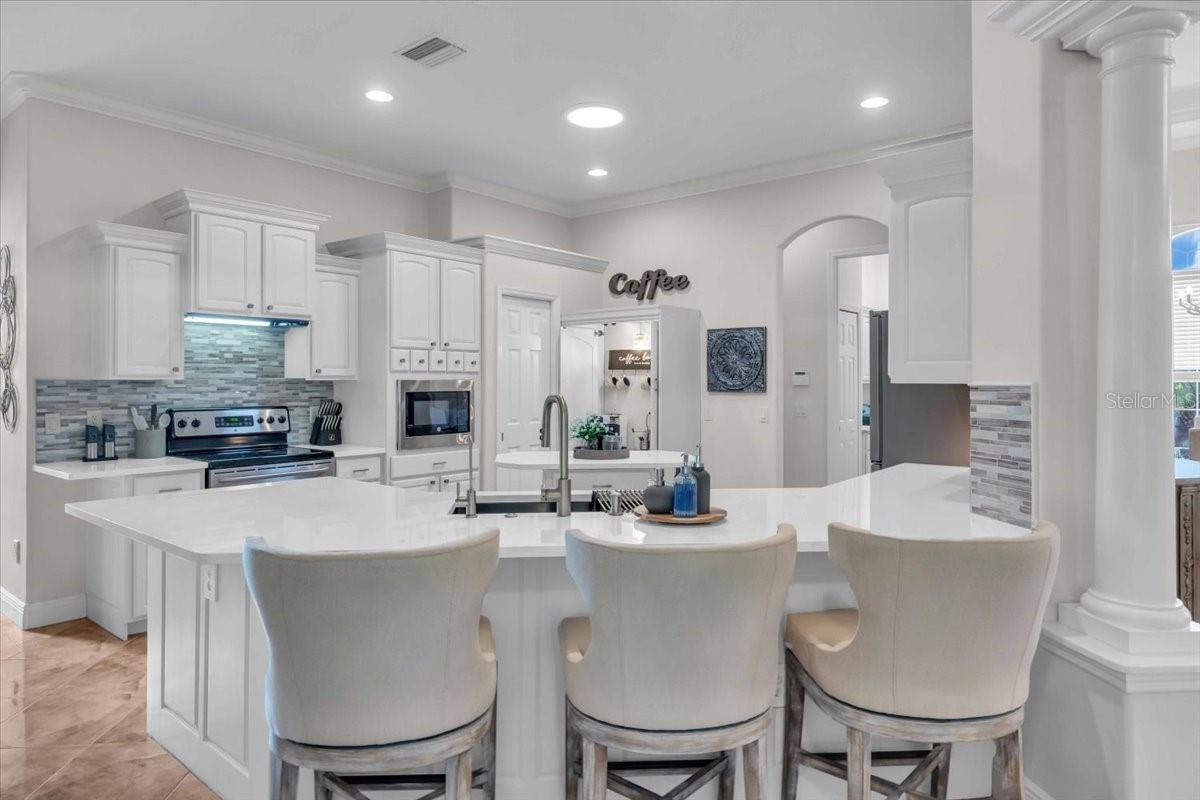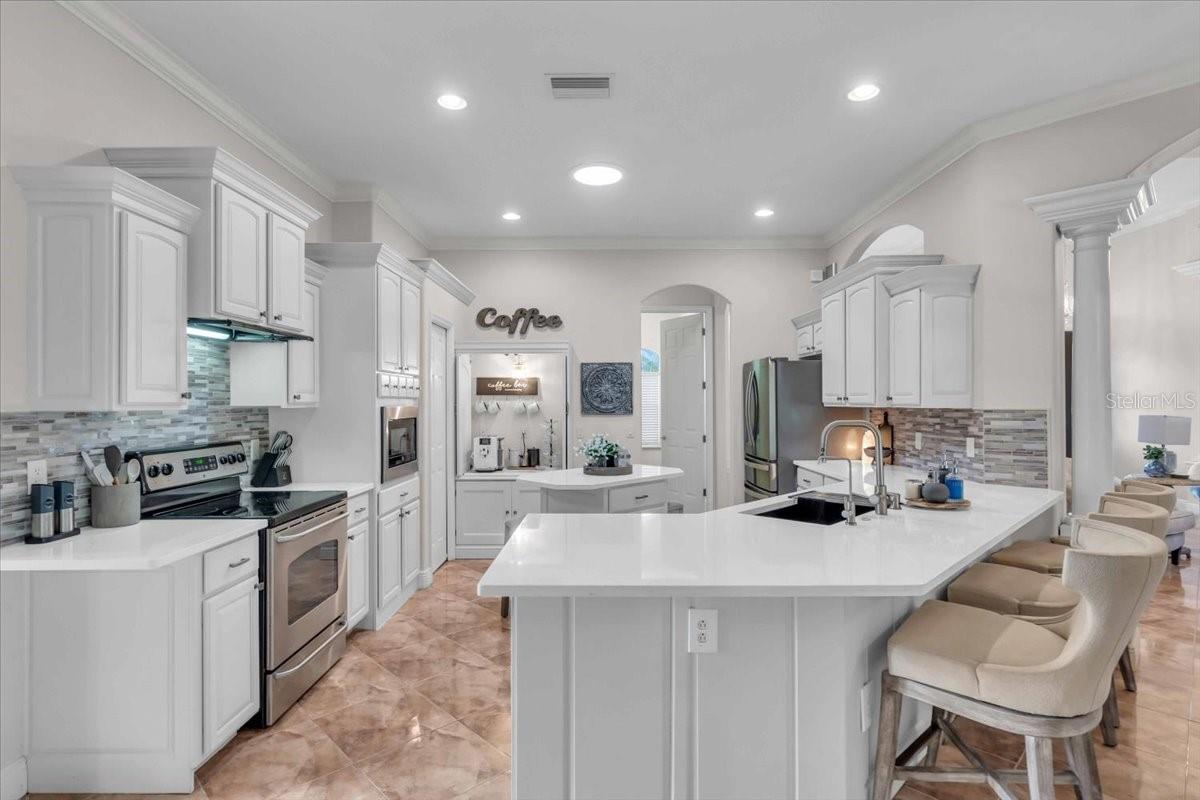 Redução de preços enorme em um verdadeiro showstopper que acabou de chegar ao mercado! Esta casa personalizada combina sofisticação com design moderno a cada passo. Do piso de ladrilhos italianos personalizados por toda parte - sim, mesmo na garagem - até a cozinha gourmet meticulosamente remodelada, nenhum detalhe foi negligenciado. A cozinha possui um deslumbrante backsplash moderno de ladrilhos e bancadas luxuosas de quartzo, tornando -o o espaço perfeito para cozinhar e divertir. Dual, alguns tetos de bandeja tripla com fluxo de iluminação embutido sem problemas pela casa, enquanto a moldagem da coroa e a iluminação de grife elevam o ambiente junto com as majestosas colunas posicionadas em toda a casa, criando uma atmosfera única. A planta baixa, atenciosa, coloca a principal suíte em sua própria ala privada na frente da casa, oferecendo paz e privacidade, com um dos banheiros mais agradáveis que você já viu com pias e vaidades duplas e um chuveiro em estilo romano. Está convenientemente localizado perto das áreas de jantar e de estar formais. No lado oposto, os quartos dos hóspedes possuem dois quartos de tamanho generoso, cada um com acesso a um banheiro de grife totalmente remodelado. Para aqueles que precisam de um espaço de trabalho dedicado, há um Den/Office separado com um meio banho localizado na parte de trás da casa, oferecendo o equilíbrio perfeito de função e conforto. Vários pontos de acesso levam ao amplo Lanai coberto, tornando -o ideal para relaxar e divertir. Seja da sala de estar da frente, sala de estar ou meio banho conveniente, o Lanai acomodará facilmente uma futura configuração da piscina. Existe até um espaço para comer fora da cozinha, área perfeita para desfrutar do seu café enquanto você se senta ao lado do vidro de aquário colorido com vista para o lanai e o quintal. As atualizações adicionais incluem um novo HVAC (2023), o novo aquecedor de água quente (2020), um sistema de aspersão subterrâneo recém-instalado e um conjunto de aparelhos mais recentes, incluindo uma nova disposição. A garagem de grandes dimensões é um recurso de destaque, com tetos altos e uma área de oficina embutida-perfeita para entusiastas e entusiastas de bricolage. Situado convenientemente perto da cozinha e da lavanderia, é uma verdadeira garagem dos sonhos. A casa também é equipada com um centro de vácuo central! Esta casa é uma verdadeira obra -prima - elegância, função e estilo, tudo em um!