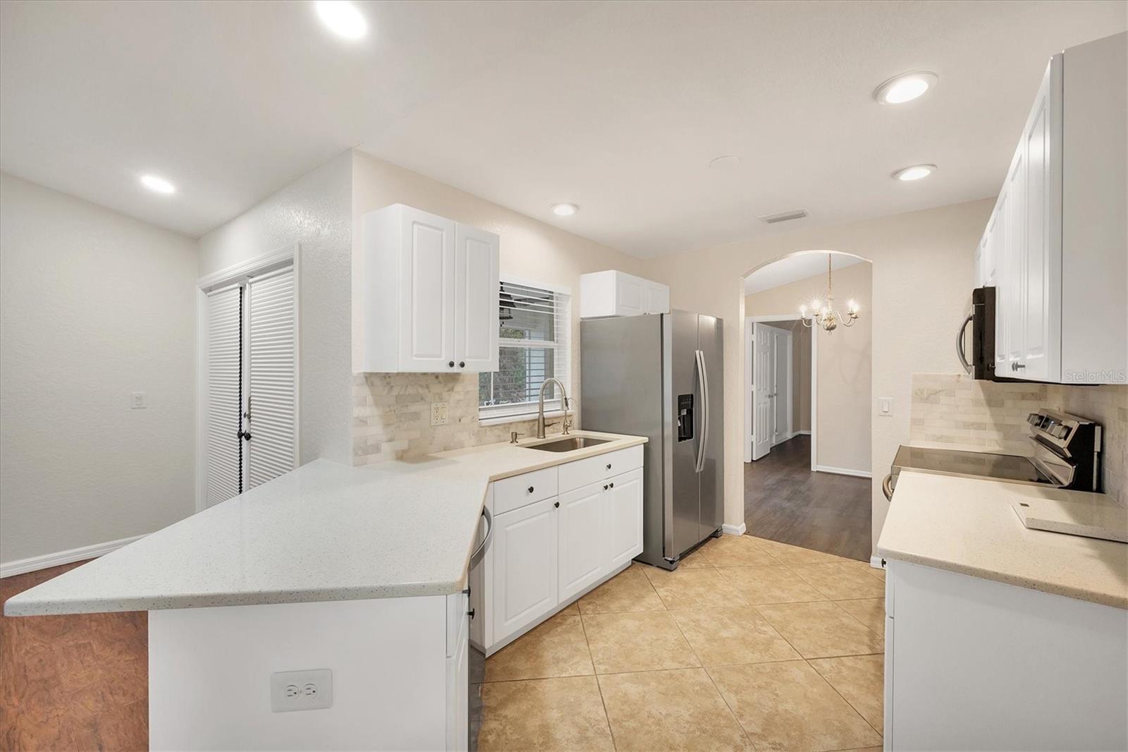 Completamente atualizado. Esta casa meticulosamente mantida, de 3 quartos e 2 banheiros, já está disponível em uma rua muito privada e tranquila, na próxima e aproxima a cidade de North Port. Cercado por lotes vagos, com muito espaço para construir uma piscina ou apenas colocar uma cerca alta, essa propriedade não consegue mais privacidade. The house comes boasting with features such as a remodeled kitchen with quartz countertops, new stainless steel appliances, modern subway tile backsplash, and a single basin sink with reverse osmosis system, a nice mix of hardwood, vinyl, and tile floors throughout, NO CARPET, new ceiling fans and fixtures throughout, new toilets and vanities with quartz countertops in both bathrooms, a newer mini split A/C system Instalado no quarto principal, telhado mais recente, sistema A/C mais recente com iluminação UV incorporada e sistema aéreo de abril, aquecedor de água sem tanques mais recente com recurso quente instantâneo, lavadora e secadora em folha, conectar gerador localizado na lanai traseira e a lista continua. Sem CDD, sem HOA, e não em uma zona de inundação. Esta pode ser a casa inicial perfeita, a segunda casa ou mesmo uma propriedade de investimento. As oportunidades são infinitas. Fácil de mostrar e não vai durar muito. Ligue e agende sua própria exibição particular hoje.