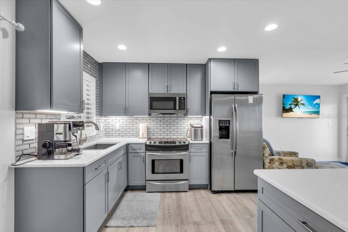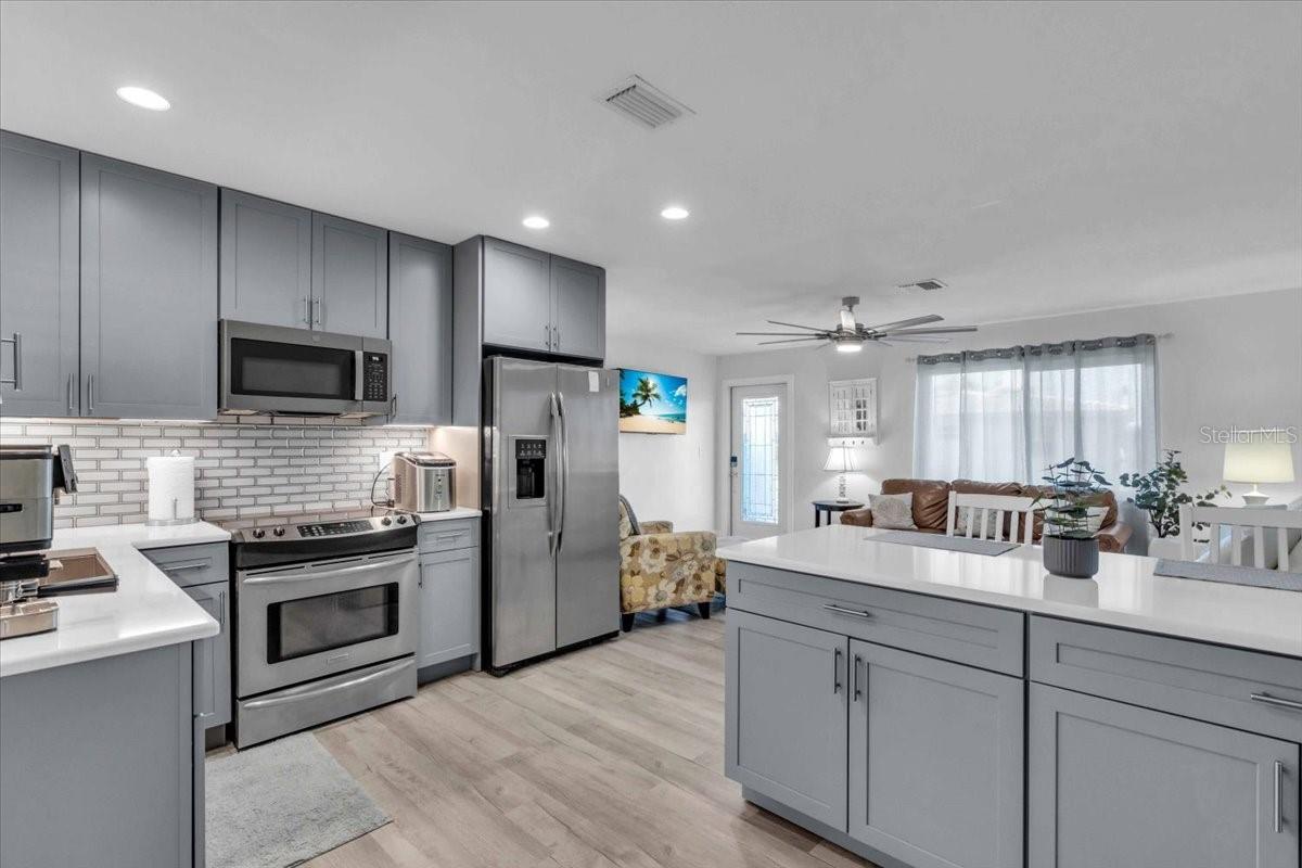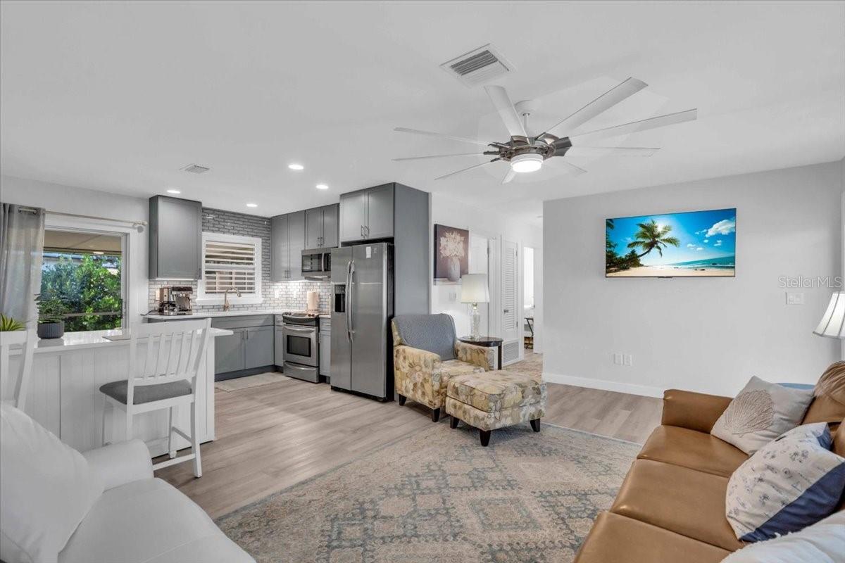 Uma ou mais fotos foram virtualmente encenadas. Pronta para morar e amplamente renovada, esta casa unifamiliar está localizada em uma pequena comunidade com mais de 55 anos que aceita animais de estimação, com baixas taxas de HOA que incluem cuidado de gramado, limpeza/pintura de telhado e manutenção de estradas privadas. A planta baixa de conceito aberto apresenta piso novo, paredes com detalhes em shiplap, iluminação atualizada e ventiladores de teto por toda parte. A cozinha totalmente renovada oferece eletrodomésticos de aço inoxidável, armários novos, bancadas de superfície sólida, backsplash de azulejos na altura do teto, ilha para refeições e um grande armário de despensa recém-adicionado para armazenamento excepcional. Ambos os banheiros foram atualizados. As melhorias incluem novas portas e acabamentos internos, porta frontal de vidro isolada com entrada por teclado, encanamento atualizado (todos os ralos e canos substituídos embaixo da casa), novo painel elétrico e um sistema HVAC 2022. Várias janelas resistentes a impactos foram instaladas, juntamente com novas janelas de varanda para maior luz e conforto. Um armário de armazenamento externo recém-adicionado oferece conveniência adicional. Lavadora e secadora empilháveis de grandes dimensões localizadas dentro de casa. Móveis novos, incluindo roupas de cama, são opcionais. Convenientemente localizado a aproximadamente 5 minutos de Warm Mineral Springs, a 20 minutos de Englewood Beach e a menos de 30 minutos das atrações de Veneza, incluindo Venice Beach e Sharky 's on the Pier.
