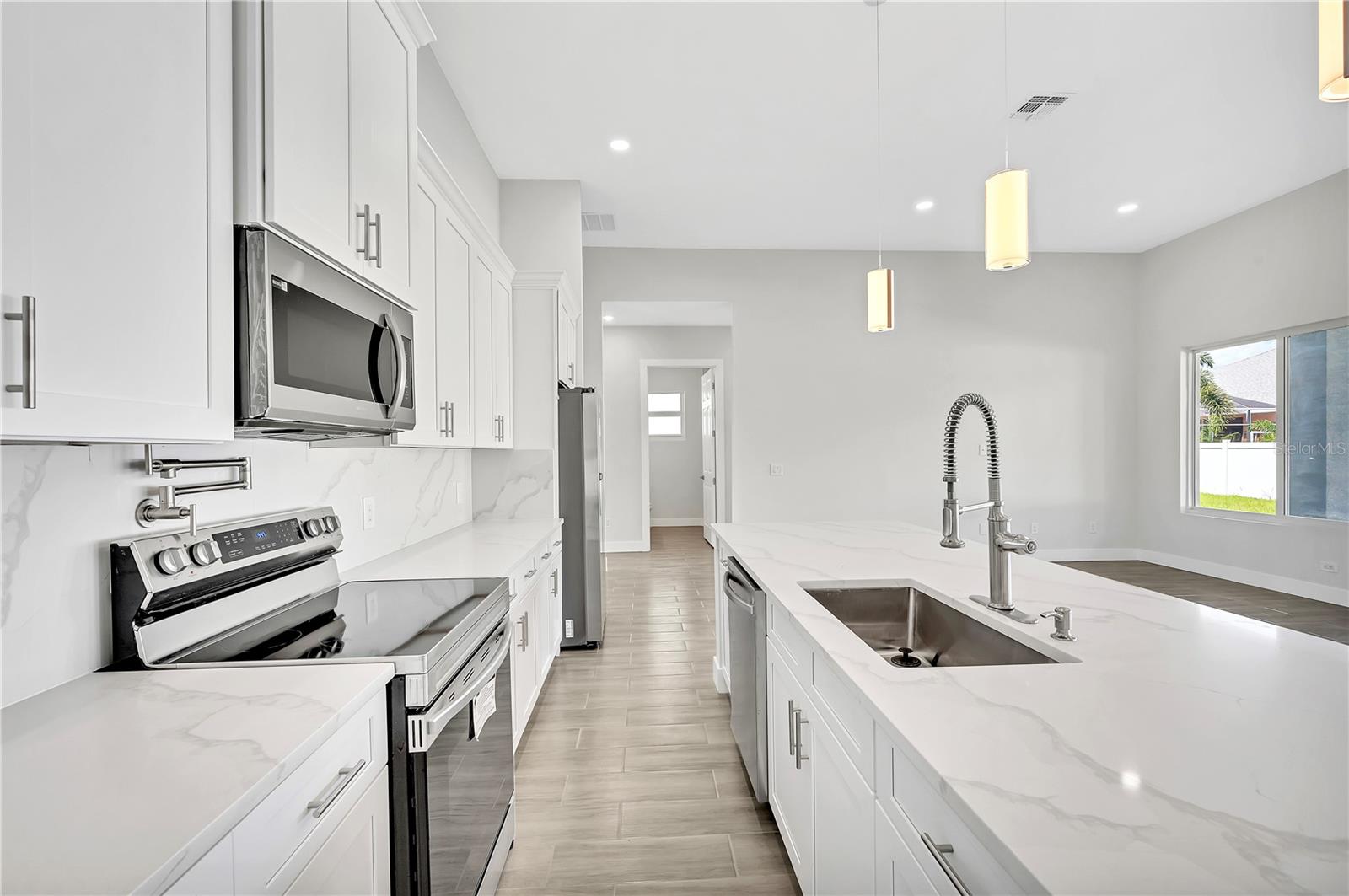 MOVIMENTE-SE PRONTO!! CONCLUÍDO EM 2024! CERTIFICADO DE OCUPAÇÃO (CO) já emitido! Bem-vindo a esta deslumbrante casa de luxo de nova construção na desejável cidade de North Port. A casa possui quatro quartos e três banheiros completos. Ao entrar na casa, você é saudado por tetos de 3,6 metros de altura e portas de 2,5 metros, permitindo que uma abundância de luz natural entre em toda a casa através das portas deslizantes de três painéis. Aproveite a bela e moderna cozinha com armários de 42 polegadas, bancadas de quartzo Calacatta, eletrodomésticos Samsung e uma grande ilha com vista para a grande sala. A cozinha também oferece uma grande despensa. O quarto quarto também pode ser utilizado como espaço flexível ou escritório, ou como alojamento ideal para sogros, pois possui banheiro privativo. O amplo quarto principal com teto de 3 metros de altura tem uma bela vista para o jardim e está equipado com um grande banheiro principal com bancada de quartzo, pias duplas e um lindo chuveiro que leva ao armário de mais de 90 pés quadrados. Aproveite a bela vida ao ar livre neste lote de um quarto de acre com um enorme pátio que você pode facilmente ampliar e adicionar uma piscina. Tudo isso localizado em uma das áreas mais promissoras do estado, oferecendo excelentes escolas com classificação A e B+, além de proximidade com praias, instalações esportivas de última geração, além de um novo hospital. Veja tudo o que esta casa e localização têm para oferecer. Uma ou mais fotos foram virtualmente encenadas.