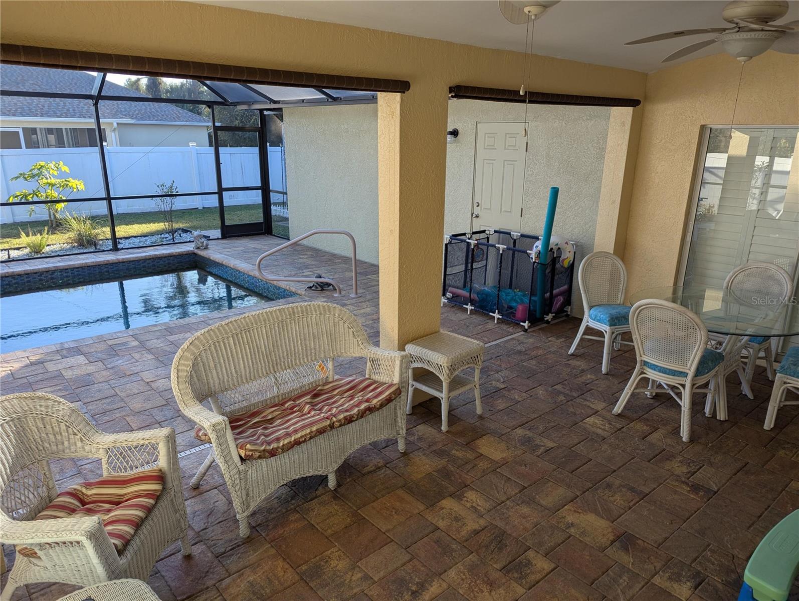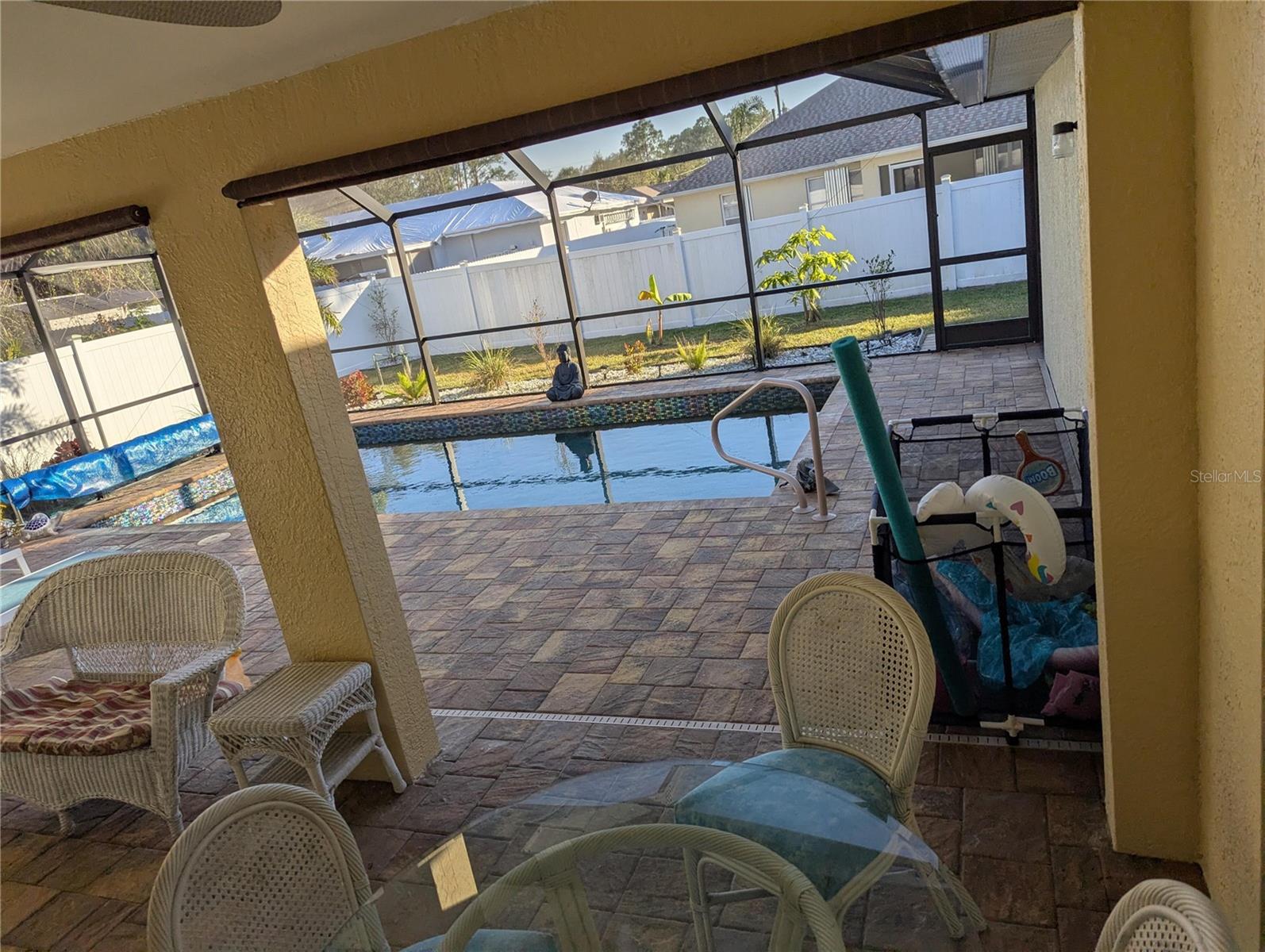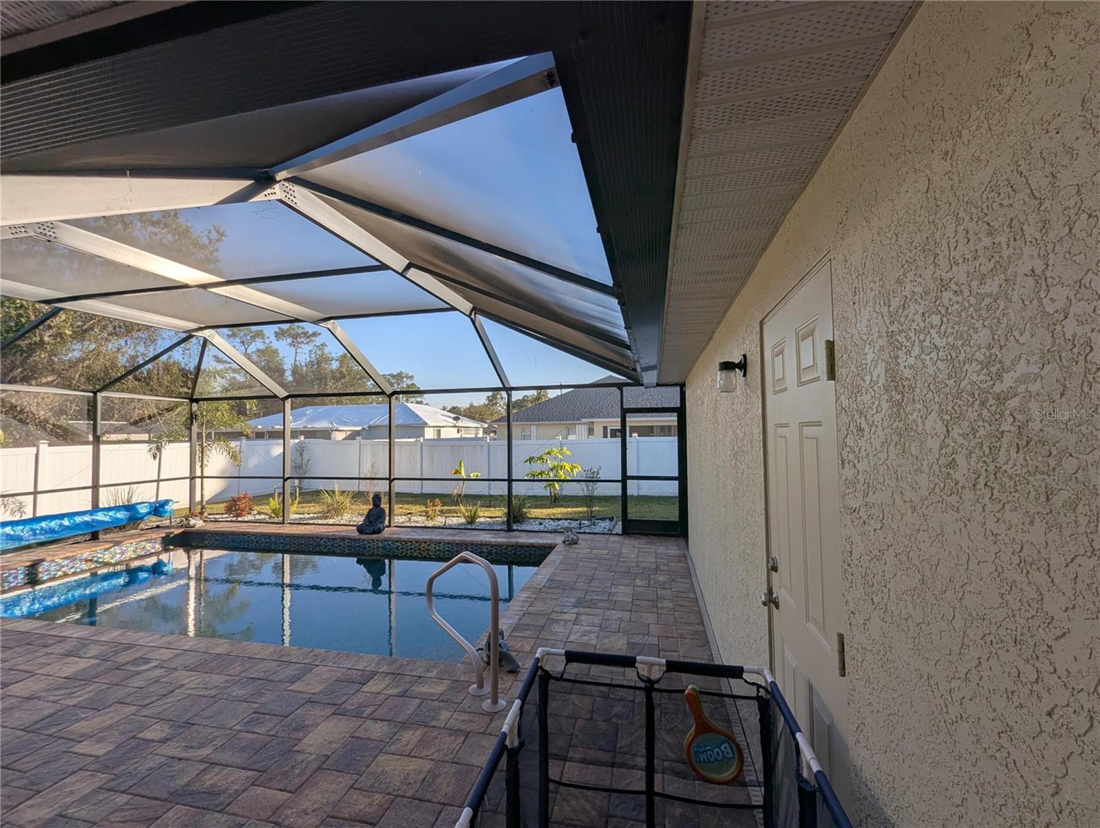 PISCINA EM CASA!!!!! Bem-vindo à casa de sua família, construída em 2006 em um terreno de 10.000 pés, com quintal cercado. Esta bela e espaçosa casa de estilo dividido de 1.955 pés quadrados tem um telhado de telha totalmente novo 2023 e uma garagem grande para 2 carros com dois focos de alarme RING com fio na frente e atrás da casa. A suíte master possui uma banheira de jardim, pia dupla e um box amplo com um vaso sanitário de bom tamanho, também conhecido como banheiro. A suíte master também possui um amplo closet que pode ser facilmente compartilhado ou só para você! Do outro lado da casa ficam os outros dois quartos, que são de bons tamanhos e também com closets. Banheiro de piscina de hóspedes em tamanho grande com armário de linho e banheira. Esta casa também possui duas lareiras elétricas embutidas em cada sala familiar. Existem dois quartos familiares, um pode ser formal e o outro pode ser aconchegante. A cozinha tem todos os NOVOS eletrodomésticos Samsung, back splash e osmose reversa para a pia da cozinha que também foi substituída por uma pia grande. alimentado por um tanque de propano na lateral da casa. A lavanderia também possui uma pia e uma nova lavadora e secadora Samsung. Todos os aparelhos foram substituídos por novos nos últimos 2 anos. Quase todas as luminárias são novas e ventiladores de teto. Novo aparelho de ar condicionado completo com 2 anos de idade. Esquentador com 2 anos, sistema de amaciador de água com 3 anos. Novas venezianas personalizadas. A PISCINA DE ÁGUA SALGADA de 5 pés medindo 12x23 pés de comprimento com piscina pulverizada com tecnologia Pebble é nova nesta casa paga pelo proprietário há 2 anos. Com uma piscina tecnológica Pebble você não precisa se preocupar em trocar os revestimentos da piscina ou pintar sua piscina. A garantia de 25 anos pode ser transferível. Pátio coberto de pavimentação totalmente novo, muito espaçoso. Agradável para festas na piscina, churrascos, reuniões familiares ou simplesmente relaxar com sua xícara de café pela manhã ou seu jantar tranquilo à noite à beira da piscina. luzes que mudam de cor. No quintal ao lado há um galpão medindo cerca de 10x13 totalmente equipado com iluminação embutida e ar condicionado, unidade separada. Você pode usá-lo para um pequeno negócio ou até mesmo para uma caverna ou galpão. Há três gatos idosos nesta casa. Por favor, não os deixe sair na Lanai nem em qualquer outra porta de saída da casa.