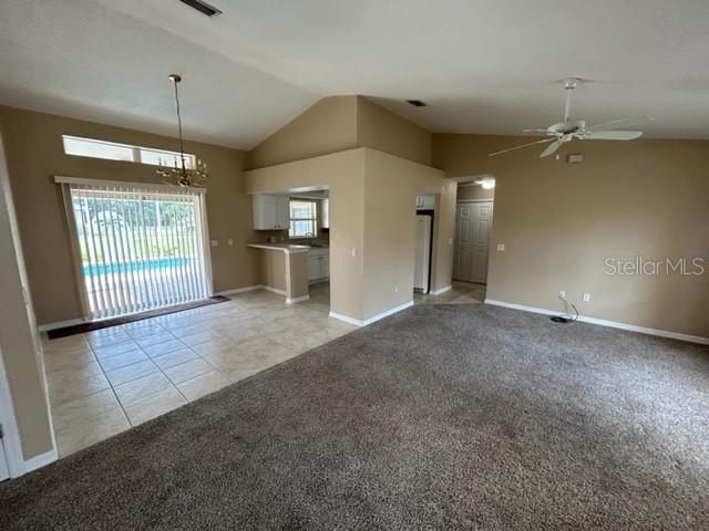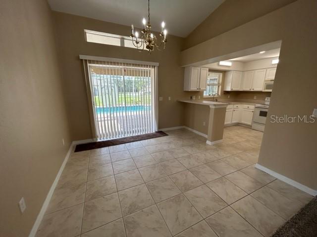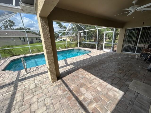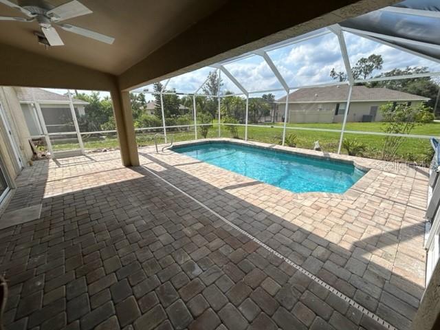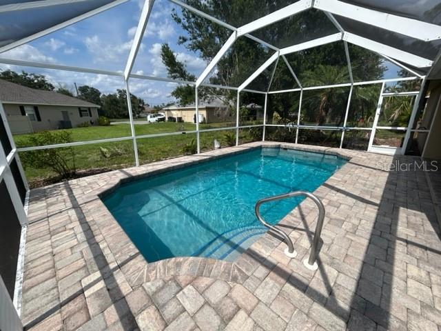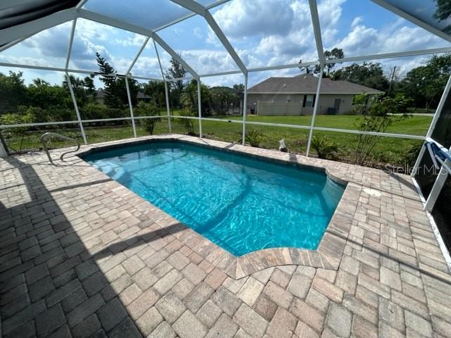 North Port Pool Home com 3 quartos, 2 banheiros, 2 carros garagem e 1444 sf de espaço vital. Telhado mais novo nos últimos 23 anos. Belo pátio de pavimentação de tijolos e deck da piscina com gabinete selecionado ideal para o prazer ao ar livre da Flórida! Design de casa do piso dividido com a suíte principal do quarto, cozinha e sala de jantar com vista para a piscina e pátio com acesso direto ao banheiro de hóspedes. A cozinha possui um armário embutido, geladeira, lava-louças, alcance de forno de vidro e microondas. A casa possui uma varanda da frente fechada e coberta, armário de lavanderia interna, ventiladores de teto, persianas, carpete e ladrilhos por toda parte.