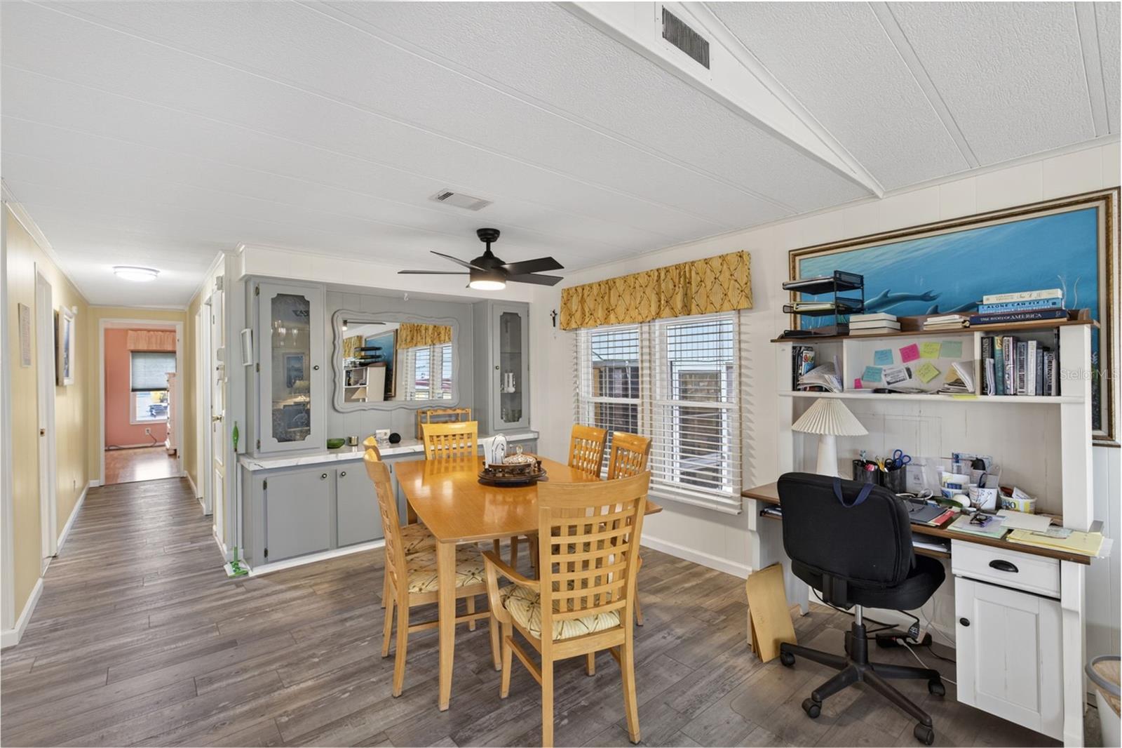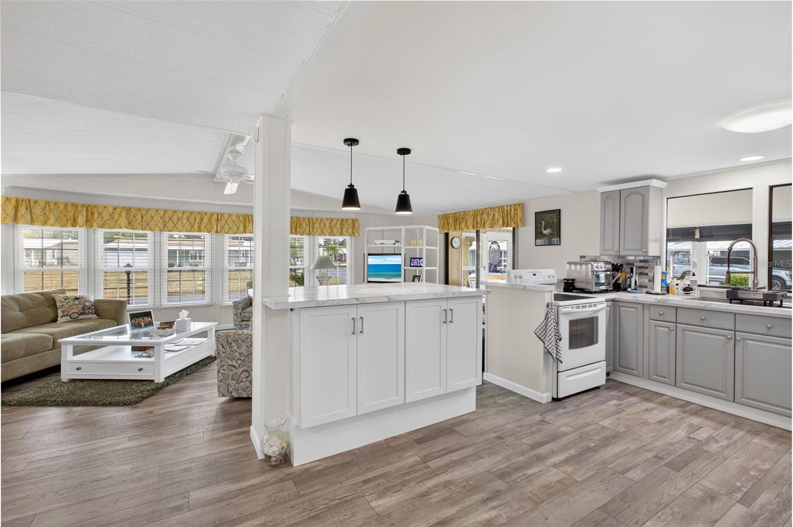 Pilares de tijolos marcam a entrada desta bem conservada casa La Casa de dois quartos e dois banheiros. Os pilares são fixados à saliência com tiras de amarração. Uma entrada de automóveis ampliada e pintada leva a uma varanda de azulejos revestida de vinil e uma despensa estendida com lavadora, secadora, pia funda, armazenamento e um aquecedor elétrico de água 2020. O hall de entrada oferece conexão para lavadora e secadora. A cozinha, remodelada em 2025, inclui armários novos, balcões elevados, backsplash em azulejo, eletrodomésticos e despensa. A planta aberta conecta as áreas de cozinha, jantar e estar em um espaço espaçoso. A sala de estar bem iluminada possui teto abobadado e uma porta de correr para o quarto acarpetado da Flórida, que inclui um sofá-cama queen-size e acesso ao pátio traseiro e à passarela coberta frontal. Armazenamento adicional está disponível com um armário no corredor e meia despensa. O quarto de hóspedes possui dois armários duplos e uma porta de correr para o quarto Flórida. O banheiro de hóspedes oferece box amplo, penteadeira nova, cômoda nova e armário de roupa de cama. O quarto principal possui teto abobadado e dois armários duplos, enquanto o banheiro privativo inclui uma penteadeira nova, cômoda, box amplo de azulejos e armários extras para armazenamento. Os recursos adicionais incluem um sistema automático de irrigação de gramado, novas janelas (2017), novo telhado (2018) e A/C (2018). Venha desfrutar do estilo de vida La Casa nesta linda casa localizada perto do nosso Rec Hall, piscina e comodidades. La Casa oferece o melhor estilo de vida na Costa do Golfo da Flórida e está localizada entre Sarasota e Fort Myers, com acesso de barco ao Rio Myakka. La Casa é uma comunidade tranquila com mais de 55 pessoas e 974 casas situadas entre uma variedade de árvores nativas. Espaçosos terrenos comuns cercam nossos oito lagos. Bem-vindo à boa vida! LAZER, 2 Clubhouses, 2 Piscinas Aquecidas. Não faltam atividades nesta comunidade!