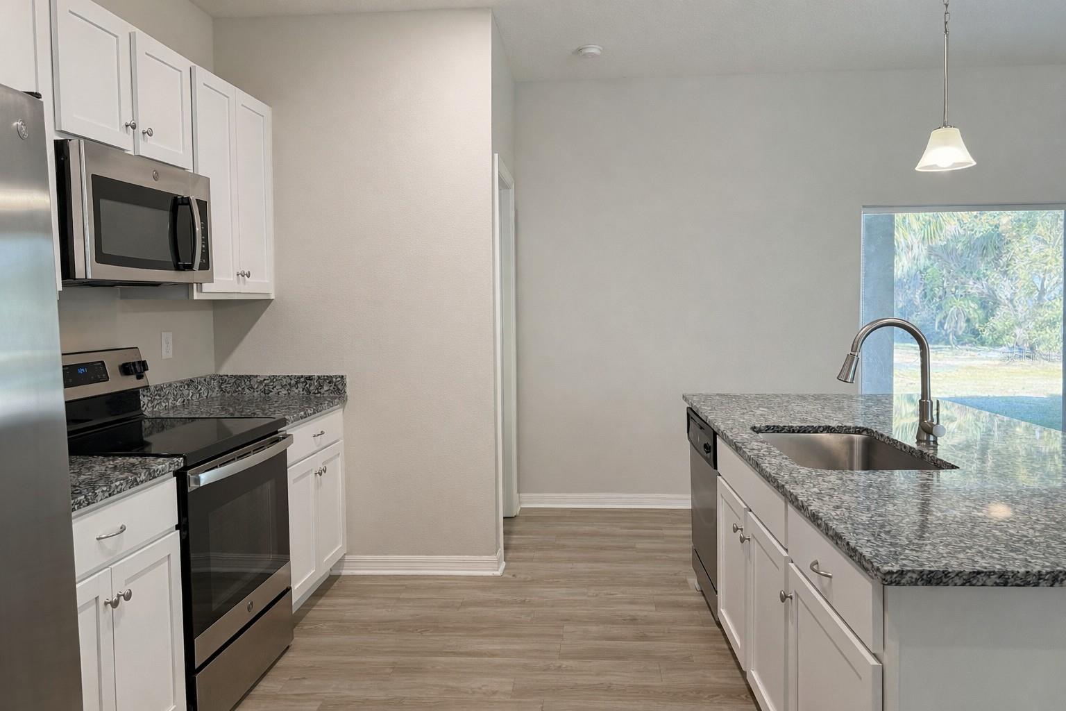 Charmosa casa moderna de 3 quartos e 2 banheiros com 1.548 pés quadrados de área confortável, construída em 2020 com design moderno e funcionalidade diária em mente. A espaçosa planta aberta apresenta luxuosos pisos de vinil nas principais áreas de estar e carpetes macios nos quartos, criando uma atmosfera elegante e convidativa. A cozinha foi cuidadosamente projetada com iluminação embutida, eletrodomésticos de aço inoxidável, bancadas de granito, despensa e uma grande ilha com banquetas com vista para a sala de estar e para a área de jantar separada - perfeita para entretenimento ou vida diária. Portas de vidro deslizantes abrem para uma varanda coberta, proporcionando um espaço relaxante para relaxar e desfrutar do ar livre. A suíte principal de tamanho generoso inclui dois closets e um banheiro privativo com box amplo de azulejos, bancada de granito e pias duplas. Os quartos secundários também são bem proporcionados, tornando-os ideais para famílias, convidados ou escritórios domésticos. Localizada fora de uma zona de inundação e sem taxas de HOA ou taxas de CDD, esta casa oferece valor agregado e tranquilidade. Agende sua exibição privada hoje.