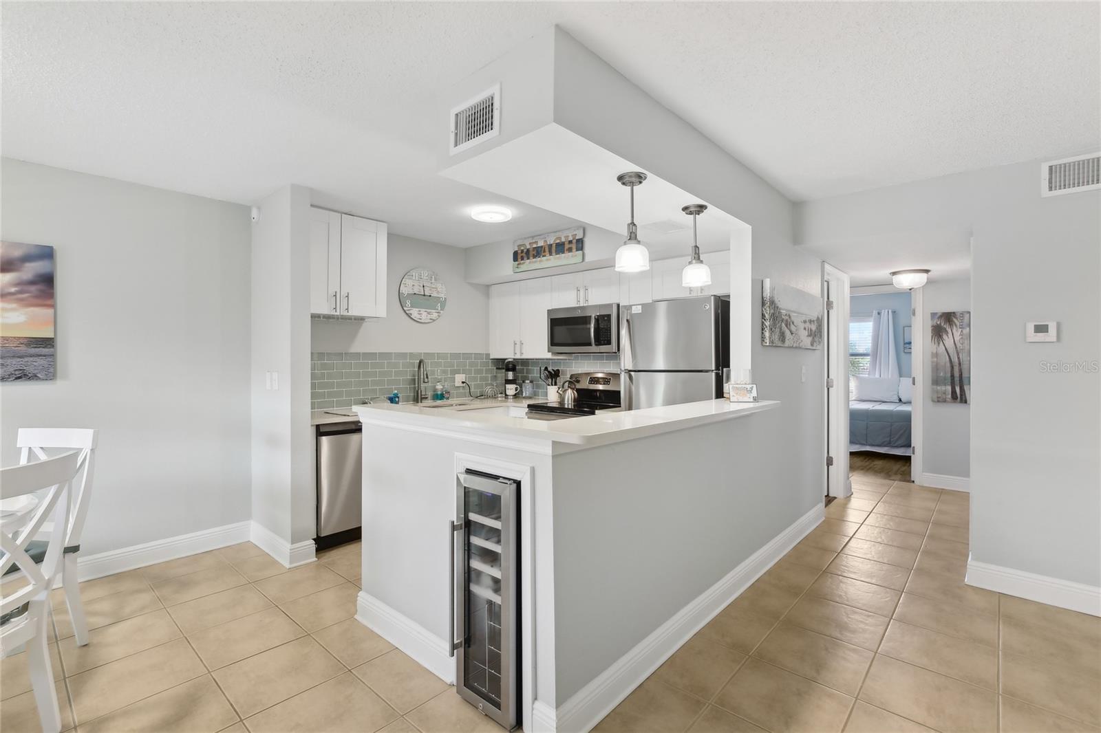 Não procure mais! O paraíso aguarda neste condomínio impecavelmente mantido no encantador bairro costeiro de North Redington Beach! Este condomínio de praia de dois quartos, com 2 quartos, com 2 quartos, está situado no segundo andar da comunidade de condomínios El Mar. Não foi afetado pelo furacão, é a mudança e o aluguel pronto e certamente promete um estilo de vida de relaxamento e conveniência. Aninhado do outro lado da rua de acesso público, você pode caminhar até as margens arenosas de North Redington Beach em segundos. Esta unidade recebe você com sua planta aberta, perfeitamente configurada para entretenimento. Adornado com ladrilhos de cerâmica e piso de LVP por toda parte, a manutenção é uma brisa, permitindo mais tempo para saborear o ambiente costeiro. A cozinha recentemente remodelada possui armários agitadores brancos elegantes, gavetas de close macio, bancadas de quartzo, um backsplash de ladrilhos de bom gosto, utensílios de aço inoxidável e um conveniente refrigerador de vinho. O espaçoso quarto primário possui dois armários com sistemas organizacionais e um banheiro privativo mostrando um chuveiro luxuoso. Enquanto o banheiro completo do hóspedes pelo salão oferece uma combinação de banheira/chuveiro para maior conforto. Atualizado cuidadosamente com um novo A/C e recursos de casa inteligentes, incluindo um termostato com eficiência energética e uma trava inteligente da porta da frente. Você também notará janelas com classificação de impacto para adicionar a paz de espírito. Aproveite a conveniência de uma lavadora/secadora na unidade e uma área de armazenamento ao ar livre privada para todos os seus itens essenciais na praia. Moradores e convidados gostam de acesso a uma academia privada, piscina, deck na cobertura com churrasqueira ao ar livre e vistas para o pôr do sol, spa de estimação com estação de lavagem de cães e manobra, um pátio tranquilo, chuveiro ao ar livre e armazenamento comunal de caiaque e bicicleta. As taxas de associação mensal do condomínio cobrem uma variedade de comodidades e serviços públicos, incluindo água, esgoto, lixo, cabo, internet, controle de pragas, manutenção da comunidade e seguros exteriores. A localização privilegiada deste condomínio pode ser percorrida para vários restaurantes, lojas, parques e paradas de transporte público, garantindo fácil acesso a toda a área que tem a oferecer. Além disso, esta propriedade é amigável para locatários do Airbnb com o mínimo de aluguel de duas semanas, tornando-a uma opção atraente para investidores experientes. Não perca esta oportunidade excepcional de possuir uma peça de paraíso costeiro! Agende uma exibição hoje!
