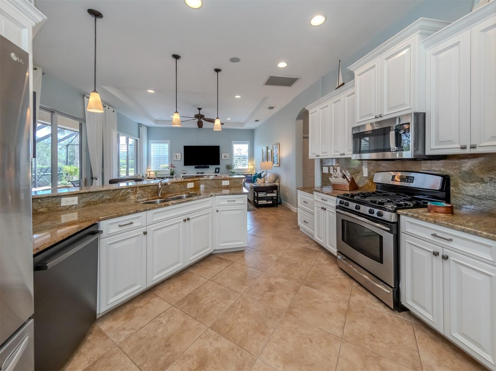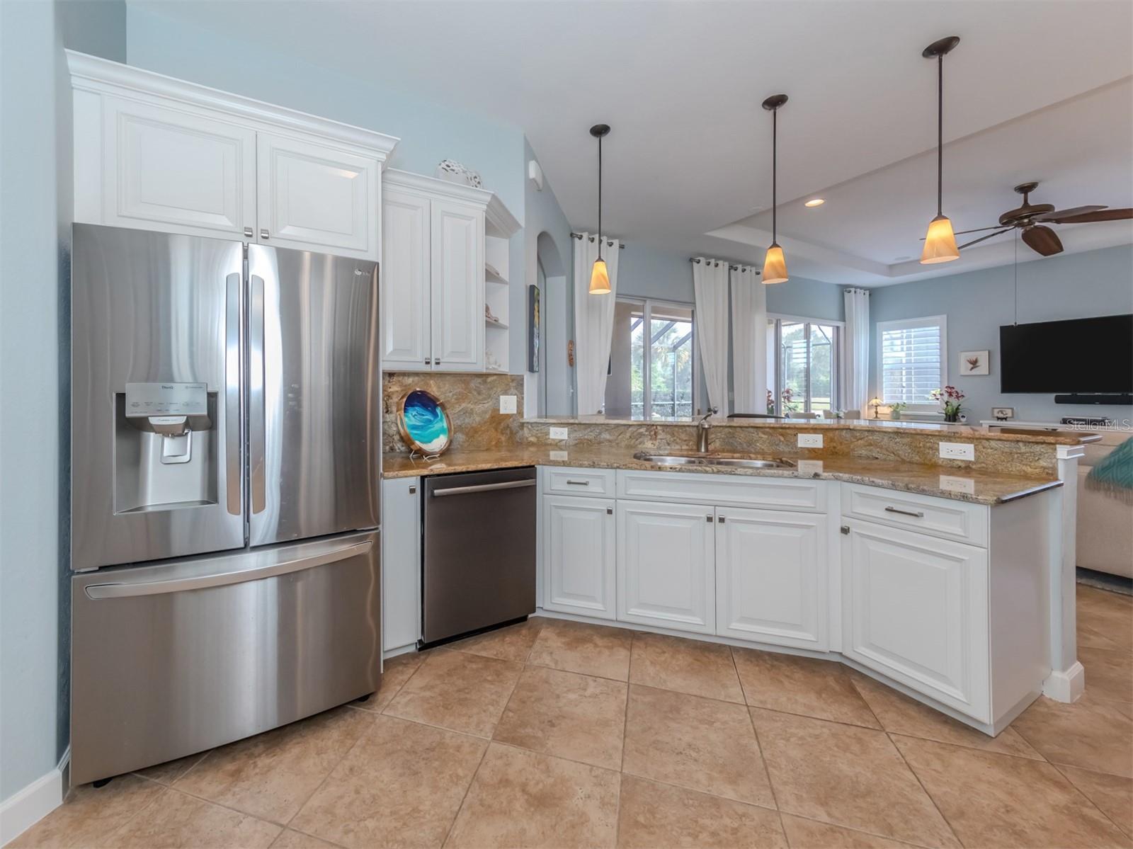 Casa com piscina de 2.064 pés quadrados, eloquentemente decorada, com belas vistas serenas para o mar enquanto você aprecia a vida selvagem e o espetacular pôr do sol do sudoeste, oferecendo três quartos, uma sala de jantar formal, sala de estar e sala de família, dois banheiros completos, garagem para dois carros e é perfeitamente situado para maior privacidade, sem casas atrás de você. A combinação perfeita de elegância moderna e vida confortável no exclusivo condomínio fechado de golfe do Venetian Golf & River Club. Este modelo WCI Angelico foi lindamente atualizado com venezianas de plantação 2023, aquecedor de água quente sem tanque 2022, telas motorizadas de varanda de furacão 2021, 2019 AC, gerador de gás para toda a casa 2019, janelas e portas contra impacto de furacão, telas de varanda elétricas, sistema de proteção contra raios, profissionalmente paisagismo atualizado e muito mais! Ao entrar, você será saudado por tetos altos e uma espaçosa planta dividida meticulosamente mantida e um hall de entrada repleto de luz natural com vista para a sala de jantar formal e a sala de estar. A sala de jantar formal está localizada perto da cozinha, tornando muito fácil servir aquelas refeições especiais. Este layout dividido bem projetado tem vista para a piscina e o lago, conectando perfeitamente a cozinha e a sala de família, criando um espaço ideal para entreter a família e os convidados. A cozinha possui armários de madeira maciça opacos, bancadas em granito, balcão para café da manhã, despensa, eletrodomésticos em aço inox, fogão a gás e vista para a sala de família, tornando esta cozinha o sonho de um chef! A suíte do proprietário está perfeitamente situada em um lado da casa, com closets duplos e oferece o máximo de privacidade, com porta de vidro deslizante de acesso à varanda para aqueles mergulhos noturnos na banheira de hidromassagem. O banheiro privativo do proprietário inclui pias duplas, banheira de jardim, box amplo de vidro e vaso sanitário privativo. O segundo e terceiro quartos estão localizados do outro lado da casa e compartilham o segundo banheiro completo, criando um oásis tropical para os hóspedes. Abra os controles deslizantes e estenda seu espaço de estar para sua grande varanda com tela, piscina aquecida, jacuzzi e cozinha externa que inclui churrasqueira embutida, exaustor, pia e geladeira. O local perfeito para desfrutar do café da manhã ou de uma refrescante bebida à tarde, depois de passar o dia no campo de golfe ou na praia. Quer prefira relaxar no pátio ou fazer um churrasco, você descobrirá que este espaço ao ar livre é uma extensão encantadora da casa. O Venetian Golf & River Club oferece um campo de golfe profissional com driving range (não obrigatório), clubhouse e restaurante/bar (sem mínimos), loja profissional de tênis, quadras de pickleball, piscina/spa do resort, piscina olímpica, equipamentos de sala de ginástica de elite , vestiários e um parque natural sereno de 70 acres aconchegado ao longo do rio Myakka, com ótima e segura capacidade de caminhar. O bairro também oferece segurança 24 horas por dia, 7 dias por semana, com guarita fechada. Esta propriedade fica a poucos minutos do pitoresco centro de Veneza, do novo Sarasota Memorial Hospital, da I-75, 41, de restaurantes, das praias do Golfo do México, do centro de treinamento de primavera dos Braves e do novo centro de Wellen Park! Depressa, esta casa não vai durar!