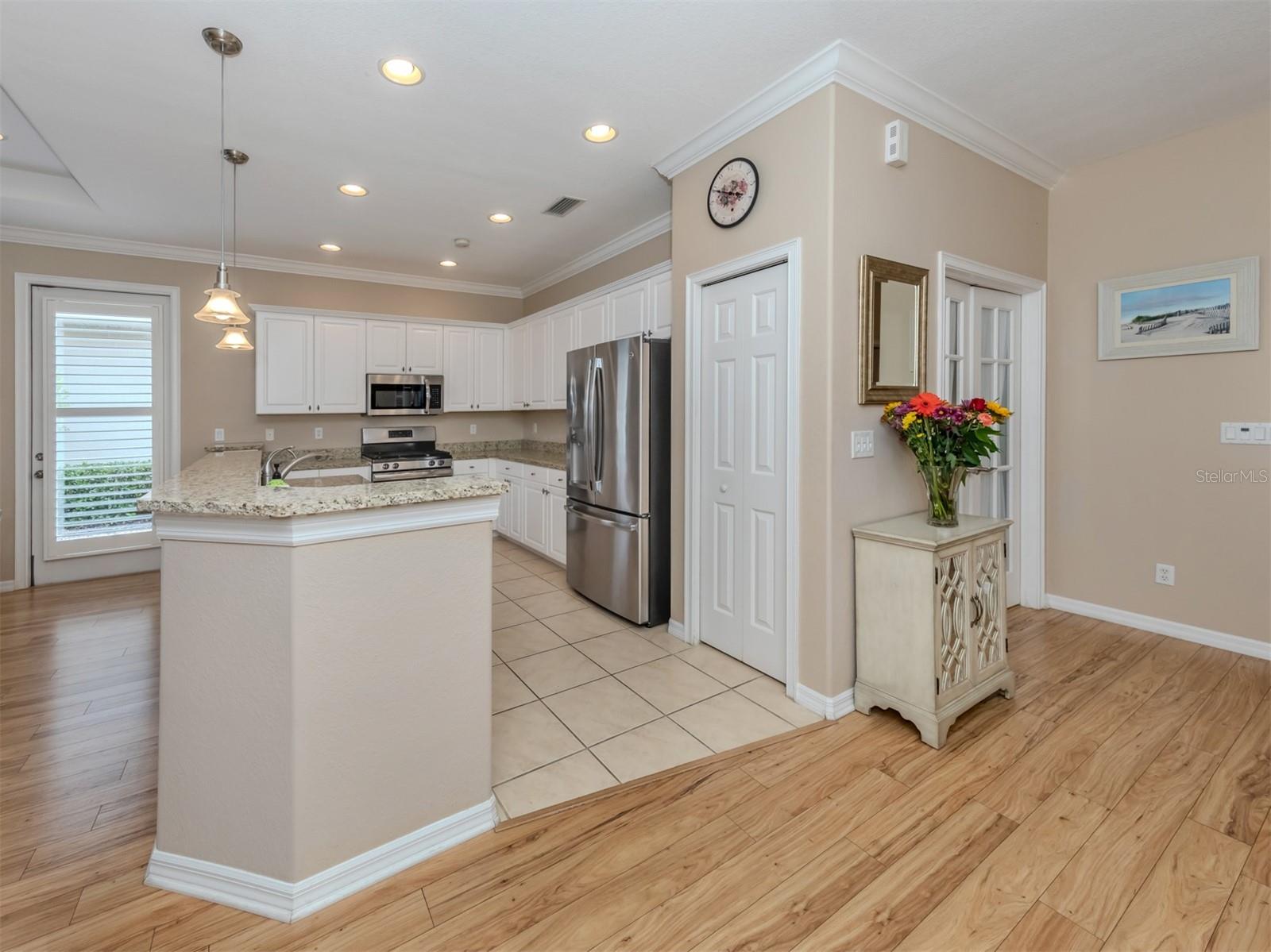MANUTENÇÃO GRATUITA WCI Casa Massari construída, com 2 quartos, 2 banheiros, sala grande, arrumos com lindas portas francesas que tornam este quarto maravilhoso para hóspedes, além de uma espaçosa garagem para 2 carros dentro do sereno e fechado Venetian Golf & River Club. Esta residência meticulosamente mantida oferece uma planta aberta perfeita com VISTAS TRANQUILAS PARA A ÁGUA visíveis a partir da sala de jantar, sala grande/de estar, cozinha, suíte dos proprietários e a LANAI RECÉM-AMPLIADA. As atualizações incluem pisos de madeira, umidóstato, torneiras de cozinha e banheiro atualizadas, luminárias correspondentes, sistema de filtro de água e pré-cabeamento para segurança e alto-falantes. Ventiladores de teto em todos os quartos, incluindo a varanda, e sancas nas principais áreas de estar. A cozinha é uma delícia culinária com armários leves, bancadas em granito, aparelhos a gás, uma geladeira nova e balcão para café da manhã. Saia para a varanda privada e expansiva e experimente brisas suaves e paisagens cativantes, realçadas por uma paisagem exuberante. Outras atualizações importantes da propriedade incluem um novo sistema de ar condicionado instalado em 2020, um aquecedor de água mais recente, lavadora e secadora atualizadas em 2023, amaciante de água e sistema RO na cozinha, venezianas e persianas verticais que levam à sua varanda. Os recursos de acessibilidade incluem chuveiro acessível para deficientes físicos e corrimãos de segurança em ambos os banheiros. Confortos e conveniências adicionais incluem um termostato West para controle ideal de temperatura, luzes com temporizador automático no exterior, teclado na porta da garagem, janelas anti-furacão e tetos abobadados na garagem para 2 carros. O exterior foi repintado há três anos, garantindo uma aparência renovada. Esta residência está sendo vendida mobiliada. Abrace o estilo de vida livre de manutenção oferecido por esta casa excepcional no The Venetian Golf & River Club - agende sua excursão hoje e imagine sua vida neste retiro tranquilo, a poucos minutos das praias do Golfo, de instalações médicas de última geração e de lojas, The Venetian Golf & River Club oferece comodidades excepcionais, como restaurantes requintados com vistas panorâmicas do rio, uma academia abrangente, piscina olímpica, piscina estilo resort com bar cabana, bola de picles e um centro de tênis Har-Tru. Os moradores também têm acesso a um campo de golfe profissional de 18 buracos em meio a uma comunidade com belo paisagismo.