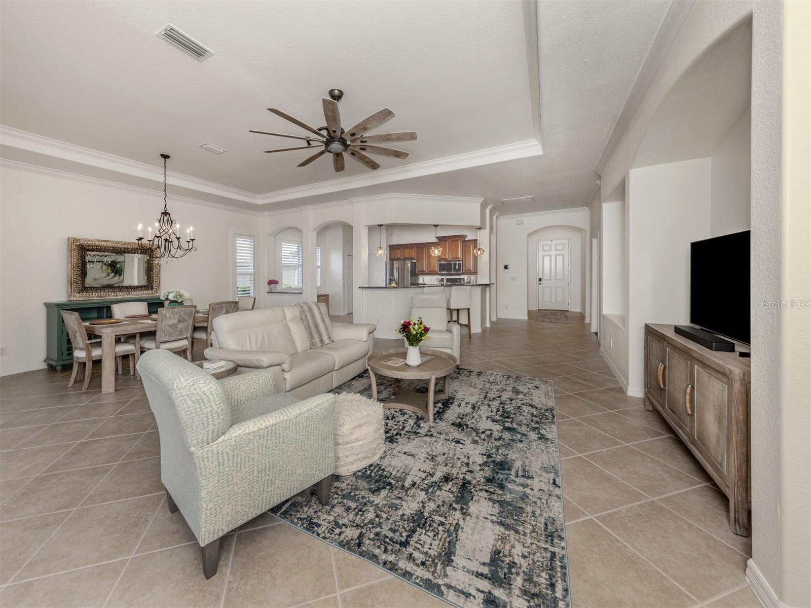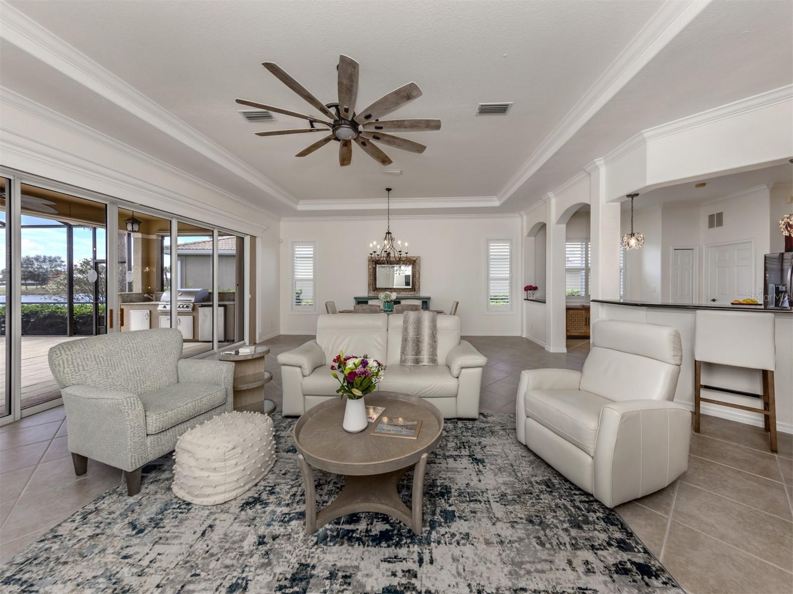 Vistas deslumbrantes para lago e pôr do sol, vida livre de manutenção! Experimente a beleza e a serenidade desta casa de modelo Fiorentino Grand Villa, criada pelo WCI, com dois quartos espaçosos, dois banheiros e Den. Este plano aberto com portas de vidro de bolso levando perfeitamente à extensão de lanchonete pavimentada com cozinha ao ar livre e piscina infinita aquecida e spa. Tudo isso o torna ideal para relaxamento e entretenimento. A cozinha oferece LG mais recentes, aparelhos de grafite, armários de madeira, bancadas em granito e ilha do chef fazendo cozinhar e entreter uma delícia. A suíte do grande proprietário oferece teto de bandeja, moldagem por coroa, porta privada que leva ao Lanai, closet, pias duplas e banheira e chuveiro separados. Desfrute de comodidades no estilo resort no Venetian Golf and River Club, incluindo um campo de golfe de 18 buracos, piscina comunitária aquecida, piscina de colo, seis quadras de tênis Har-Tru®, quadras de pickleball e um centro de fitness de primeira linha com aulas programadas. Saboreie refeições deliciosas no River Club Restaurant ou à beira da piscina durante a temporada. Apenas a uma curta distância de carro das impressionantes praias da Costa do Golfo e do centro vibrante de Veneza, este local oferece tudo o que você precisa. Explore Boulevards arborizados, lojas encantadoras, restaurantes requintados e pontos de acesso culturais como o Venice Art Center, Theatre and Library. Além disso, você está a poucos minutos das instalações médicas de última geração, incluindo o Sarasota Memorial Hospital.