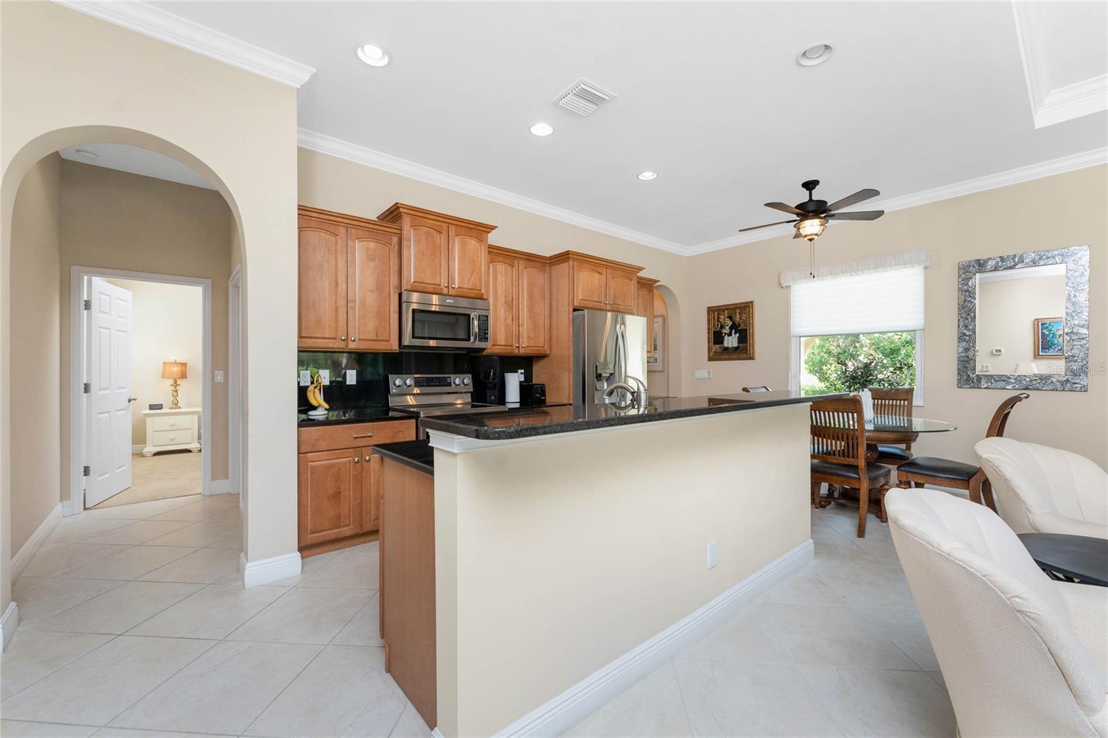 Bem-vindo a este modelo Grand Villa Lessina construído pela WCI, uma propriedade deslumbrante com 1.756 pés quadrados de espaço aberto e arejado, perfeitamente situada em uma seção livre de manutenção do prestigioso condomínio fechado de golfe do Venetian Golf & River Club. A casa possui uma grande sala com tetos falsos, abrindo para uma espaçosa cozinha equipada com eletrodomésticos de aço inoxidável, bancadas em granito, balcão para café da manhã e área para refeições embutida em estilo café. A cozinha também inclui um prático armário, despensa e piso de cerâmica. Esta charmosa vila oferece dois quartos confortáveis, incluindo uma luxuosa suíte do proprietário com tetos de bandeja, banheiro completo com banheira de jardim, chuveiro de vidro separado, pias duplas com balcões de Corian, vaso sanitário privativo e closet. Para flexibilidade adicional, uma sala bônus com entrada de porta dupla está localizada ao lado da cozinha, perfeita para um escritório, escritório ou sala de jantar formal. A entrada lateral aumenta a atratividade da casa com um lindo paisagismo. Janelas de impacto do furacão. No interior, um espaçoso hall de entrada inclui um armário extra e a garagem para dois carros oferece amplo armazenamento. Finalmente, uma varanda protegida oferece um local perfeito para relaxar e apreciar as vistas encantadoras. Esta casa realmente combina conforto e estilo, tornando-a um retiro ideal. Os residentes desfrutam de uma variedade de comodidades de classe mundial, incluindo: um restaurante panorâmico com vistas deslumbrantes do rio Myakka e um parque natural de 70 acres. Fitness e bem-estar: academia completa, estúdio de aeróbica e piscina olímpica. Recreação: Piscina estilo resort com cabana-bar, centro de tênis Har-Tru de seis quadras e quadras de pickleball. Golfe: Um campo de golfe profissional de 18 buracos que serpenteia pela bela paisagem da comunidade. Esta localização excepcional está convenientemente localizada perto do centro de Veneza, das suas praias imaculadas e do novo Sarasota Memorial Hospital. Não perca a chance de experimentar o que há de melhor na vida na Flórida.