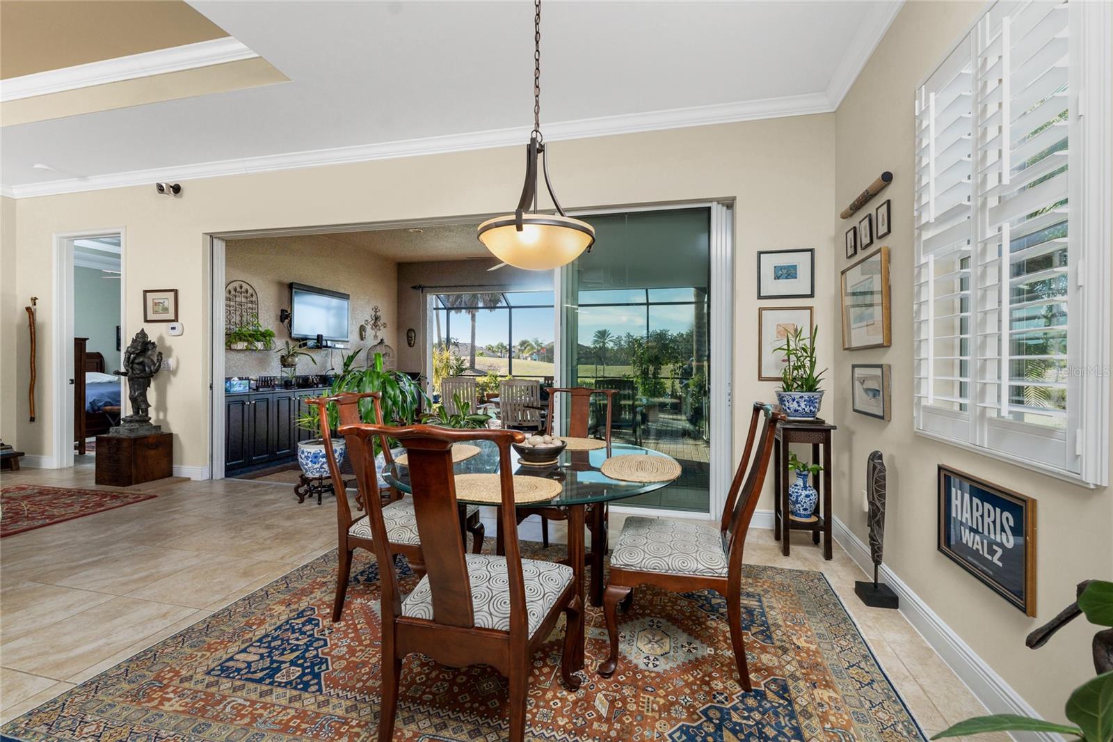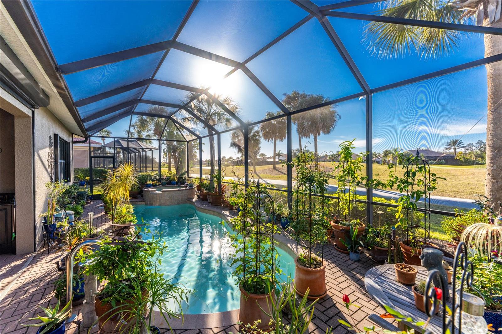 Vistas exuberantes dos fairways e seu próprio oásis privado à beira da piscina! ESPETACULAR WCI construiu modelo Florencia SEM MANUTENÇÃO com PISCINA DE ÁGUA SALGADA E SPA em um LOTE DE CAMPO DE GOLFE PREMIUM! A casa é ancorada por uma grande sala ensolarada com elegantes tetos de bandeja, criando uma atmosfera arejada e sofisticada para relaxamento e entretenimento. Este espaço central se abre através de amplas portas de vidro deslizantes que combinam o interior com uma magnífica varanda protegida, onde uma piscina cintilante e um spa integrado servem como seu santuário privado. Deste ponto de vista, você pode desfrutar de vistas deslumbrantes do pôr do sol ocidental, dos verdes ondulados do campo de golfe e da água tranquila e cintilante. Uma cozinha aberta torna esta casa ótima para se divertir com balcões de granito, muito espaço no balcão, um balcão para café da manhã, lindos armários e uma área de jantar estilo café, além de uma área de jantar formal. Esta residência meticulosamente mantida oferece três quartos espaçosos com piso totalmente novo para uma aparência renovada e garagem para dois carros. O layout dos quartos divididos garante o máximo de privacidade, especialmente na suíte principal, que possui um closet personalizado e um chuveiro lindamente remodelado. Fortalecida com persianas sanfonadas, esta casa prioriza luxo e tranquilidade. A vida é fácil aqui, já que a associação social coberta pelo HOA concede acesso a restaurantes em estilo resort, academias de ginástica, 2 piscinas, incluindo um Tiki bar ao lado da piscina, tênis, pickle ball e um calçadão panorâmico do Rio Myakka - tudo a poucos minutos do encanto histórico da Ilha de Veneza e das areias brancas da Praia Nokomis, além de fácil acesso a instalações médicas, lojas e Sarasota.