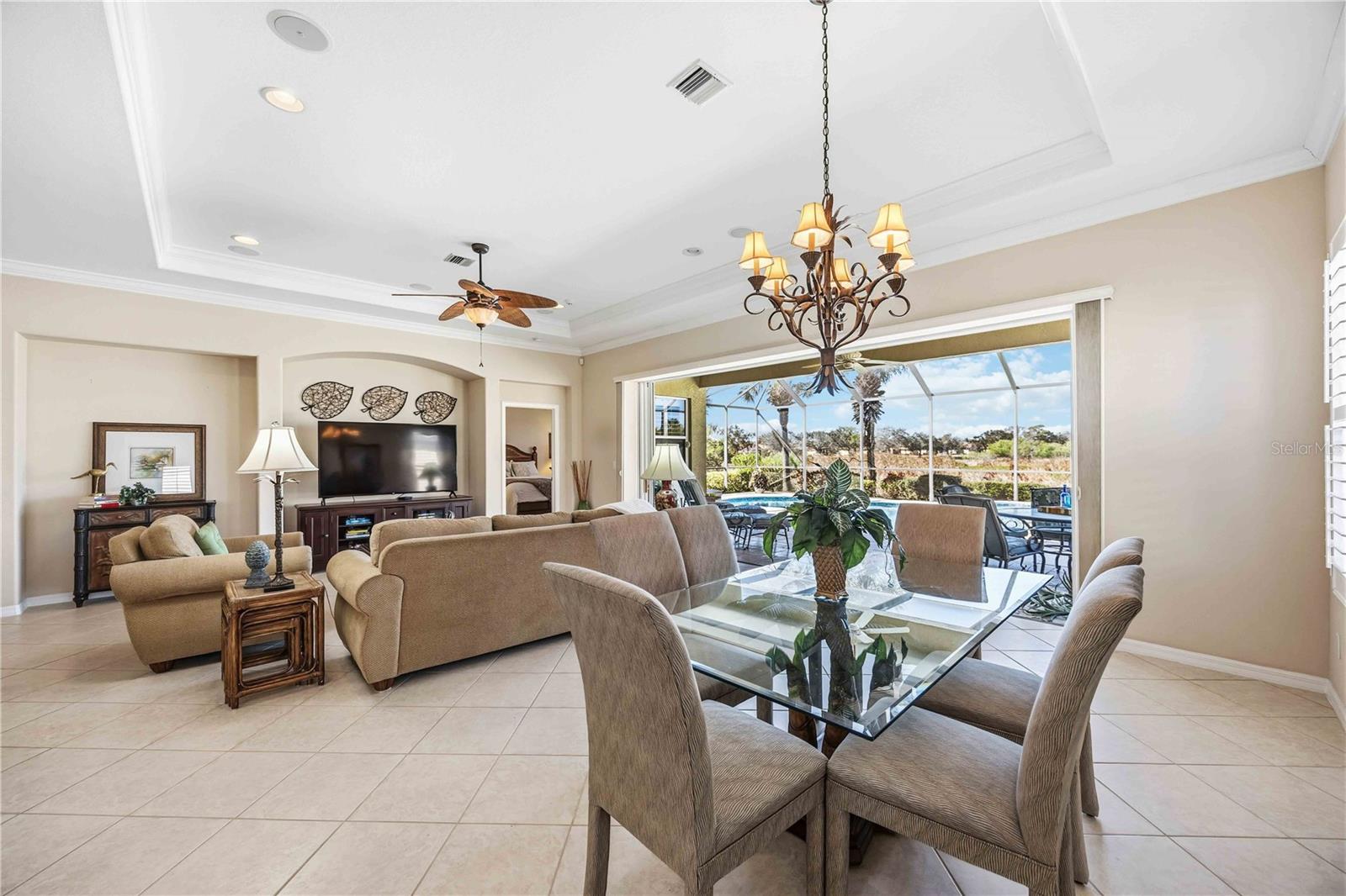 Bem-vindo à vida em estilo resort no muito procurado Venetian Golf & River Club. Passe pela porta da frente desta bela casa de 2 quartos, 2 banheiros, totalmente mobiliada e pronta para morar, onde espaços cheios de luz, design atencioso e vida interna e externa perfeita se unem. Um novo ar condicionado acrescenta conforto ao novo proprietário desta casa. A planta baixa de conceito aberto e iluminada chama imediatamente sua atenção para as vistas deslumbrantes da piscina aquecida e do spa e da ampla varanda com vista para um vasto espaço verde natural. Abra a impressionante parede de 20 pés de portas de vidro deslizantes para deixar entrar o ar livre, desfrutando de vistas tranquilas desde a luz da manhã até o pôr do sol de tirar o fôlego - perfeito para noites tranquilas e divertidas. A varanda é verdadeiramente um retiro privado, com uma área coberta de 25 pés, deck de piscina personalizado e amplo espaço para relaxar na sombra ou desfrutar de refeições ao ar livre. Prefere o sol? Relaxe à beira da piscina ou relaxe na piscina de água salgada com azulejos personalizados ou na banheira de hidromassagem, tudo isso com vista para o amplo cenário verde com paisagismo que balança suavemente. No interior, a casa apresenta tetos altos, tetos em forma de bandeja, sancas duplas, acabamentos neutros e luz natural abundante. A cozinha foi projetada para ser funcional e divertida, oferecendo bancadas de granito, ilha central, balcão para café da manhã, copa, amplos armários e iluminação sob os armários, todos abertos para as áreas de jantar e de estar. A suíte principal, localizada na parte traseira da casa, oferece vistas serenas do espaço verde, da piscina e da varanda. O banheiro privativo inclui um amplo closet, box amplo, banheira de hidromassagem, pia dupla de granito, armário de roupa de cama e vaso sanitário privativo. Os hóspedes desfrutam de privacidade na frente da casa com um segundo banheiro próximo com pia de granito e combinação de banheira/chuveiro. A sala, acessada por portas francesas, é ideal para home office, estudo ou espaço adicional para hóspedes. Esta casa oferece a combinação perfeita de espaço, privacidade e estilo de vida na Flórida - destacada por vistas tranquilas, piscina aquecida e spa, além de uma excepcional vida interna e externa. As comodidades da comunidade incluem restaurante, piscina em estilo resort com bar tiki, piscina olímpica, academia, quadras de tênis e pickleball, trilhas panorâmicas para caminhada no rio ao longo do rio Myakka e uma entrada fechada com guarda. Os residentes podem aderir ao Venetian Golf Club por uma taxa de adesão adicional. Idealmente localizado a aproximadamente 5 km da I-75 e do Sarasota Memorial Hospital – Veneza, a 14 km da Praia Nokomis e do centro histórico de Veneza, a 18 km do Wellen Park e a apenas 20 minutos de Sarasota.