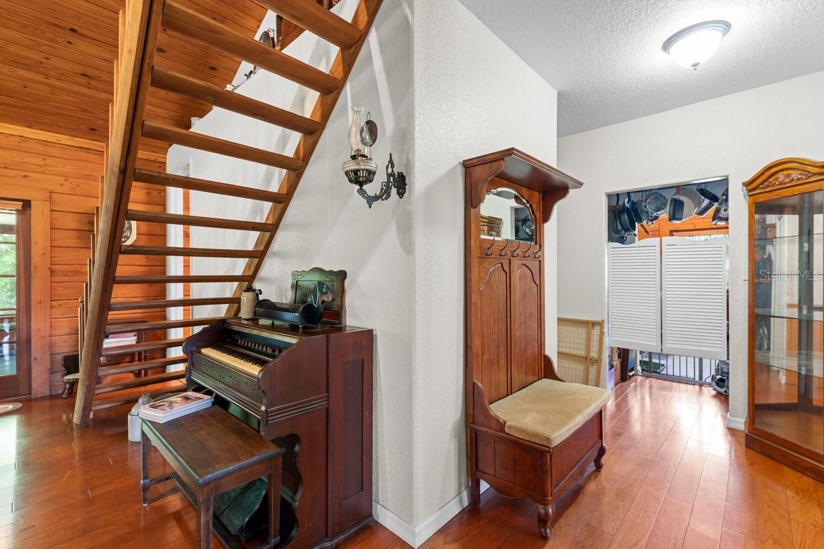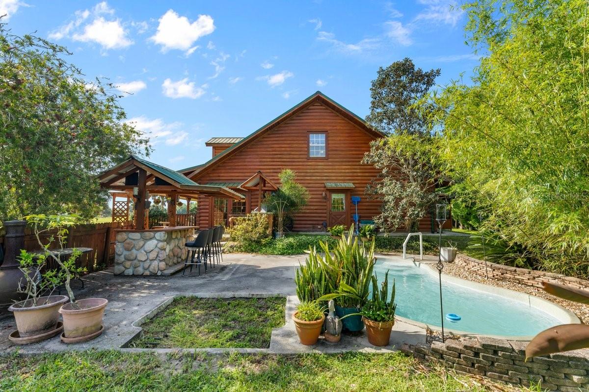 Linda casa de toras em 10 acres incríveis com um lago recebendo você em casa quando você entra pelo portão privado, pronto para seus novos proprietários! Esta casa foi construída pelo proprietário original e cuidada com carinho ao longo dos anos. Possui 3 quartos, 3 banheiros, sala de estar com tetos abobadados de madeira e lareira de pedra dupla face do teto ao chão e azulejos na suíte master. Portas francesas duplas que dão para a grande varanda dos fundos com vista para os grandes carvalhos com muita vida selvagem para desfrutar, bem como um riacho encantador que atravessa. Pisos de madeira na maior parte da casa, telhado de metal, armários de cozinha de madeira maciça com fornos duplos a gás/elétricos - fornos, micro-ondas, lava-louças e fogões, todos da Elmira Stove Works do Canadá, com portas francesas que dão para o deck da piscina com bar para entreter. Despensa extra grande que dá acesso à lavanderia interna, suíte master com espaço para relaxar, banheiro privativo com grande banheira de jardim e pias duplas, amplo closet forrado de cipreste e 2 espaços extras de closet. O segundo banheiro completo no térreo tem porta externa com box amplo que pode ser usado para banho de piscina. Quarto no andar de cima com banheiro privativo completo, amplo closet (atualmente usado como escritório), pequeno espaço no sótão, bem como extra grande espaço aberto no sótão para muito espaço de armazenamento extra! Novo HVAC 5/2023. 5,6 acres melhorados com 4,4 terrenos baldios (não pântanos!!) Comprador e agente para verificar todas as informações.