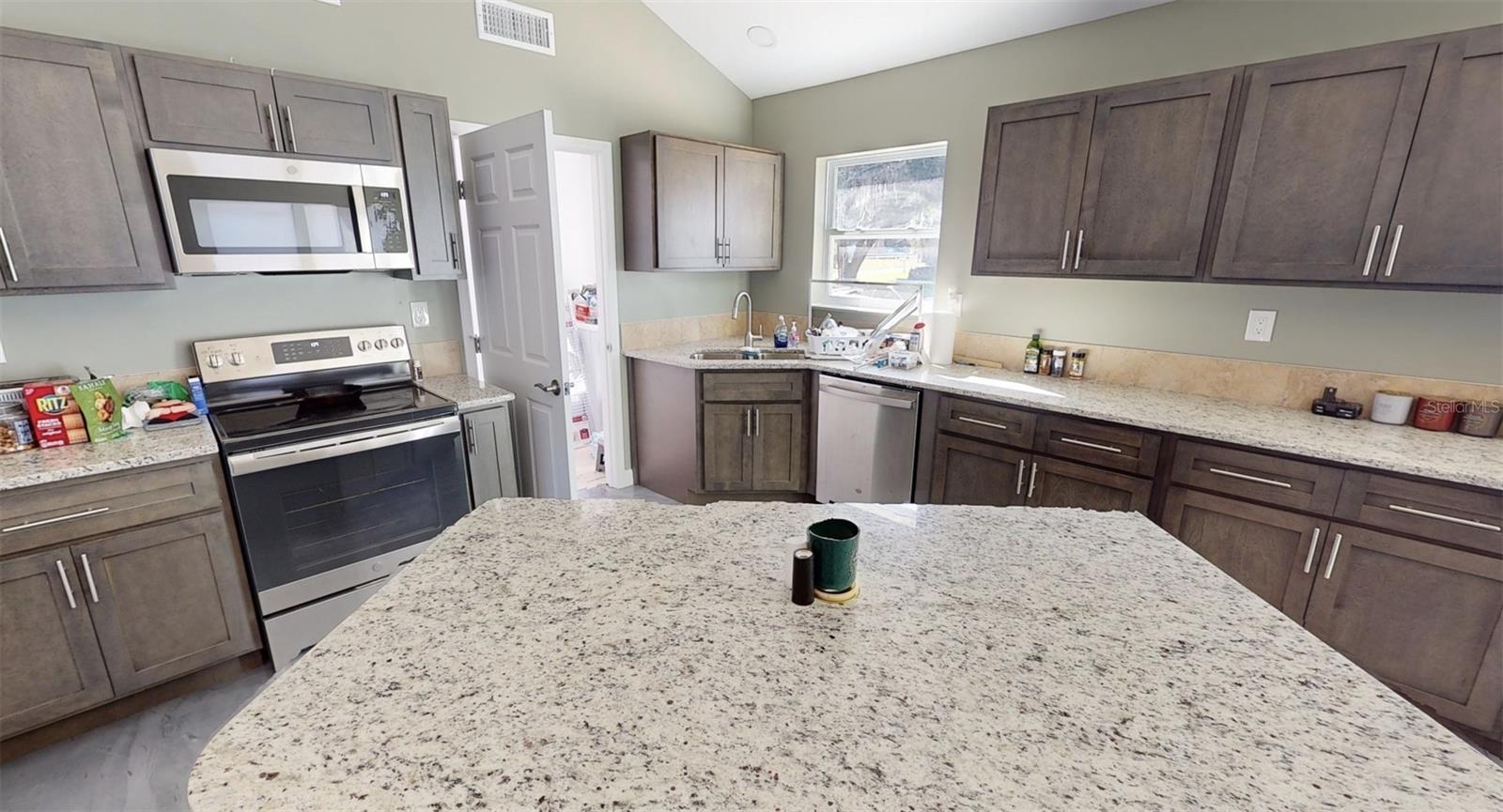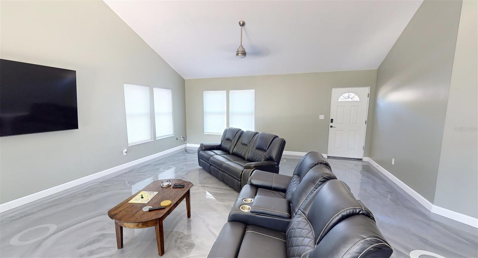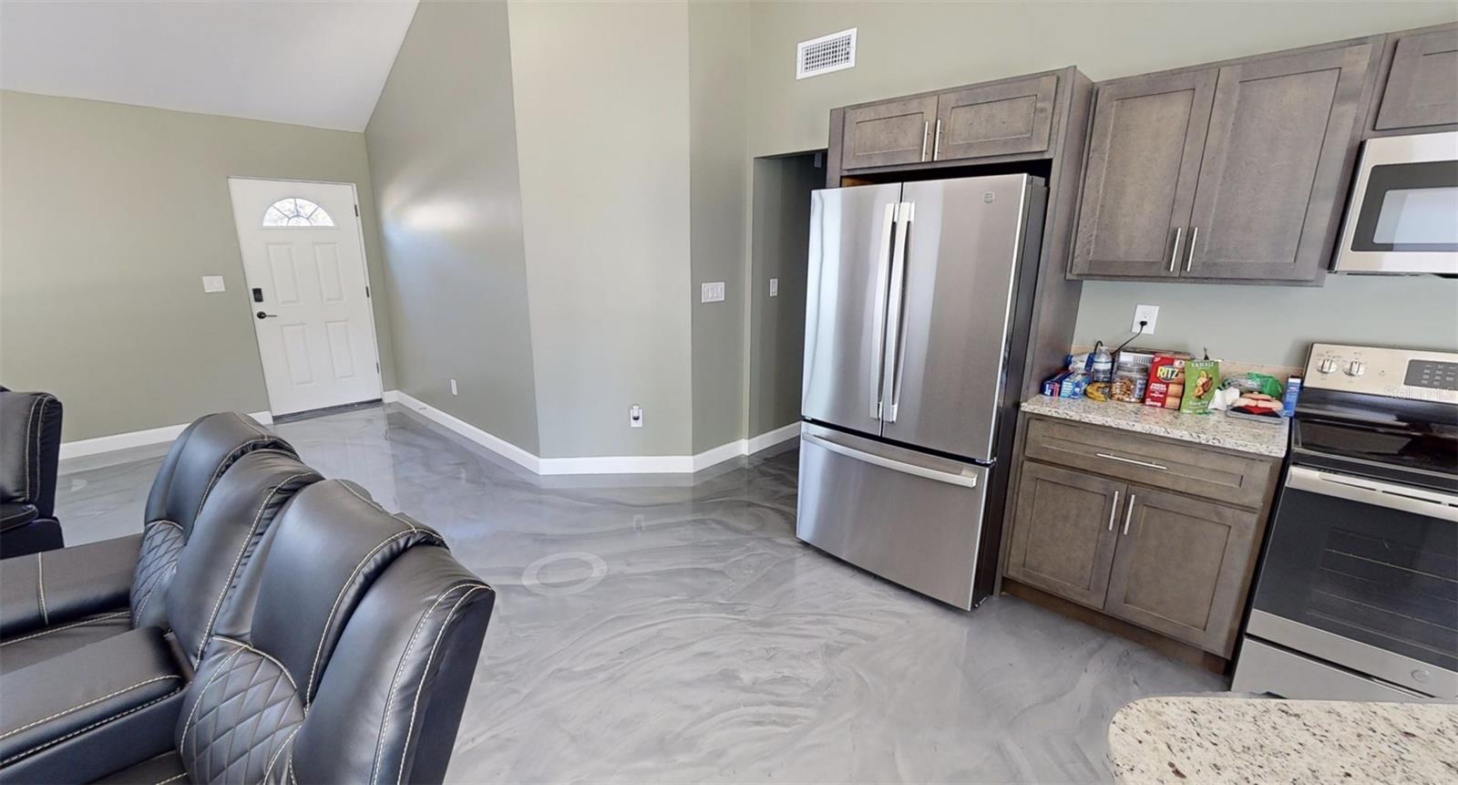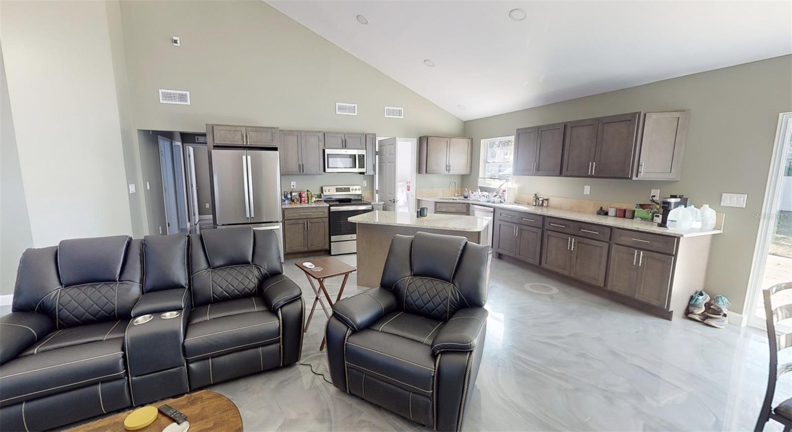Recém-construída em 2023, esta casa de 3 quartos e 2 banheiros em 160 Howes St em Oak Hill, FL, fica em um espaçoso terreno de 20.795 pés quadrados. lote de esquina. Com 1.536 pés quadrados. de área útil, possui tetos dramáticos de catedral, um layout aberto e uma cozinha equipada com eletrodomésticos modernos e uma ilha central. Esta casa com eficiência energética inclui janelas totalmente novas e um telhado metálico durável, projetado para reduzir os custos de energia. Seu interior aberto e cheio de luz cria um espaço acolhedor, perfeito para relaxar e se divertir.