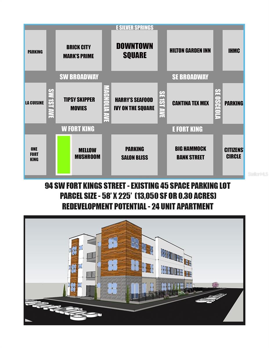 No coração do crescimento rápido do centro de Ocala, este está funcionando totalmente 45 estacionamento espacial. Este estacionamento é vital para o centro da cidade e oferece uma ótima localização para os visitantes. Fins de semana, feriados e eventos trazem desafios de estacionamento com a garagem principal da cidade, mesmo atingindo a capacidade total. O equipamento de estacionamento está atualmente alugado e o comprador pode continuar o arrendamento ou remover o equipamento. O estacionamento pode ser reconstruído em 12 casas da cidade, mais de 20 condomínios, uso misto, restaurante, bar, cervejaria, salão de spa, hotel boutique, local de eventos e muito mais, se desejar. O proprietário projetou o site para um futuro projeto de apartamentos de 24 unidades, mas você pode fazer o que quiser com a propriedade. O design do conceito está incluído na venda. O vendedor tem uma pesquisa recente disponível, que também seria transferida com a venda, juntamente com um estudo ambiental, indicando que o site está limpo. Do outro lado da rua, 110 SW Fort King (lote vago) também está à venda pelo mesmo proprietário. Consulte MLS listando OM707230 O valor da propriedade para esta propriedade só aumentará com o tempo à medida que mais terrenos próximos forem reconstruídos. O vendedor possui um design conceitual e imagens 3D para o design proposto disponível.