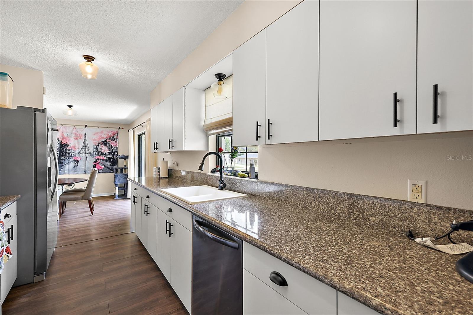 ESTA CASA É A DEFINIÇÃO DE MUDANÇA PRONTA!! O telhado foi feito em 2021 e o AC é novo e vem com garantia totalmente transferível (04/06/24). Se você é um comprador de casa pela primeira vez ou está procurando sua casa para sempre, você pode voltar para casa e relaxar nesta casa 3/2 lindamente atualizada na muito desejável subdivisão de Marion Oaks. Esta casa oferece uma planta aberta e um belo piso flutuante de pranchas de vinil por toda parte. A sala de estar se abre para a sala de jantar, proporcionando amplo espaço para toda a família passar momentos juntos. A cozinha foi totalmente refeita com bancadas em granito e eletrodomésticos atualizados. Você ficará encantado em ver que todos os 3 quartos possuem armários grandes e ambos os banheiros possuem penteadeiras atualizadas e piso de porcelanato. Ao sair, você notará imediatamente todo o espaço de que dispõe para criar o espaço ao ar livre dos seus sonhos. Esta casa não está em uma comunidade HOA, então as possibilidades são infinitas. Há também todo um sistema de segurança residencial que inclui 2 câmeras externas. A casa está convenientemente localizada perto da I75, do centro de Ocala e das Aldeias.