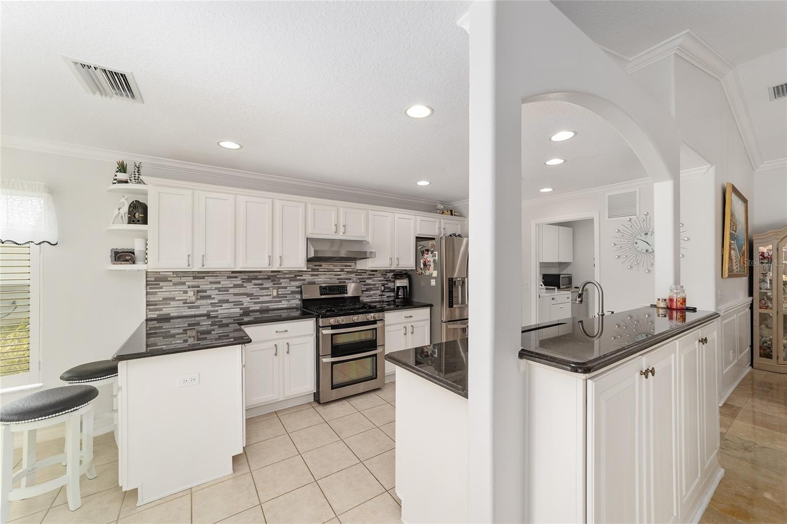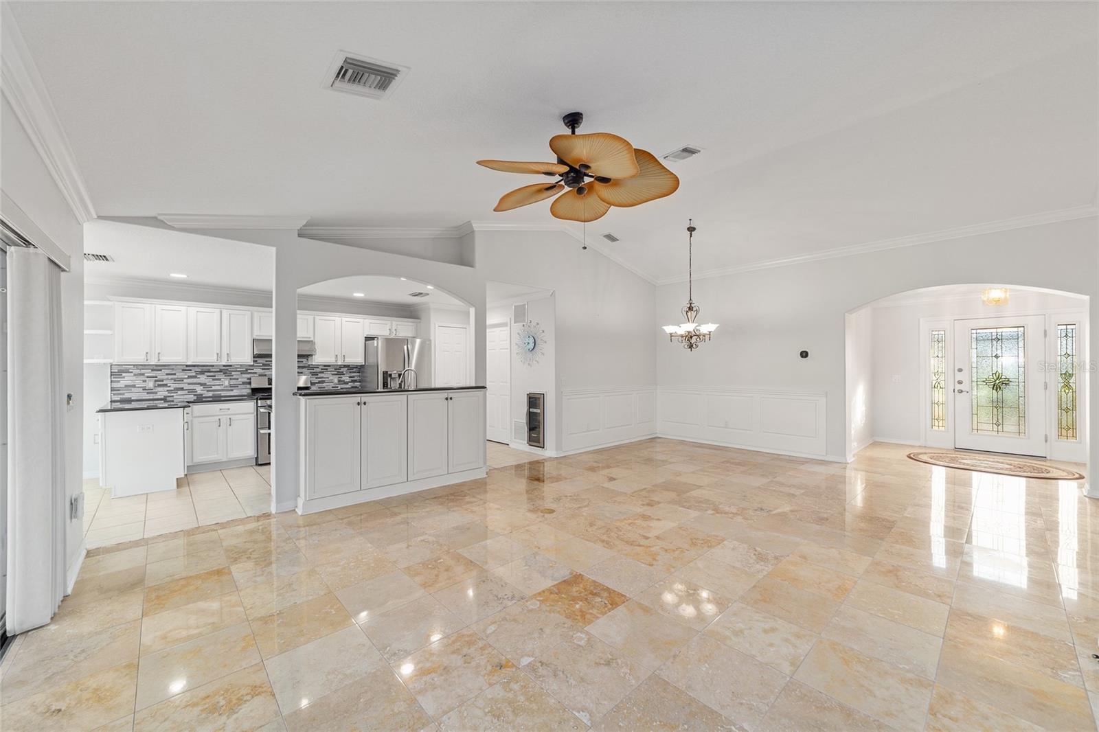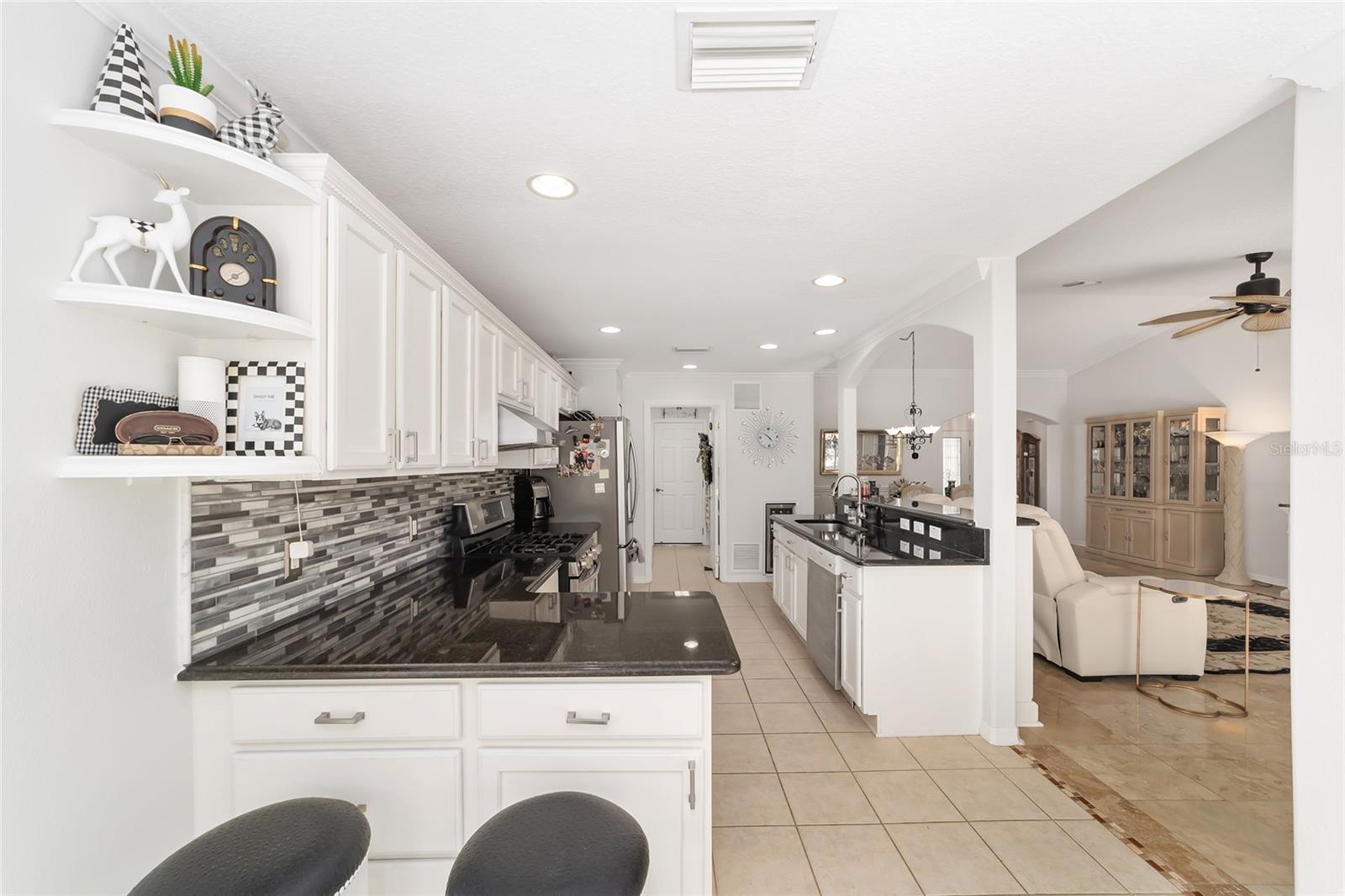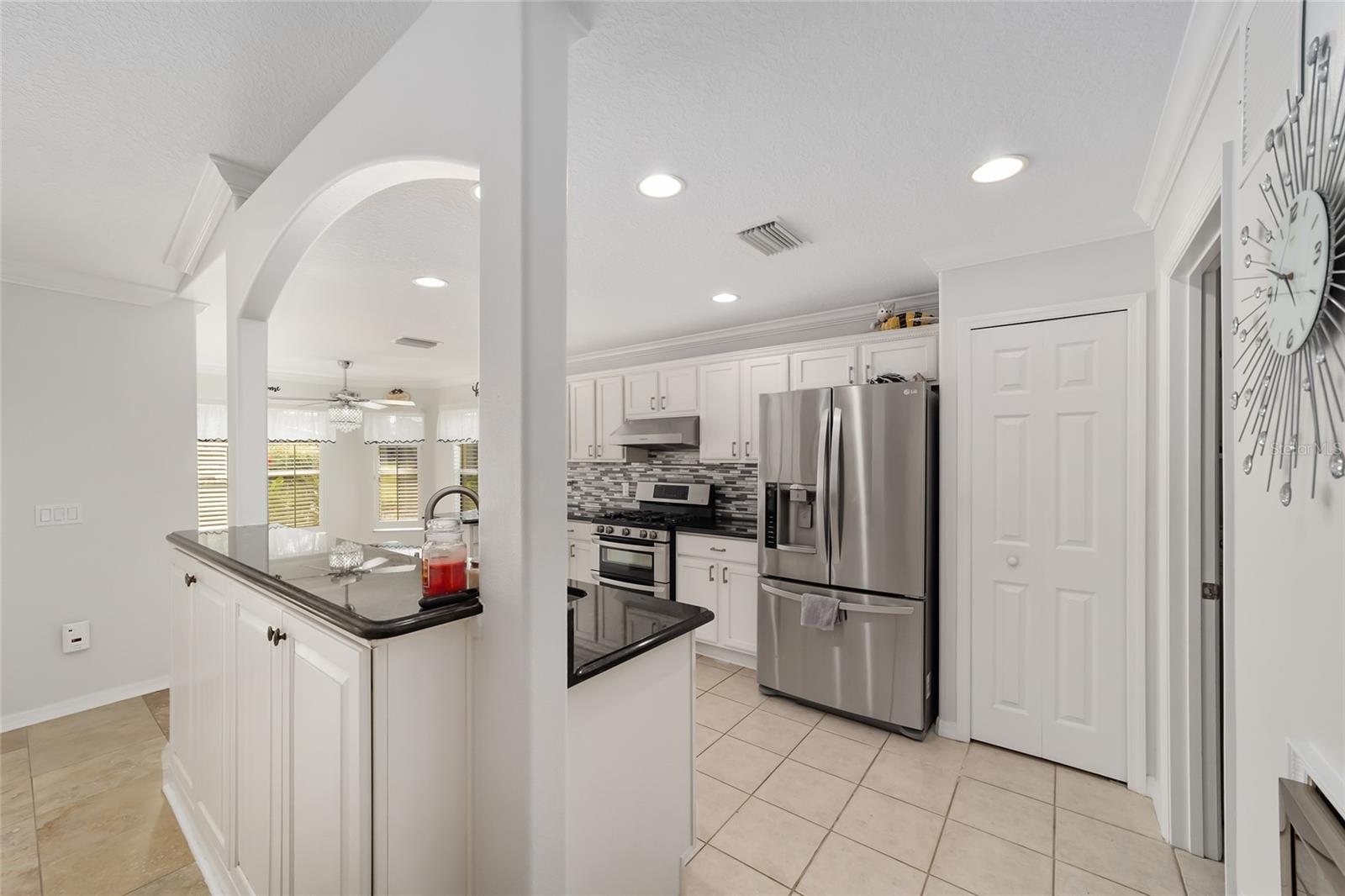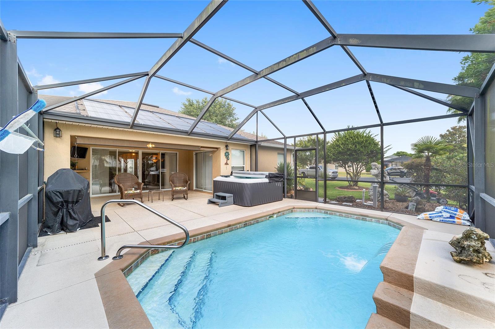 Agende uma exibição HOJE! Venha conhecer esta casa com piscina 3/2 bem conservada. A cozinha tem bancadas de granito, TONELADAS de armários, fogão a gás, refrigerador de vinho embutido. A entrada na casa começa com piso de travertino passando pelo hall de entrada, sala de jantar e sala de estar. Também tem molduras em toda a casa. O banheiro principal tem pia dupla com um lindo jardim e chuveiro. A vista da sala, quarto principal, cozinha e recanto é para a piscina de água salgada / aquecida por energia solar. Também tem uma banheira de hidromassagem na varanda. Muito lindo paisagismo no quintal. A casa fica em um terreno de esquina que leva a um beco sem saída. Condomínio fechado. Telhado (2007) Eletrodomésticos (2013) AC (2023) Painéis solares (2024) Termostato inteligente (opção controlada por Alexa) As taxas HOA cobrem: cabo Spectrum e internet, condomínio fechado com guarda, coleta de lixo e resíduos de quintal, corte de grama, afiação e limpeza e muitas comodidades para desfrutar: piscina, complexo de softball, quadras de tênis, quadras de pickleball, academia de ginástica e muitos outros. Esta é uma COMUNIDADE DE CAMPO DE GOLFE com Restaurante e Bar.