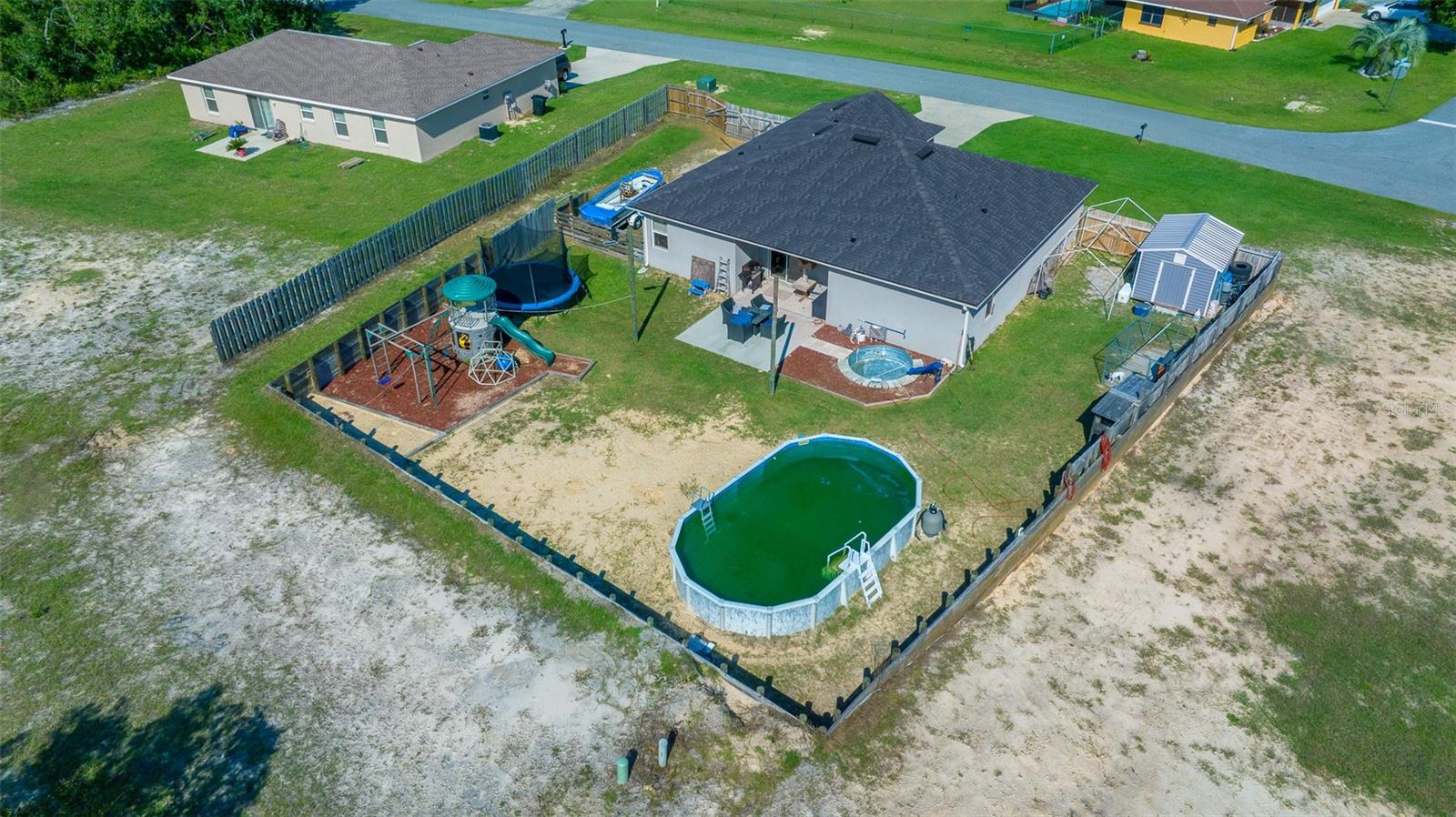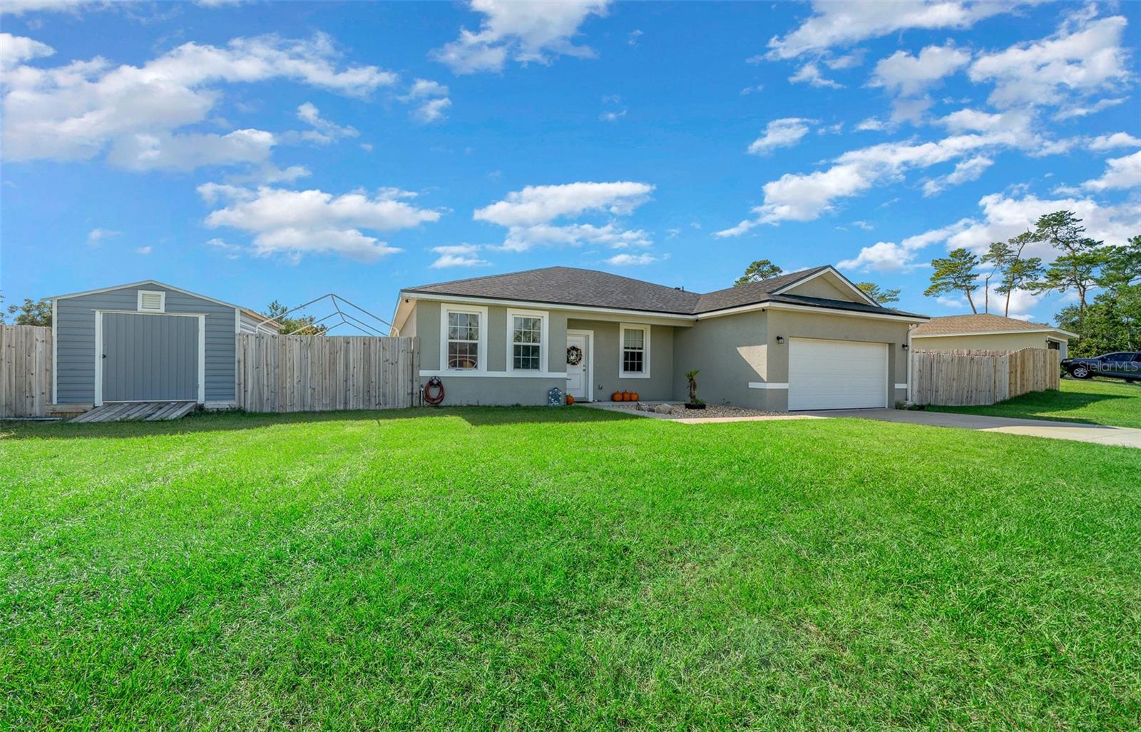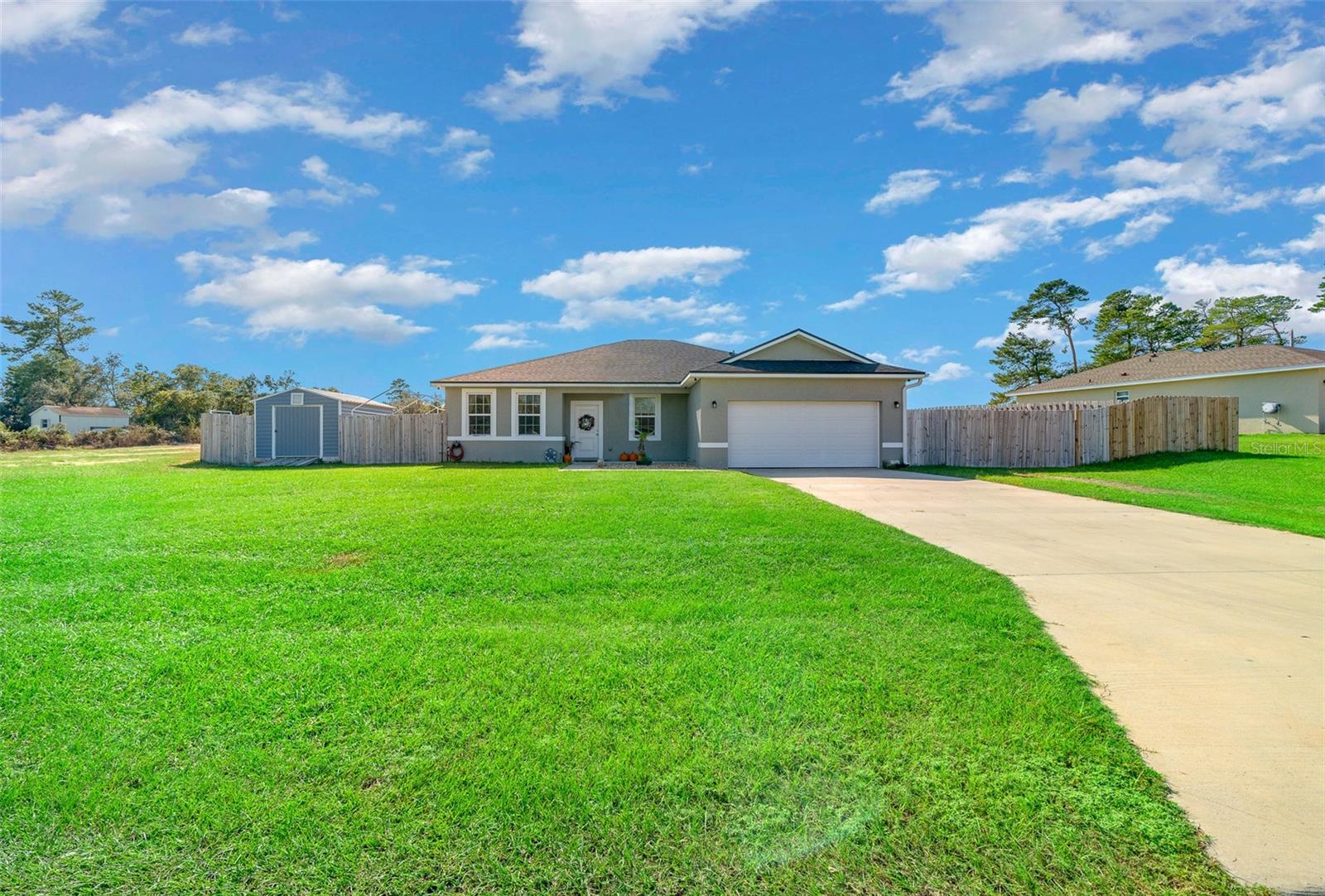 Impressionante casa de BLOCO e ESTUQUE com 4 camas e 3 banheiros em Marion Oaks. Esta casa unifamiliar lindamente trabalhada, construída em 2022, está situada no pitoresco bairro de Marion Oaks Unit 5. Uma entrada de concreto e uma passarela levam a uma entrada convidativa, acentuada por um charmoso jardim de pedras. No interior, você será recebido por pisos de CERÂMICA e TETOS ALTOS que acrescentam uma sensação de amplitude a toda a casa. A PLANTA ABERTA flui facilmente da sala de jantar, com sua grande janela, para a sala de estar e para a cozinha dos sonhos do chef. Com bancadas de GRANITO, eletrodomésticos de AÇO INOXIDÁVEL, uma ilha com balcão para café da manhã de 4 lugares e pia com torneira moderna, esta cozinha foi projetada para estilo e função. Ricos armários SOFT-CLOSE para café expresso e uma despensa oferecem amplo armazenamento, enquanto uma aconchegante copa perto das portas de vidro deslizantes convida você a começar o dia com uma vista. Saia para o seu quintal PRIVADO CERCADO, oferecendo total privacidade e espaço para relaxar ou se divertir. A varanda coberta e o pátio traseiro são perfeitos para grelhar ao ar livre e relaxar enquanto aprecia o pôr do sol na Flórida. Refresque-se na grande PISCINA acima do solo ou na menor piscina subterrânea, que também pode servir como lago. Também há espaço para estacionar e cercar seu barco ou veículos recreativos. O espaçoso QUARTO PRIMÁRIO é um refúgio à parte, com armários duplos e banheiro privativo com pias duplas com tampo de granito e box amplo. O segundo quarto também oferece banheiro privativo, pia de GRANITO, chuveiro/banheira combinados e closet, enquanto o terceiro e quarto quartos são de tamanho generoso com armários embutidos e compartilham um elegante terceiro banheiro com granito bancadas e uma combinação de chuveiro/banheira de azulejos também. Para maior comodidade, esta casa inclui uma LAVANDERIA INTERIOR com arrumação extra e uma GARAGEM PARA 2 CARROS com pé direito alto. O melhor de tudo é que com a construção concluída em abril de 2022, o telhado, o tanque de água quente e o sistema HVAC são todos novos, proporcionando tranquilidade nos próximos anos. Bônus: Um lote próximo ao imóvel está disponível para compra à parte, oferecendo potenciais oportunidades de expansão.