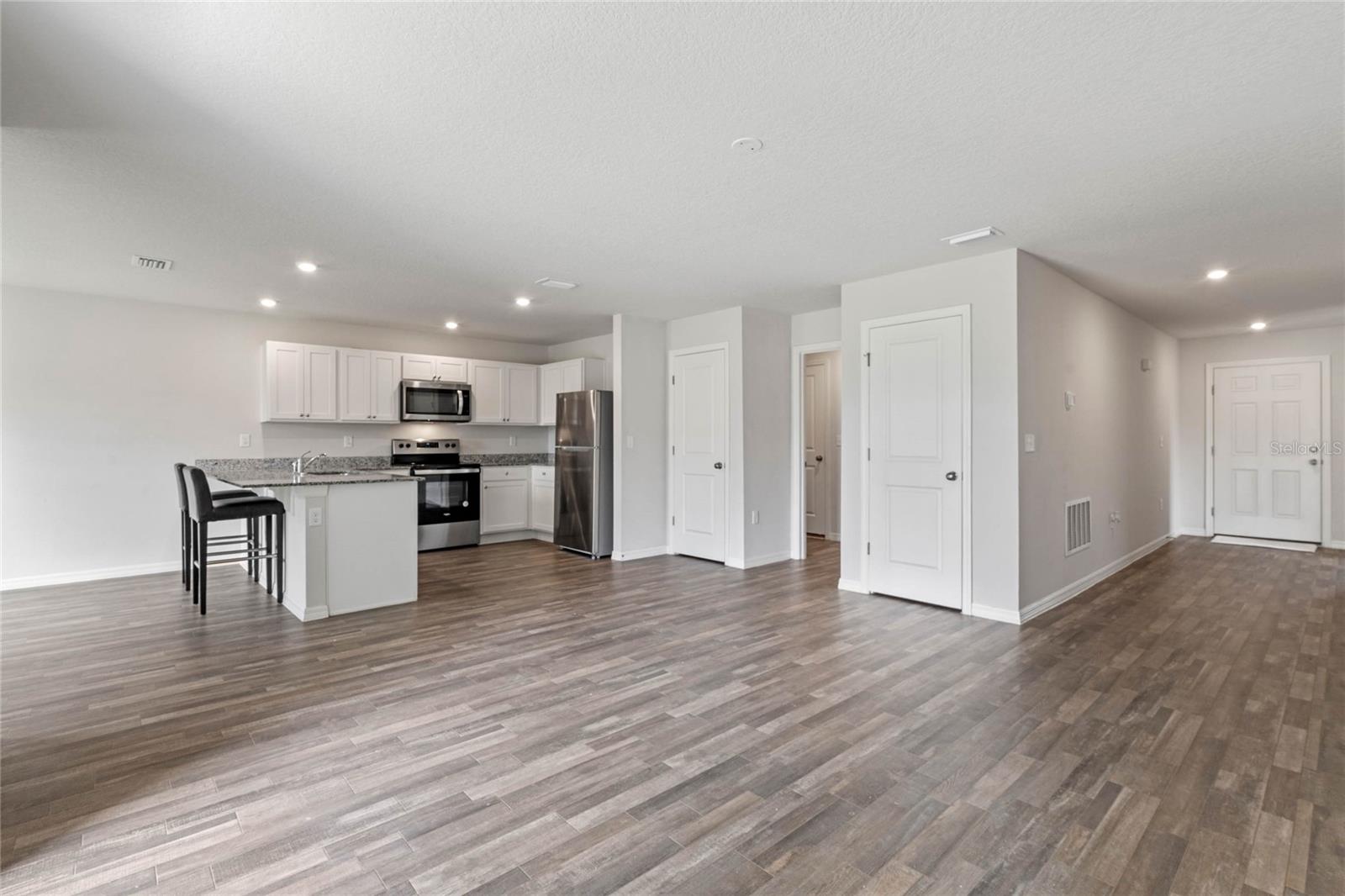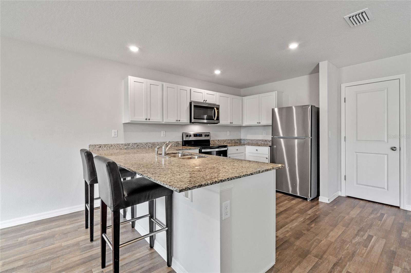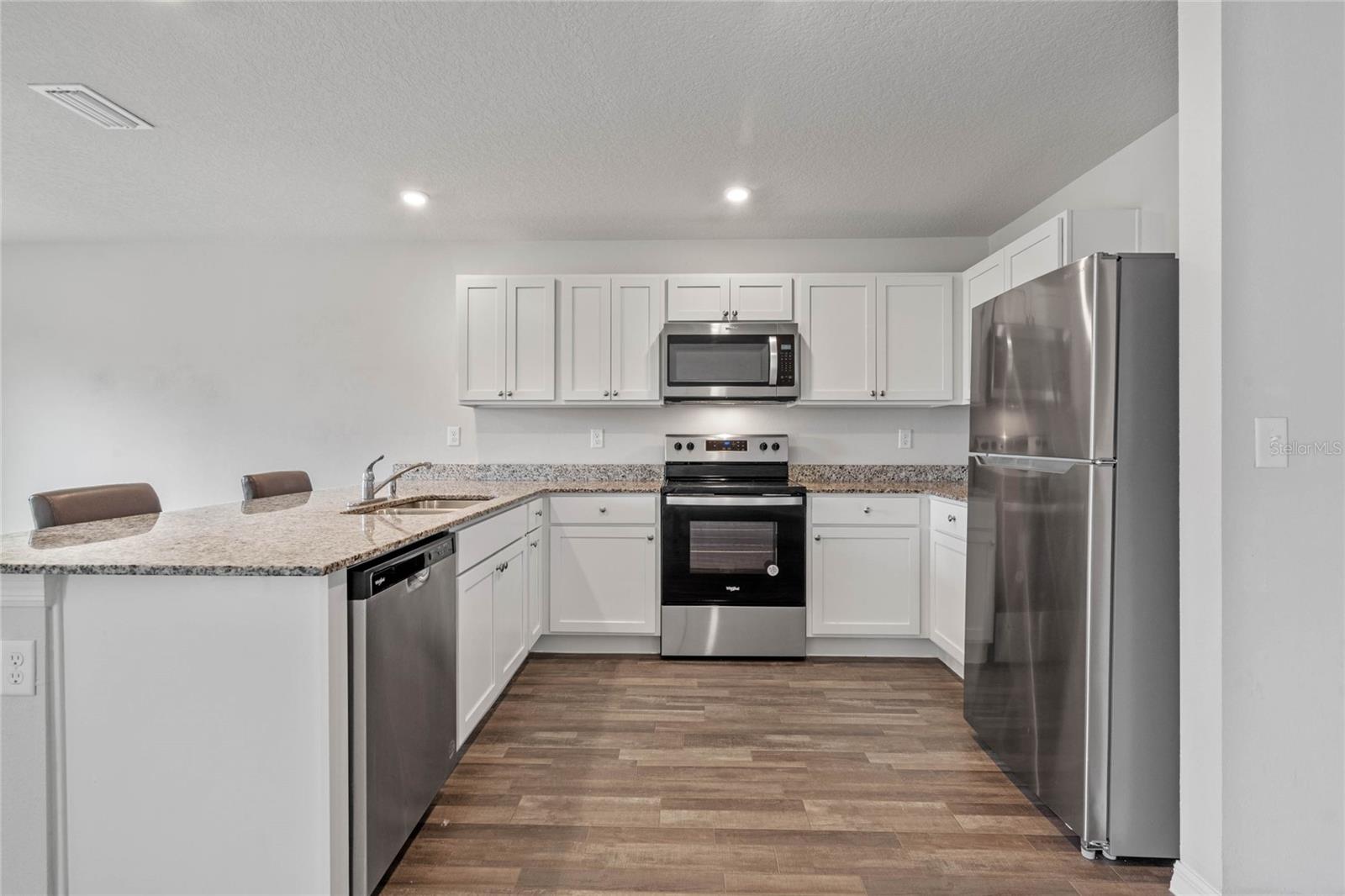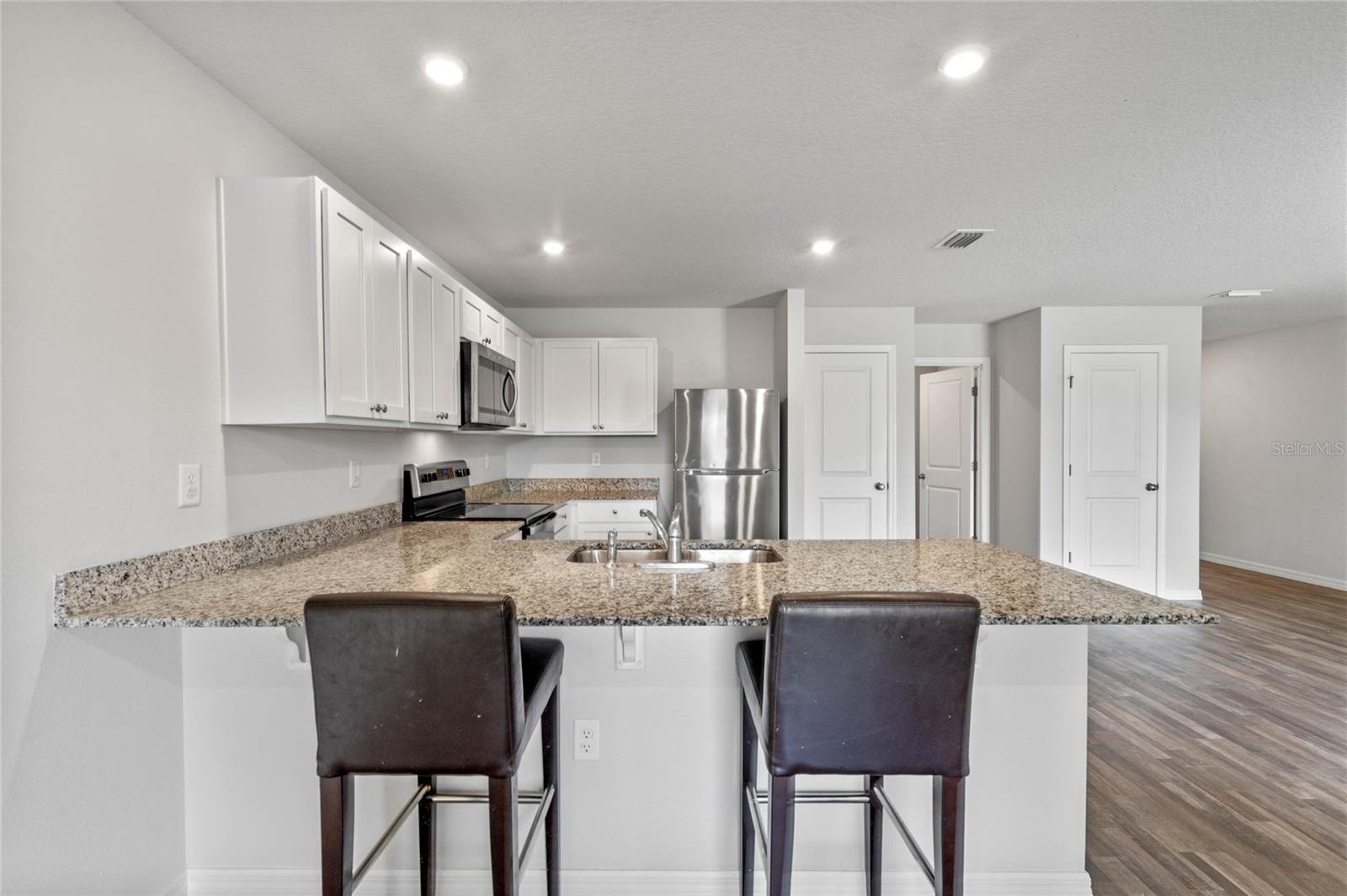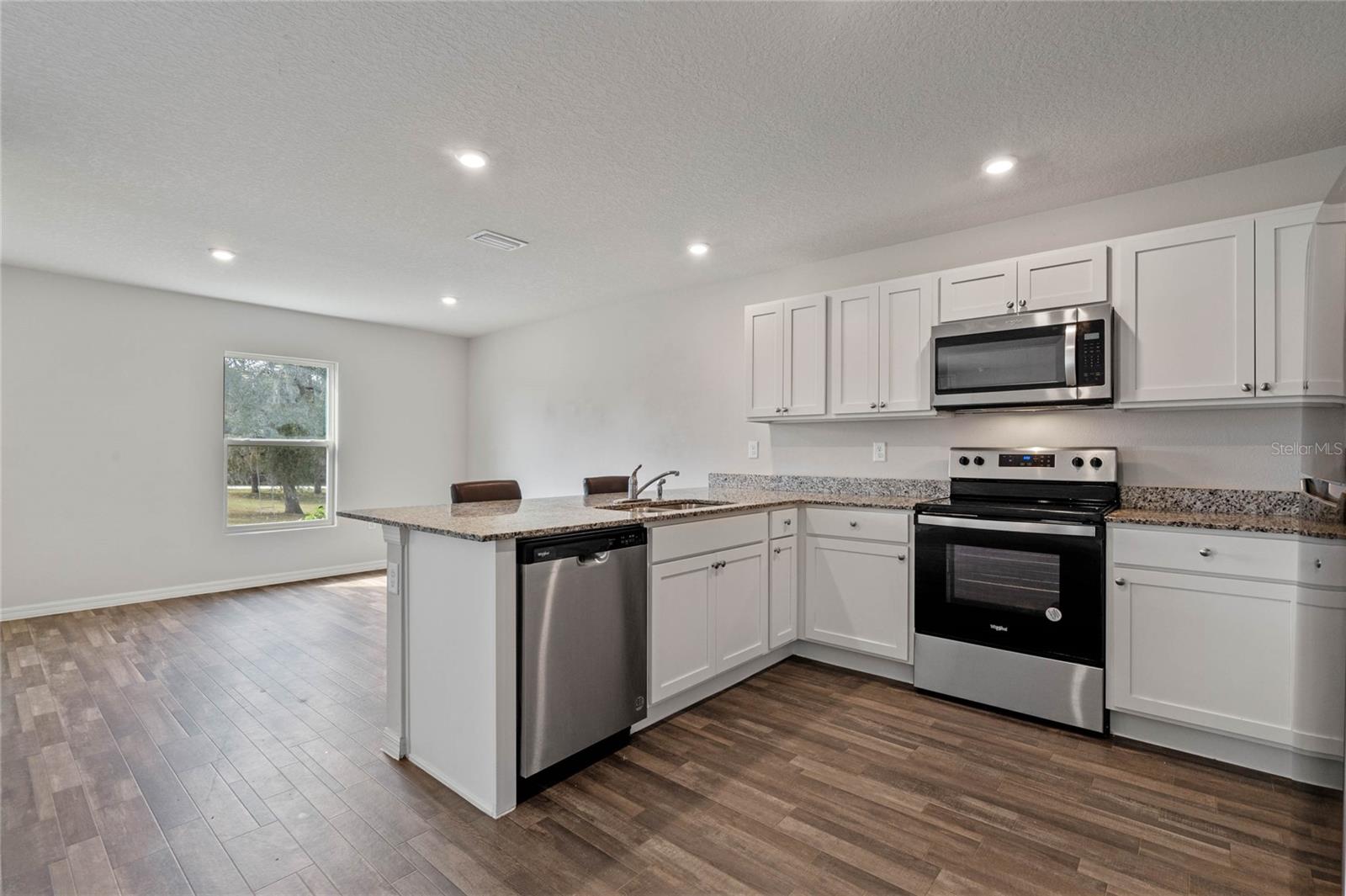 Descubra esta casa quase nova de 3 quartos e 2 banheiros, Prescott Model Home, oferecendo conforto e conveniência modernos em quase 1/4 de um acre. Com pouco menos de 1.500 pés quadrados de espaço de vida cuidadosamente projetado, esta casa possui um layout de conceito aberto que conecta perfeitamente as áreas de estar, restaurantes e cozinha. A cozinha brilha com armários deslumbrantes, bancadas em granito e utensílios de aço inoxidável, incluindo um alcance com capuz de microondas e lavador de louça. A suíte primária possui um banho privativo com pia de vaidade dupla e um closet. Dois quartos adicionais e um banheiro secundário completo completam o interior. Aproveite a paz de uma comunidade tranquila e amigável, sem taxas de HOA ou CDD, a poucos minutos do centro comunitário, lojas de conveniência e lojas locais. Uma garagem para 2 carros e um amplo espaço ao ar livre fazem deste o lugar perfeito para chamar de lar!