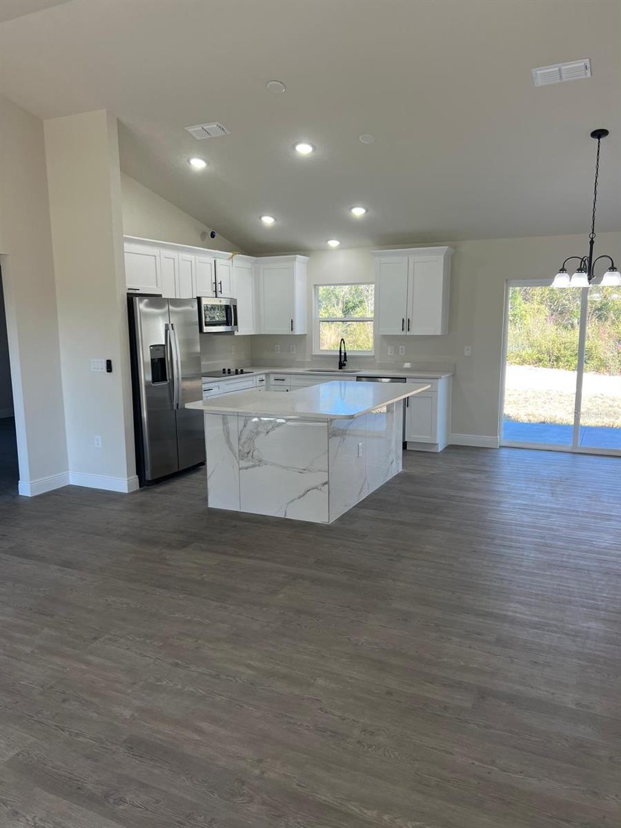 0,34 hectares, 3 quartos, 2 banheiros e 2 garagens. Esta casa possui uma cozinha linda com muitos recursos excelentes, incluindo bancadas de quartzo de 1 1/4, armários de parede de madeira maciça de 36 polegadas com dobradiças macias, despensa e parte inferior completa com bastante espaço para preparar refeições. O quarto principal inclui banheiro privativo com lindo porcelanato, piso de pedra e closet. Teto abobadado na área de estar e piso de tábuas vinílicas em toda a casa. Aproveite o quintal com uma pequena varanda coberta, perfeita para entreter sua família. A única família está localizada na desejável área SW Ocala, perto de escolas I-75, hospitais e shopping center prefeito. NÃO HOA. Comunidade de restrição profunda. Venha dar uma olhada e compre antes que acabe. As fotos da casa são da maquete e não da casa neste local