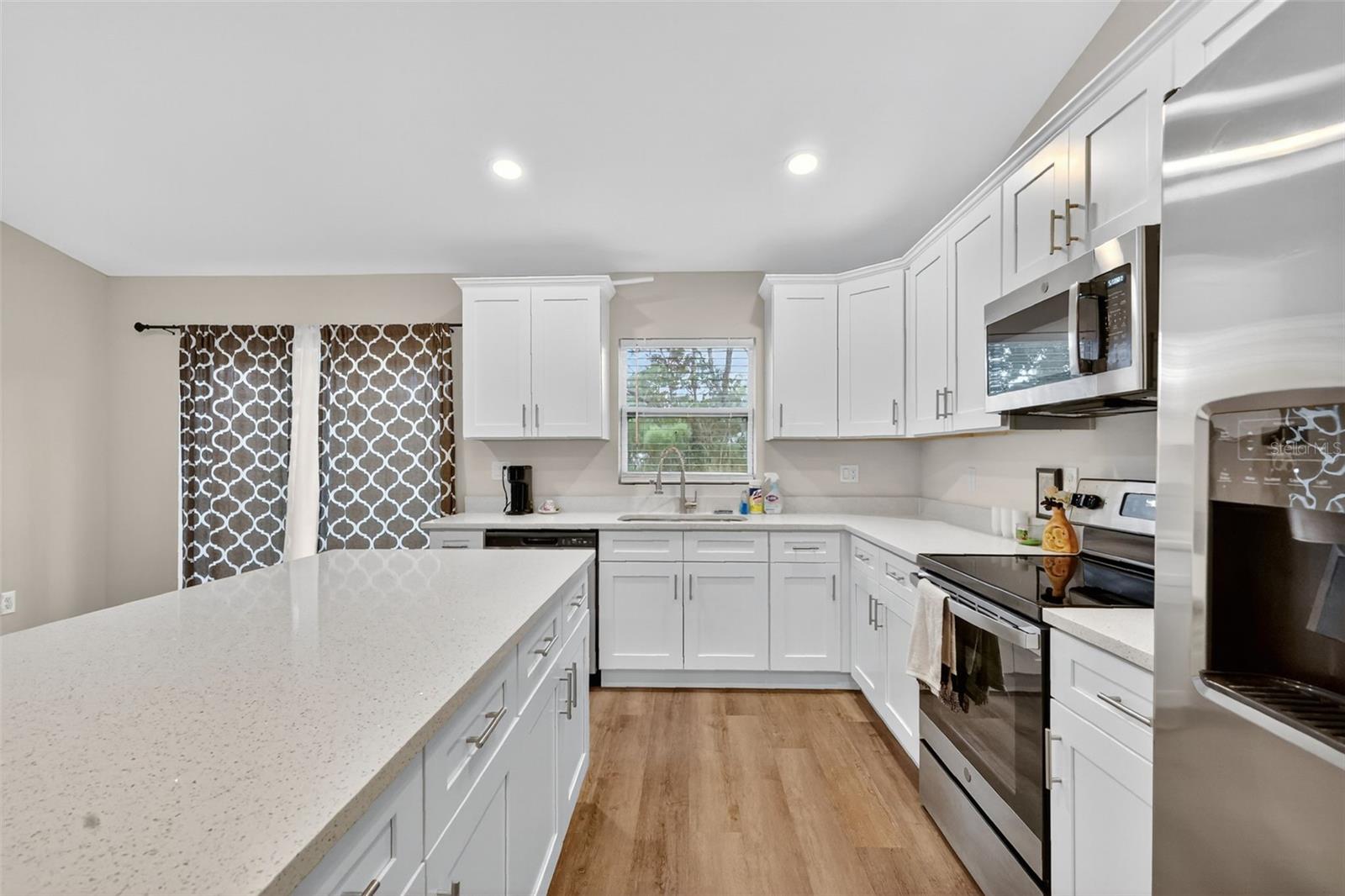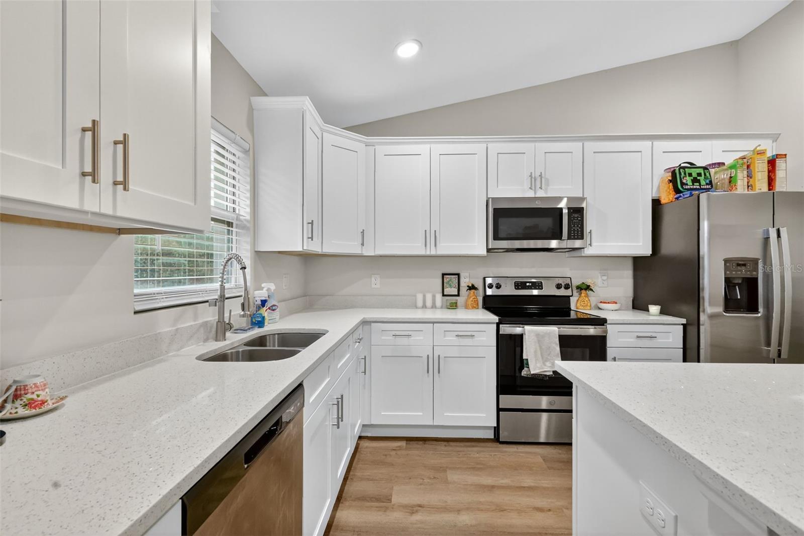 A qualidade acessível é perfeitamente combinada nesta casa bem equipada. Os recursos incluem um telhado de telha arquitetônica e piso LVP por toda parte, complementados por rodapés atualizados de 5 polegadas. A cozinha e os banheiros possuem armários de agitadores brancos com dobradiças de fechamento suaves e balcões de quartzo. A Ilha da Cozinha oferece assentos e tem vista para os espaços de jantar e convivência. Um pacote completo de aparelhos de aço inoxidável está incluído. Aproveite a conveniência dos ventiladores e persianas incluídos em todos os quartos. O banheiro principal apresenta vaidades duplas e um closet de grandes dimensões. O layout inclui uma planta baixa, uma entrada de garagem no espaço e uma sala de serviços públicos interna. Uma unidade A/C de primeira linha também está incluída.