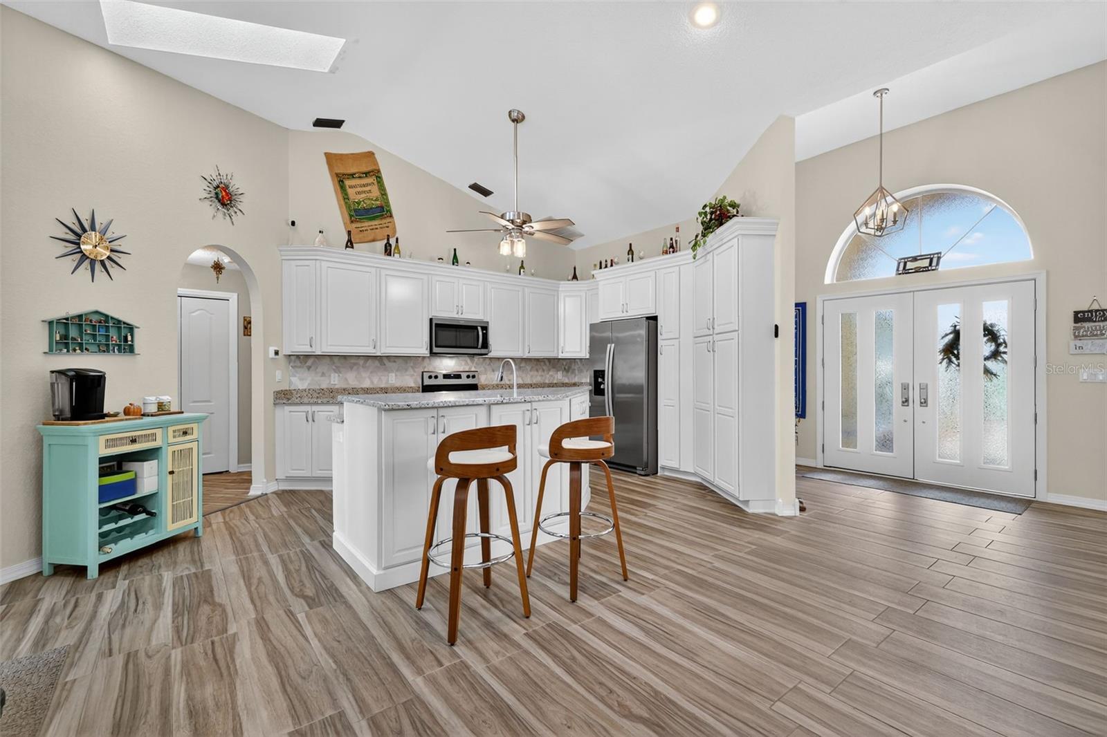 BEM A TEMPO DO NATAL! CREDOR PREFERIDO DOS VENDEDORES QUE OFERECE ATÉ 1% DO PREÇO DE LISTA (ATÉ US$ 3.450) COMO CRÉDITO DE CREDOR PARA COMPRADORES BEM QUALIFICADOS. Bem-vindo a esta casa imaculada de 3 quartos e 2 banheiros localizada em 14 SE 62nd Terrace em Ocala. Perto de tudo, lojas, restaurantes ,escolas e centro de Ocala a apenas 15 minutos de distância. Situado em um lote espaçoso de 0,36 acres. Esta casa lindamente conservada oferece a combinação perfeita de conforto e funcionalidade. A espaçosa casa de 3 quartos e 2 banheiros está repleta de atualizações e detalhes atenciosos. Uma porta frontal personalizada dá as boas-vindas à planta baixa aberta, com lindo piso de porcelanato nas principais áreas de estar, cozinha, lavanderia e piso laminado nos quartos. A cozinha do chef possui armários personalizados, eletrodomésticos de aço inoxidável, despensa para armazenamento extra e bancadas de granito com muito espaço no balcão e design aberto - flui perfeitamente para uma grande sala iluminada com tetos de catedral. A linda Suíte Primária é enorme com janela tipo bay window. O closet e o armário de roupa de cama ficam do lado de fora do banheiro principal. A ampla suíte master é um verdadeiro retiro. Com banheira de jardim e pia dupla. Outros 2 quartos estão do outro lado da casa com banheiro de hóspedes. A lavanderia fica ao lado da cozinha e vem com lavadora e secadora. As características adicionais incluem uma relaxante varanda coberta, ótima para o café da manhã ou para se reunir com a família. Esta casa totalmente cercada oferece a combinação perfeita de elegância, conforto e privacidade. Não espere para agendar sua exibição privada hoje! Telhado e claraboias 2019, AC 2022, Cozinha 2020.
