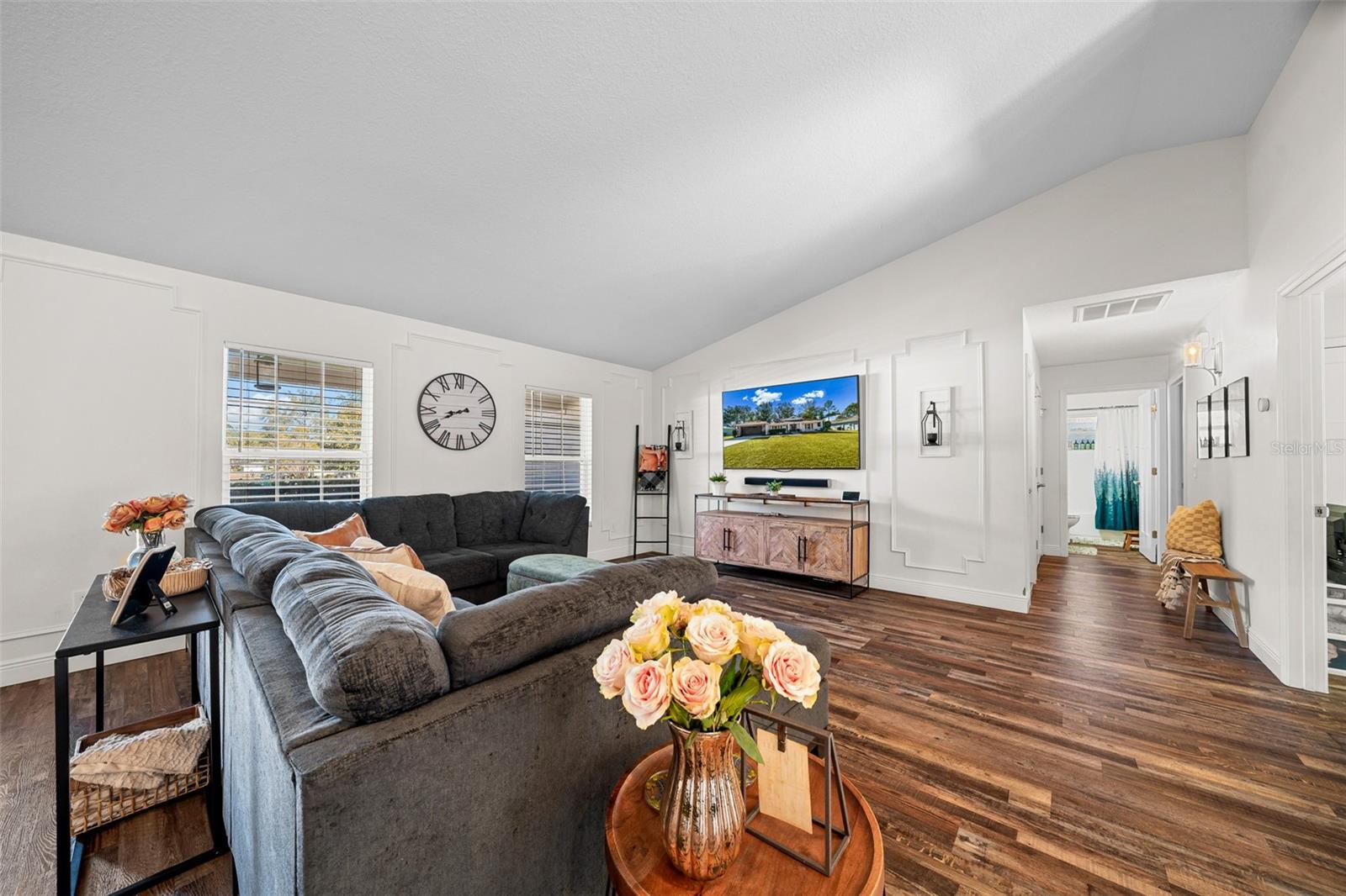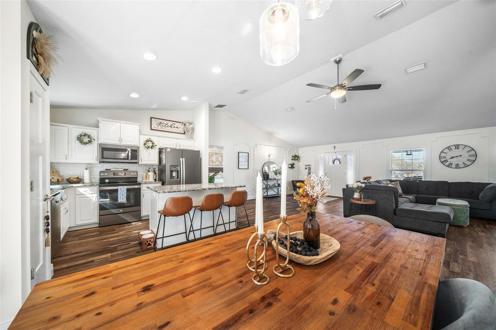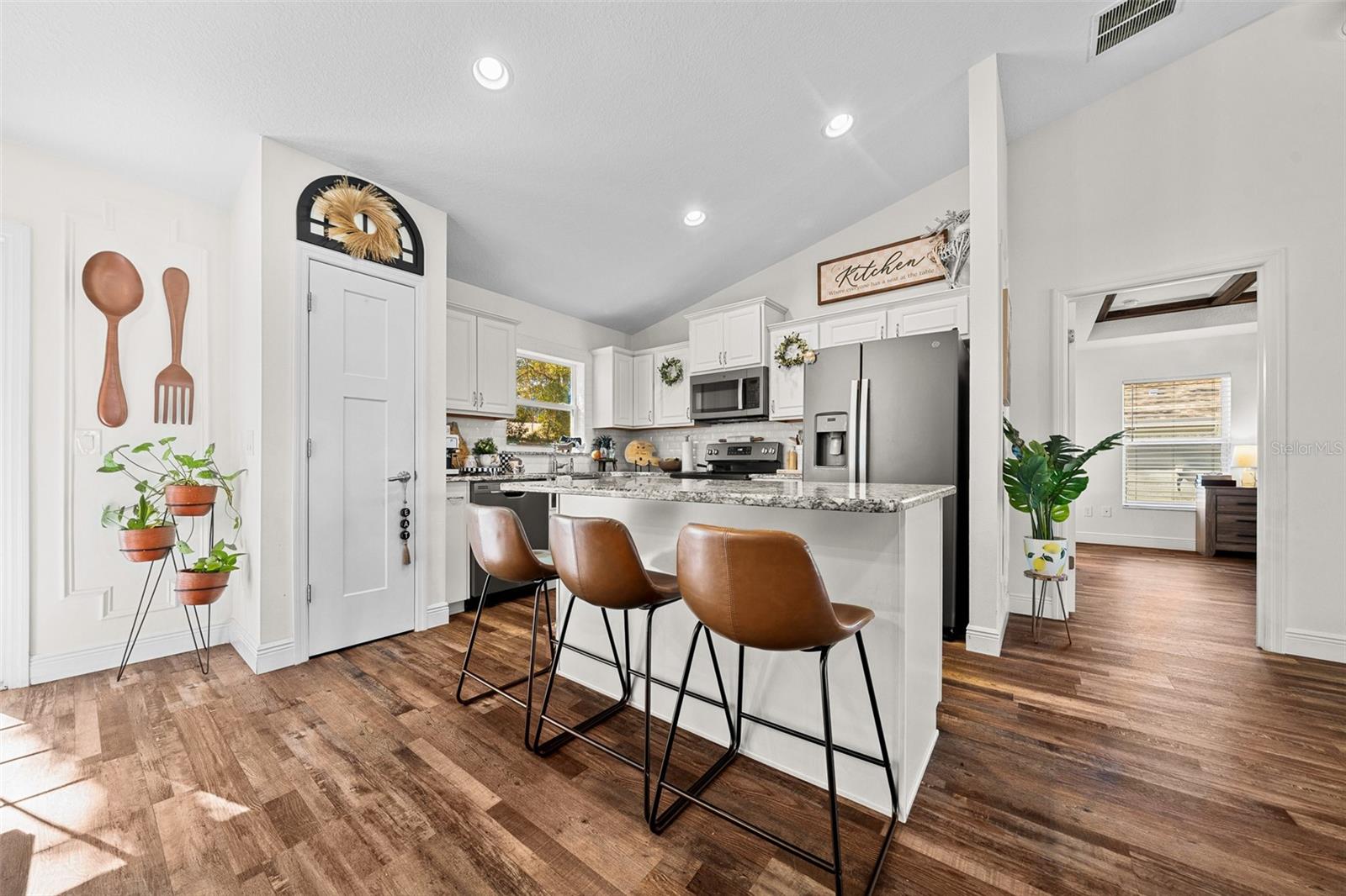 Esta casa lindamente conservada parece um modelo e está realmente pronta para morar. Com 3 quartos e 2 banheiros, o layout aberto é aprimorado pelo elegante piso sem carpete. A cozinha aberta Bright tem balcões de granito, despensa e armário removível de temperos personalizado. A espaçosa suíte principal possui tetos elegantes acentuados com impressionantes trabalhos em madeira personalizados, adicionando calor e personalidade. Impecavelmente decorada e cuidadosamente projetada, esta casa oferece conforto moderno, estilo atemporal e orgulho de propriedade a cada passo.