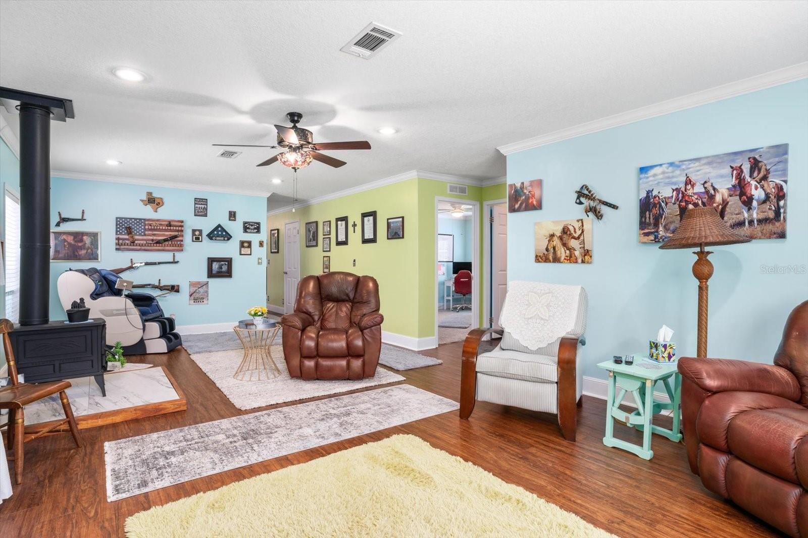 Situada em um ambiente privado, mas convenientemente perto de escolas e lojas, esta espetacular casa pré-fabricada com TELHADO NOVO está localizada em 3 hectares exuberantes. A propriedade é adornada com paisagismo abundante e possui uma rampa acessível para cadeiras de rodas, grades de vinil, tetos altos e elegante e luxuoso piso de pranchas de vinil complementado por carpete na sala de estar e nos quartos, sancas amplas e rodapés de 5 1/4 "por toda parte. Novos ventiladores de teto com luzes Tiffany estão localizados na casa. A sala familiar possui fogão a lenha (instalado em 2022) e equipada com armários embutidos de madeira. eletrodomésticos de última geração, geladeira nova (2023), fogão de indução (2024) e área de bar. A suíte master é um retiro com closets, novas pias duplas e torneiras separadas por armários. , uma banheira de imersão e um box amplo com azulejos de cerâmica. A parte de trás da casa se abre para uma impressionante varanda coberta de 14 pés x 33 pés com vista para uma grande cerca cercada. quintal A propriedade possui uma espaçosa garagem individual de 31 pés x 40 pés com três baias e proslats instalados e inclui uma oficina separada e considerável com ar condicionado. A residência também está equipada com um gerador Generac para toda a casa que possui um tanque de propano enterrado exclusivo. Além disso, ele oferece conexões para RV de 50 A e 30 A que foram permitidas e podem acomodar até três locais individuais. Alugue as vagas para uma renda extra!!! A casa também conta com rodapé novo com 2 portas de acesso, dutos novos, lavadora/secadora mais recente (2022). Novas persianas personalizadas acabam de ser adicionadas à cozinha, sala de estar e porta de correr. Esta propriedade é imperdível para apreciar verdadeiramente. O Vendedor fornecerá uma garantia doméstica de um ano aos Compradores.