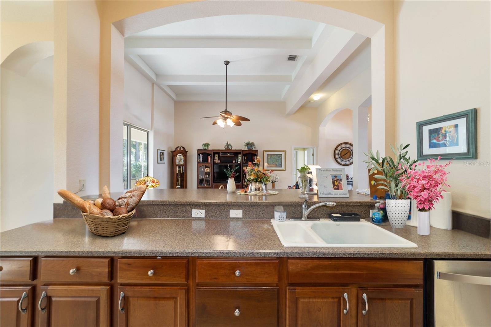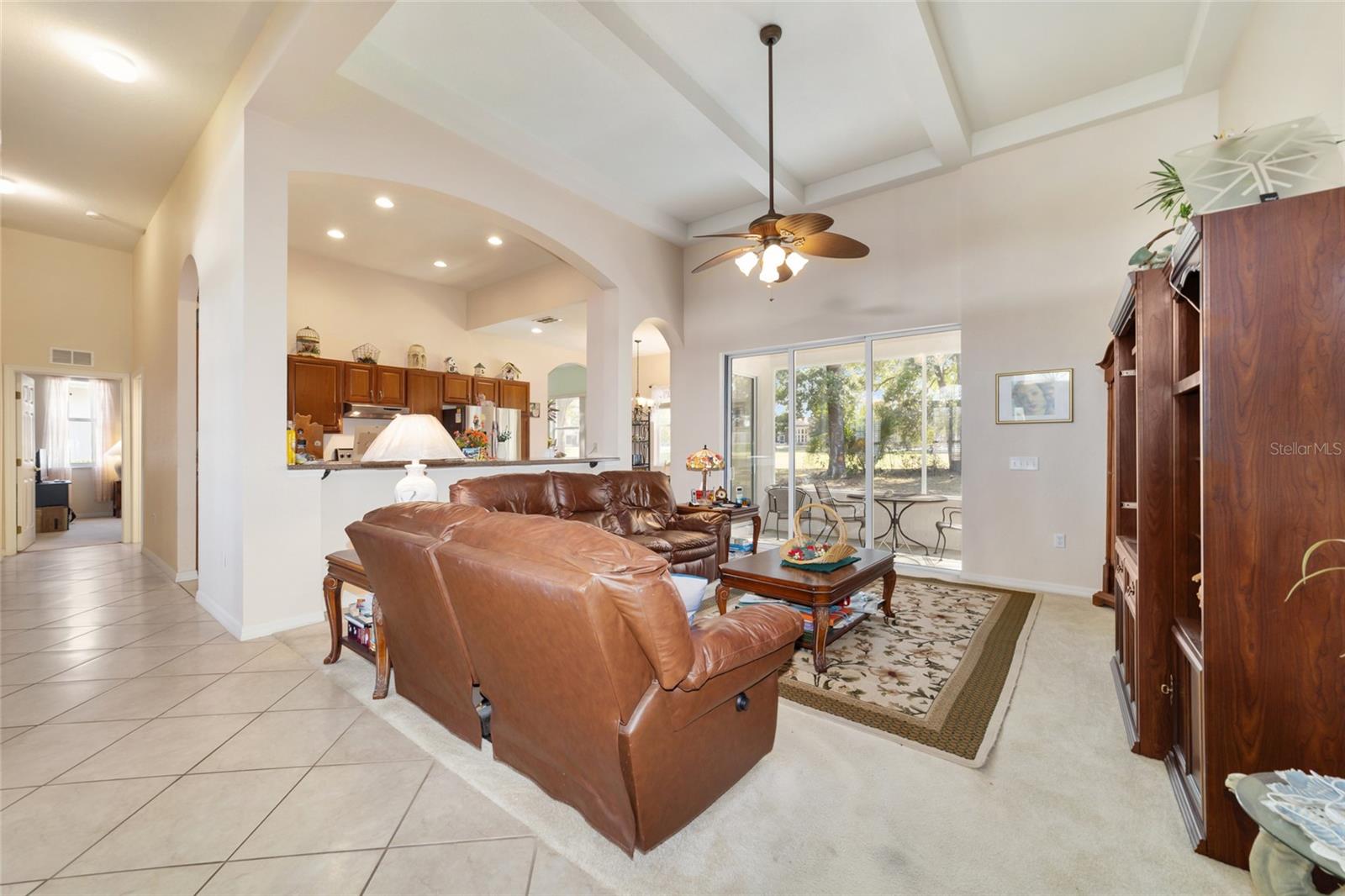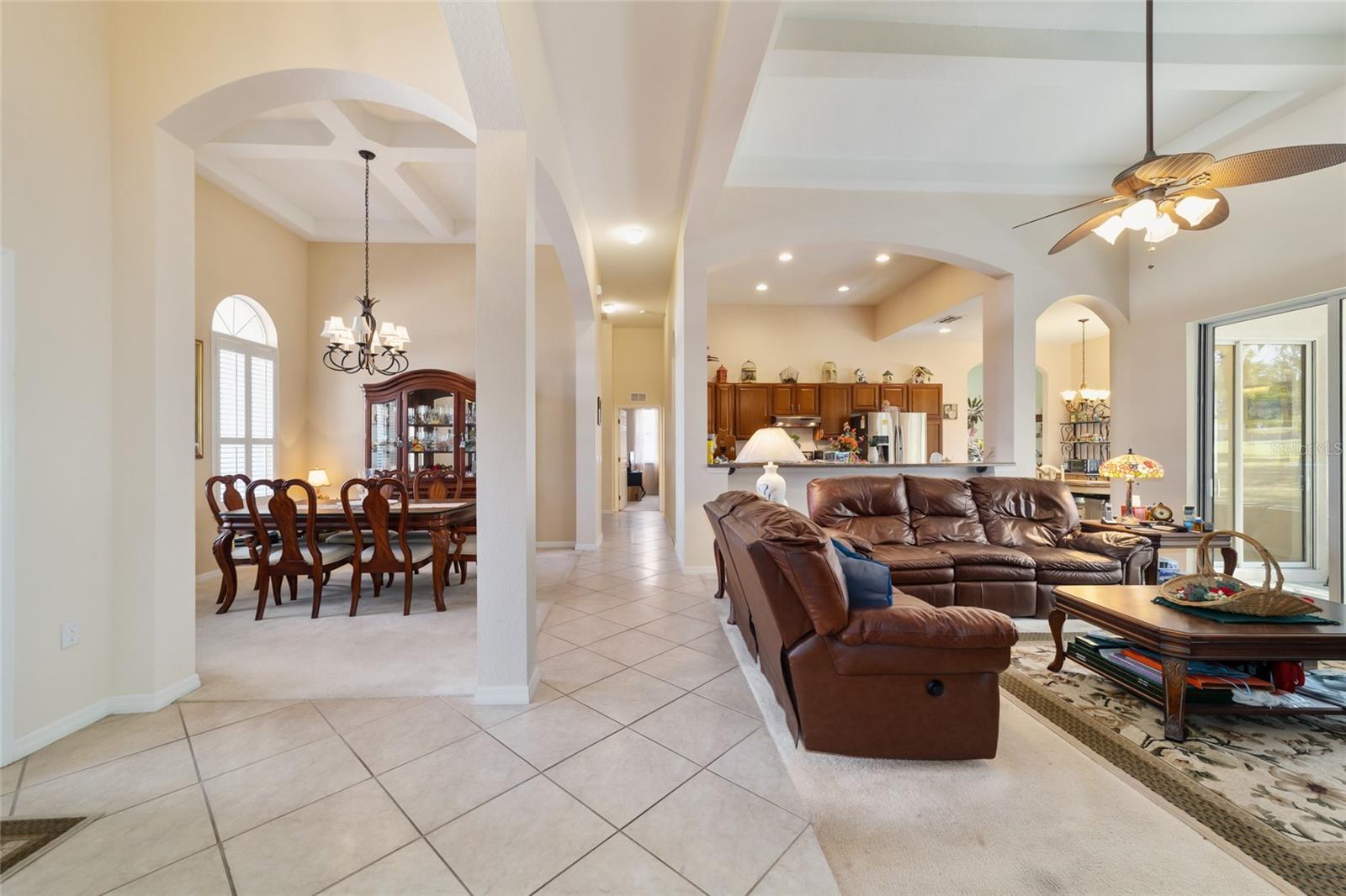 Uma ou mais fotos foram virtualmente encenadas. Bem-vindo ao Crescent Oaks em Oak Run, uma comunidade procurada por mais de 55 anos, onde o luxo encontra o estilo de vida! Esta casa construída sob medida possui três quartos espaçosos, dois banheiros e 2.237 pés quadrados de espaço meticulosamente projetado, ideal para relaxamento e entretenimento. Ao passar pelas portas da frente, você é saudado por tetos altos e uma abundância de luz natural que entra através de inúmeras janelas. A sala de estar aberta flui perfeitamente para a varanda, oferecendo belas vistas do 12º fairway do Royal Oaks Golf Course. Uma sala de jantar formal fica ao lado da sala de estar e da cozinha, completa com elegantes venezianas. A cozinha, com uma grande ilha, tem vista para a área de estar e está equipada com armários em cerejeira e eletrodomésticos de primeira linha, incluindo lava-louças, fogão, exaustor, geladeira, lavadora e secadora. Projetada pensando na privacidade, a planta dividida apresenta um cômodo bônus ao lado da cozinha, perfeito para um escritório ou marquise. O luxuoso quarto principal oferece portas de vidro deslizantes para a varanda, closet e banheiro privativo com pias duplas, penteadeiras de cerejeira, bancadas de mármore cultivado, banheira de imersão separada e box amplo. As atualizações recentes incluem um novo telhado em 2023 e um novo triturador de lixo. A casa também possui calhas com proteção contra chuva. Os moradores de Oak Run desfrutam de comodidades incríveis, como três clubhouses, um campo de golfe de 18 buracos, pickleball, bocha, tênis, shuffleboard, bilhar, academias de ginástica e seis piscinas. Jantar é uma delícia no restaurante e bar recém-renovado, completo com um pátio para aproveitar o clima ensolarado da Flórida. Esta casa oferece a combinação perfeita de conforto e vida em estilo resort! Todas as ofertas serão consideradas.