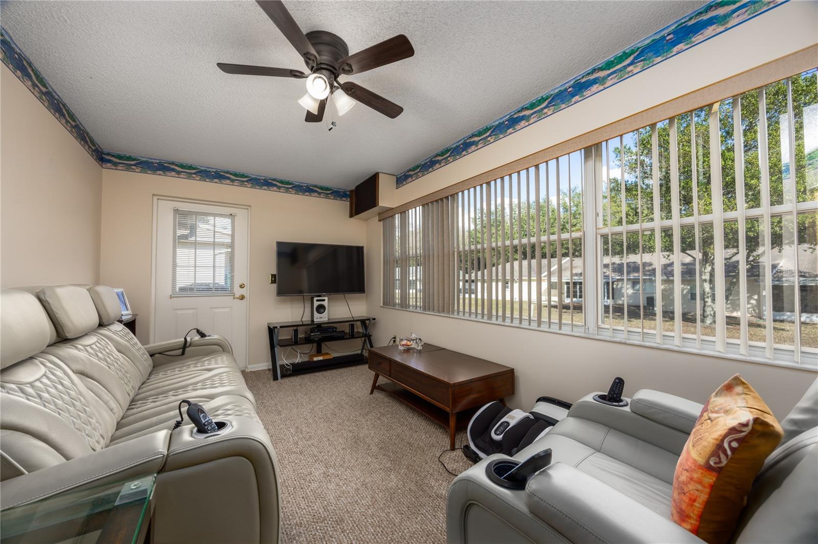 Bem -vindo a esta casa de concreto de dois campos de duas camas de duas camas de duas camas, na comunidade desejável de On Top of the World. Esta casa vem com todos os móveis de última geração e US $ 17.000 em painéis solares que são pagos. Caminhando pela porta da frente, você verá uma ampla área de estar/jantar com piso de madeira sofisticado. A cozinha possui armários atualizados, bancadas em granito e utensílios de aço inoxidável. Esta casa também possui pisos de madeira durante a maior parte do espaço, com ladrilhos nos banheiros. A combinação de sala de estar e da família e uma bela sala da Flórida estão na parte traseira da casa. O espaçoso quarto primário inclui um banheiro com pias e um closet espaçoso. O segundo quarto e o banheiro completo do Hall podem ser fechados para a privacidade dos hóspedes ou como um escritório em casa. Através da sala de jantar está a entrada na espaçosa garagem de 1.5 carros que possui a lavadora e a secadora. A taxa mensal do HOA inclui cabo básico, manutenção externa, portões guardados 24/7 (3) e todas as comodidades que Otow tem a oferecer: natação, tênis, aulas de fitness, pickleball, arco e flecha, bilhar, softbol, mais de 175 clubes residentes, residentes, Aulas, carrinho de golfe/caminhada/ciclovias e muito mais! Uma comunidade de carrinhos de golfe com acesso a três shopping centers e vários restaurantes.
