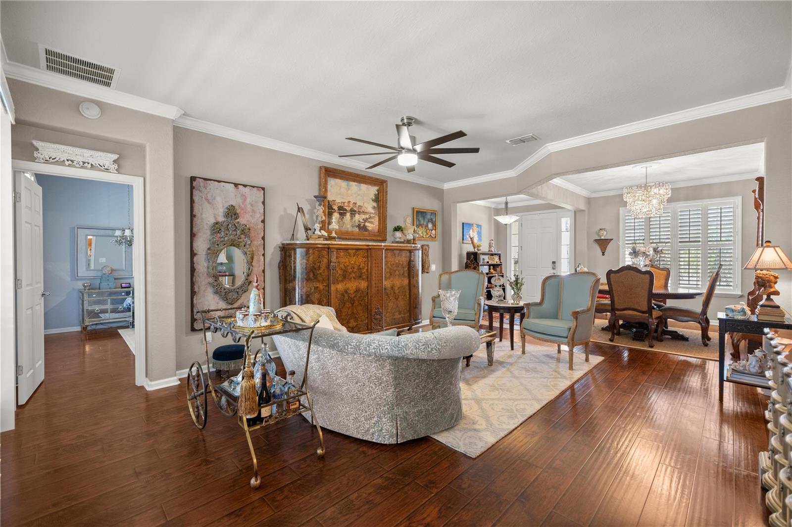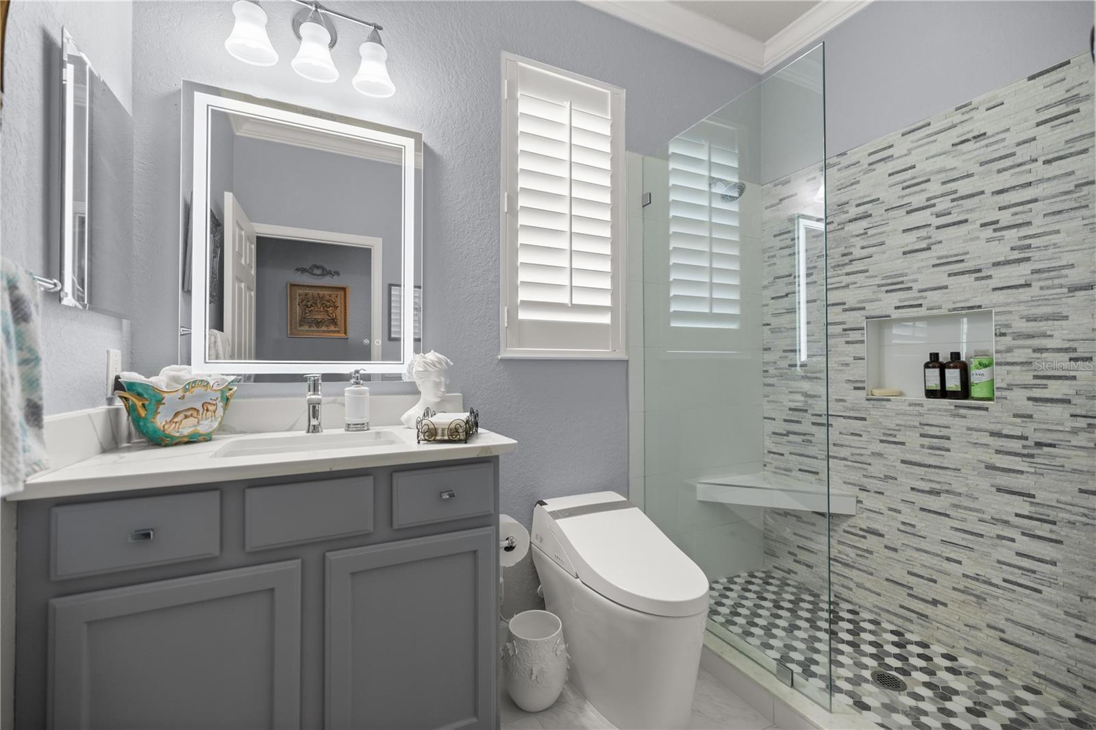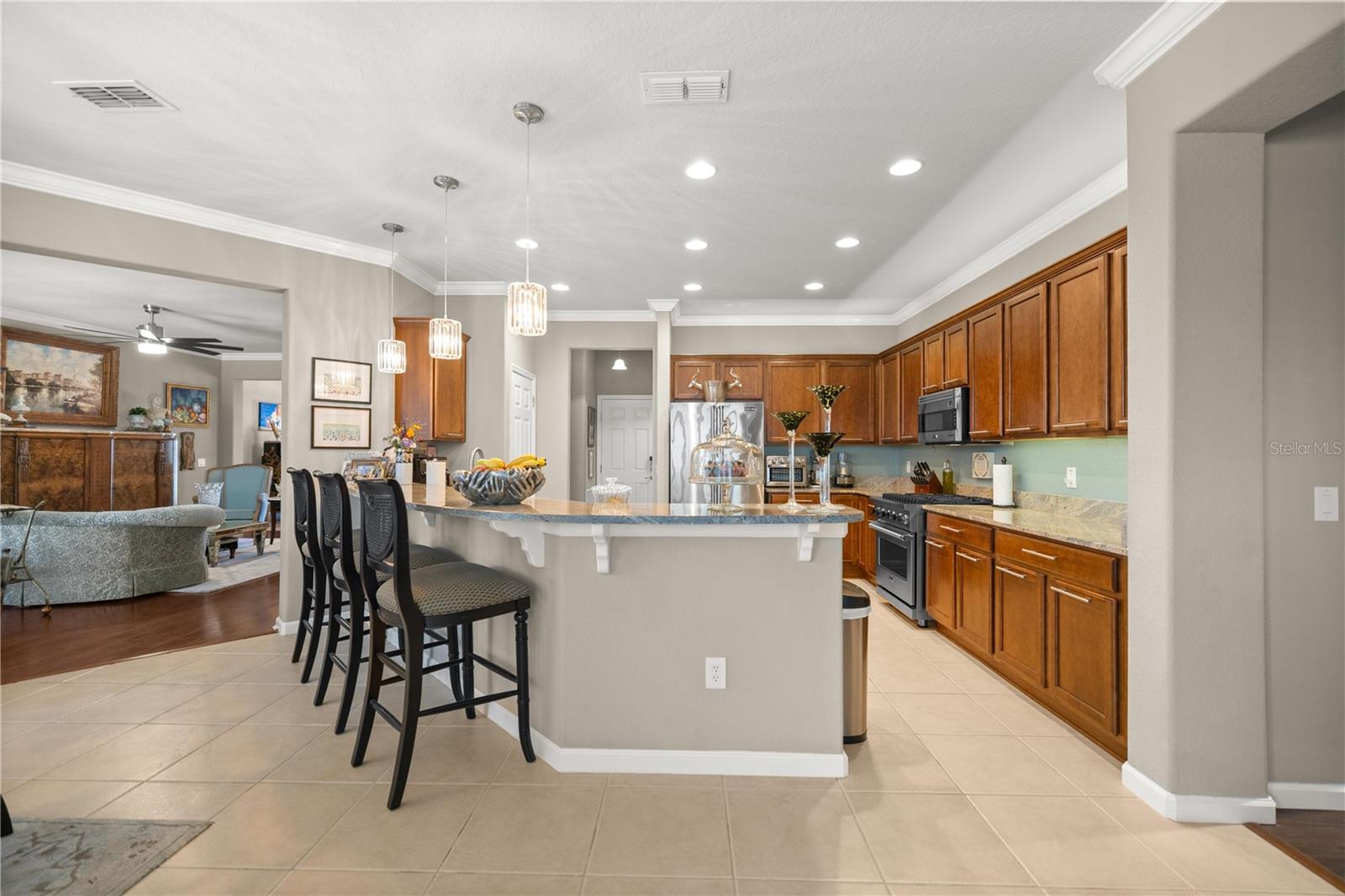 Bem-vindo a esta casa impressionante e pronta para se mover, situada em uma das mais procuradas comunidades de mais de 55 +, Stone Creek, de Del Webb. Esta residência lindamente atualizada de 3 quartos e 2 banheiros combina conforto, estilo e ideal viva de baixa manutenção para quem procura um estilo de vida vibrante e ativo com conveniências modernas. Entre para descobrir um layout de conceito aberto com luz natural abundante, acabamentos sofisticados e atualizações atenciosas por toda parte. A cozinha totalmente remodelada apresenta atualizações elegantes, utensílios viking, bancadas de granito impressionantes e um espaçoso bar de cozinha, perfeito para entretenimento e jantar casual. A suíte primária é um retiro pacífico com um espaçoso closet e um banheiro privativo, semelhante a um spa, com um chuveiro remodelado, uma vaidade dupla com bancadas de granito luxuosas e um novo banheiro/bidê de alimentação atualizado. Dois quartos adicionais oferecem amplo espaço para os hóspedes, um escritório em casa ou hobbies, e o banheiro de hóspedes foi completamente remodelado com um banheiro/bidê de alimentação. As janelas e duas portas de vidro deslizantes têm belas persianas atualizadas. Novos recursos de iluminação de luxo estão em toda a casa. Aproveite o ar livre do seu quintal privado e de baixa manutenção, com um alpendre vertical e um belo pátio traseiro feito com pavimentadoras. A casa também inclui uma garagem de 2 carros com novos pisos epóxi, uma porta de garagem de tela, um espaço de carrinho de golfe, um sistema HVAC mais recente e um telhado mais recente. Localizado em uma comunidade amigável, fechada e de 55 anos, que oferece comodidades como golfe, clube, duas piscinas, fitness center, atividades sociais, basquete, pickleball, tênis, shuffleboard, spa/banheira de hidromassagem e trilhas. Experimente um estilo de vida ativo em uma comunidade acolhedora. Perto de compras, refeições e instalações médicas, esta casa oferece o melhor da conveniência e da vida comunitária.