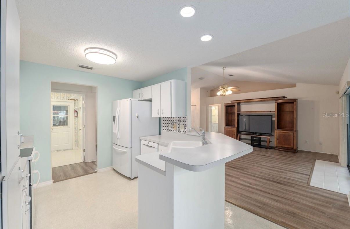 Encantadora casa 3BR/2BA no Marco Polo Village com mais de 55 anos em um espaçoso terreno de esquina de 0,65 acres. Construída em 1999, esta casa de 1.734 pés quadrados apresenta novo piso de pranchas de vinil, tetos abobadados e planta dividida. A suíte principal inclui closet e banheiro privativo. Relaxe na varanda com vista para o quintal privado ou aproveite a oficina independente com energia e embutidos - perfeita para hobbies ou armazenamento. Os destaques adicionais incluem garagem para 2 carros com porta de tela, lavanderia com pia e paisagismo maduro. Localização conveniente perto de lojas, restaurantes e instalações médicas.