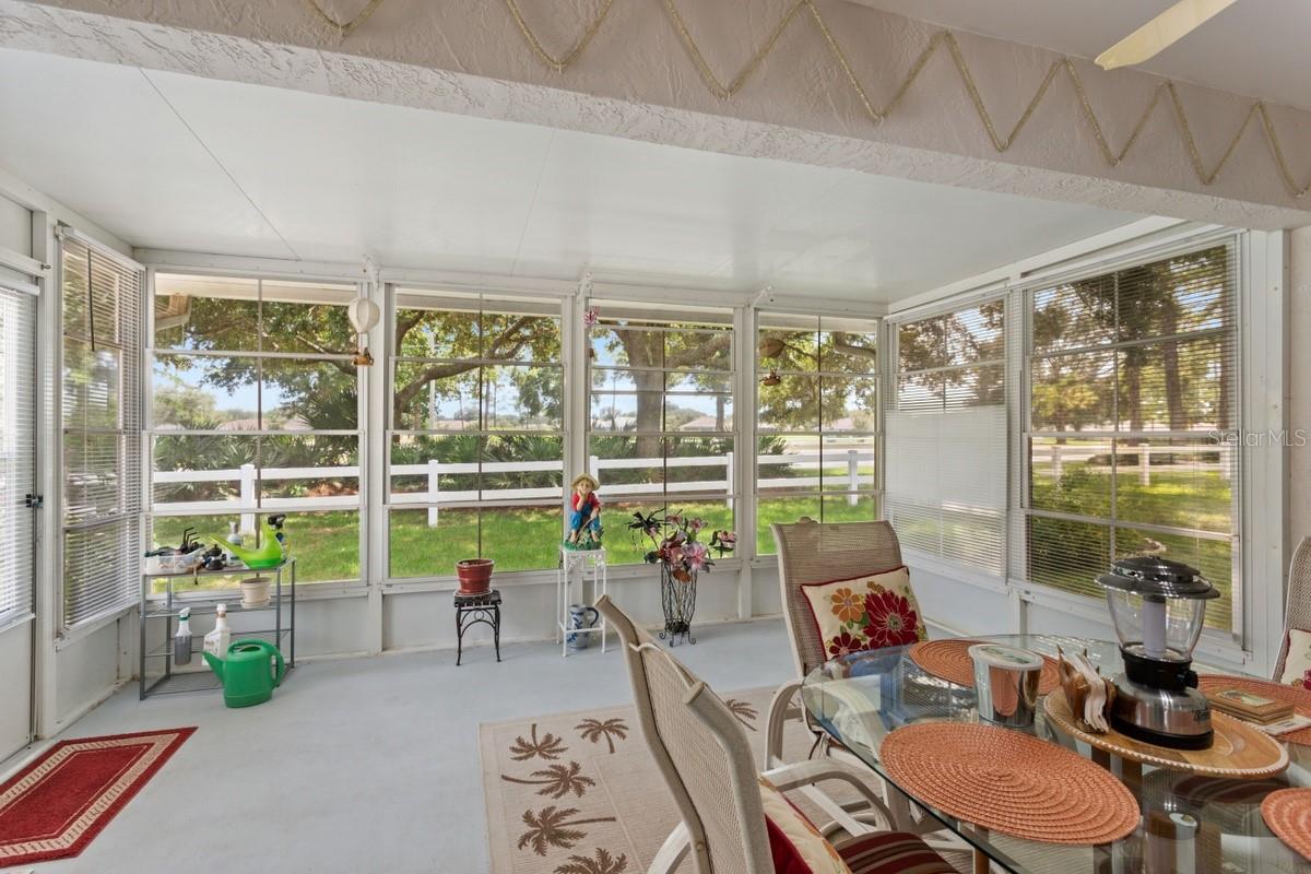 Impressionante casa de 2 quartos e 2 banheiros com escritório, garagem para 2 carros, em um bairro muito procurado na comunidade On Top of the World 55+. A casa fica em um terreno de 7.405 pés quadrados. Esta casa bem conservada possui um jardim frontal oscilante, espaços amplos e abertos com tetos altos e janelas amplas que permitem a entrada de muita luz natural em todos os quartos, muitos armários, chuveiros em ambos os banheiros e uma grande cozinha moderna com eletrodomésticos de aço inoxidável que se abre para uma copa com grandes janelas salientes. Ao entrar, é recebido por uma ampla sala de estar/jantar com clarabóia, seguida por uma espaçosa área de estar fechada no alpendre traseiro com vistas panorâmicas sobre grandes árvores verdes e os fairways 17 e 18 do campo de golfe do bairro. Esta casa foi recentemente atualizada com uma entrada pavimentada, novo aquecedor de água, gerador doméstico Generac, telhado (2020), sistema de ar condicionado (2019), painéis solares e janelas com eficiência energética. As atualizações energeticamente eficientes nesta casa, como os painéis solares e as janelas energeticamente eficientes, não só contribuem para uma menor conta de eletricidade, mas também reduzem o impacto ambiental. Ao aproveitar a energia solar e maximizar o isolamento, a casa torna-se mais sustentável e amiga do ambiente, permitindo aos residentes desfrutar dos benefícios de um espaço confortável e económico. A comunidade On Top of the World 55+ oferece comodidades e serviços para seus residentes. Estes incluem um clube com academia, piscina, quadras de tênis e campo de golfe. A comunidade também organiza atividades e eventos, como clubes sociais, aulas e passeios. Além disso, existem serviços de manutenção e segurança no local para garantir um ambiente de vida seguro e confortável.
