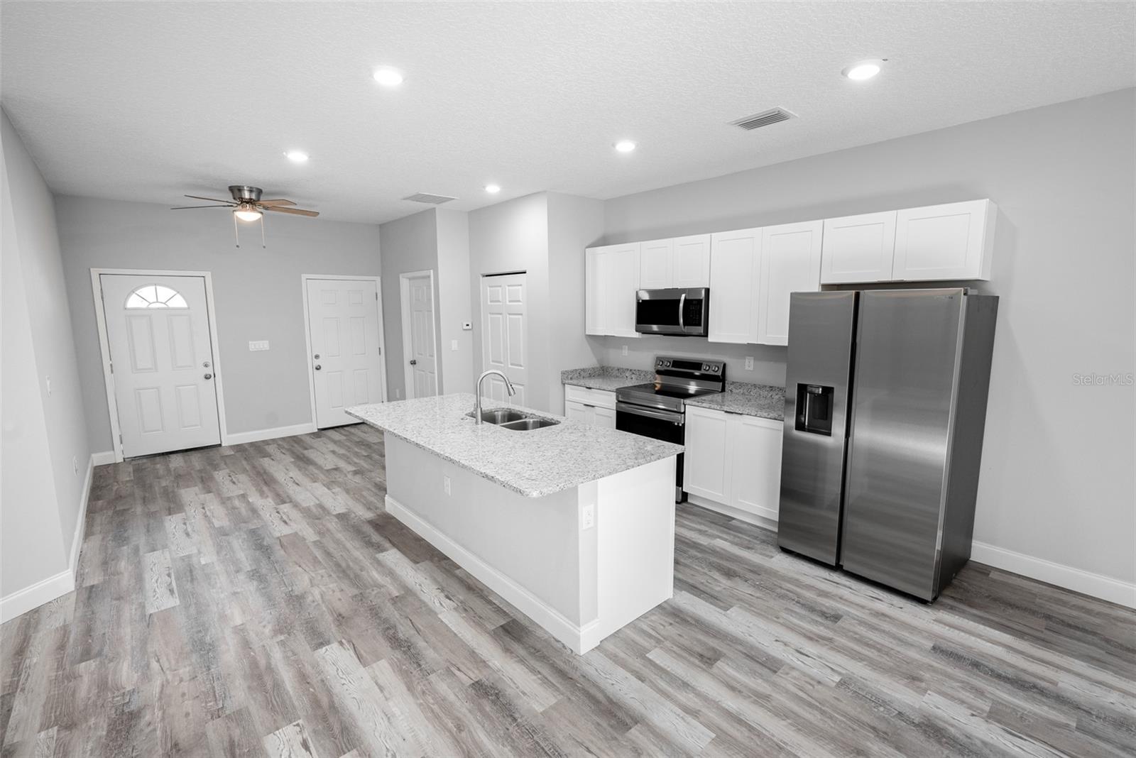 Uma ou mais fotos foram virtualmente encenadas. Venha morar nesta deslumbrante casa recém-construída de 4 quartos e 2 banheiros localizada na SE 24th Street! Esta casa possui um design de conceito aberto perfeito para a vida moderna, com novos eletrodomésticos de aço inoxidável, elegantes bancadas de granito e belos armários em toda a cozinha. As espaçosas áreas de estar e de jantar fluem perfeitamente, proporcionando um excelente espaço para entretenimento ou reuniões familiares. O quarto principal inclui um amplo closet e um luxuoso banheiro privativo. Convenientemente localizado a uma curta caminhada da Maplewood Elementary School e do Shocker Park, que oferece playground, campo de softball e muito espaço verde para atividades ao ar livre. Desfrute de acesso rápido a lojas, restaurantes e todas as comodidades que Ocala tem a oferecer. Sem taxas HOA, você terá a liberdade de desfrutar de sua casa sem custos extras ou restrições. Esteja você procurando um lugar para criar uma família ou um retiro tranquilo, esta casa combina estilo, conforto e conveniência em um pacote perfeito!