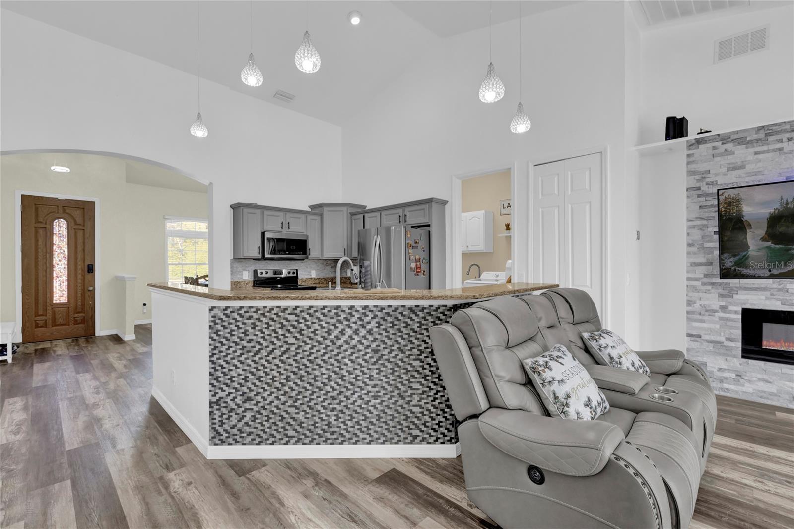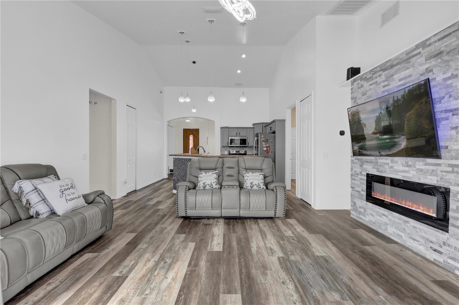 Bem-vindo a esta casa lindamente atualizada que oferece luxo e funcionalidade. Localizada em mais de um terço de acre, esta propriedade oferece espaços excepcionais, acabamentos modernos e atualizações com eficiência energética. A partir do momento em que você entra, você notará o lindo novo piso que flui por toda a casa, criando uma atmosfera convidativa e contínua. A espaçosa sala de estar possui tetos abobadados, criando uma sensação aberta e arejada, enquanto o quarto principal oferece um retiro sereno com elegantes tetos em bandejas. Um closet embutido garante muito espaço de armazenamento, e o banheiro privativo recém-atualizado inclui um chuveiro elegante, combinando conforto e estilo. O entretenimento é muito fácil com a quadra de basquete nos fundos e uma lareira elétrica na sala de estar, criando um ambiente aconchegante o ano todo. Esta casa é tão eficiente em termos energéticos quanto bonita, com painéis solares pagos garantindo uma conta de luz mensal extremamente baixa, um telhado totalmente novo, uma unidade de CA com 4 anos de idade e janelas isoladas à prova de furacões para maior paz de mente. O novo sistema de amaciador de água acrescenta um nível extra de conforto à sua vida diária. Saia para desfrutar do vasto quintal, completo com quadra de basquete, perfeito para atividades recreativas e reuniões ao ar livre. Além disso, um galpão de armazenamento 30x12 está disponível para compra separadamente, oferecendo espaço de armazenamento adicional para suas ferramentas ou equipamentos. Esta casa realmente tem tudo: atualizações elegantes, recursos de economia de energia e amplo espaço interno e externo. Não perca esta incrível oportunidade de possuir um pedaço do paraíso!
