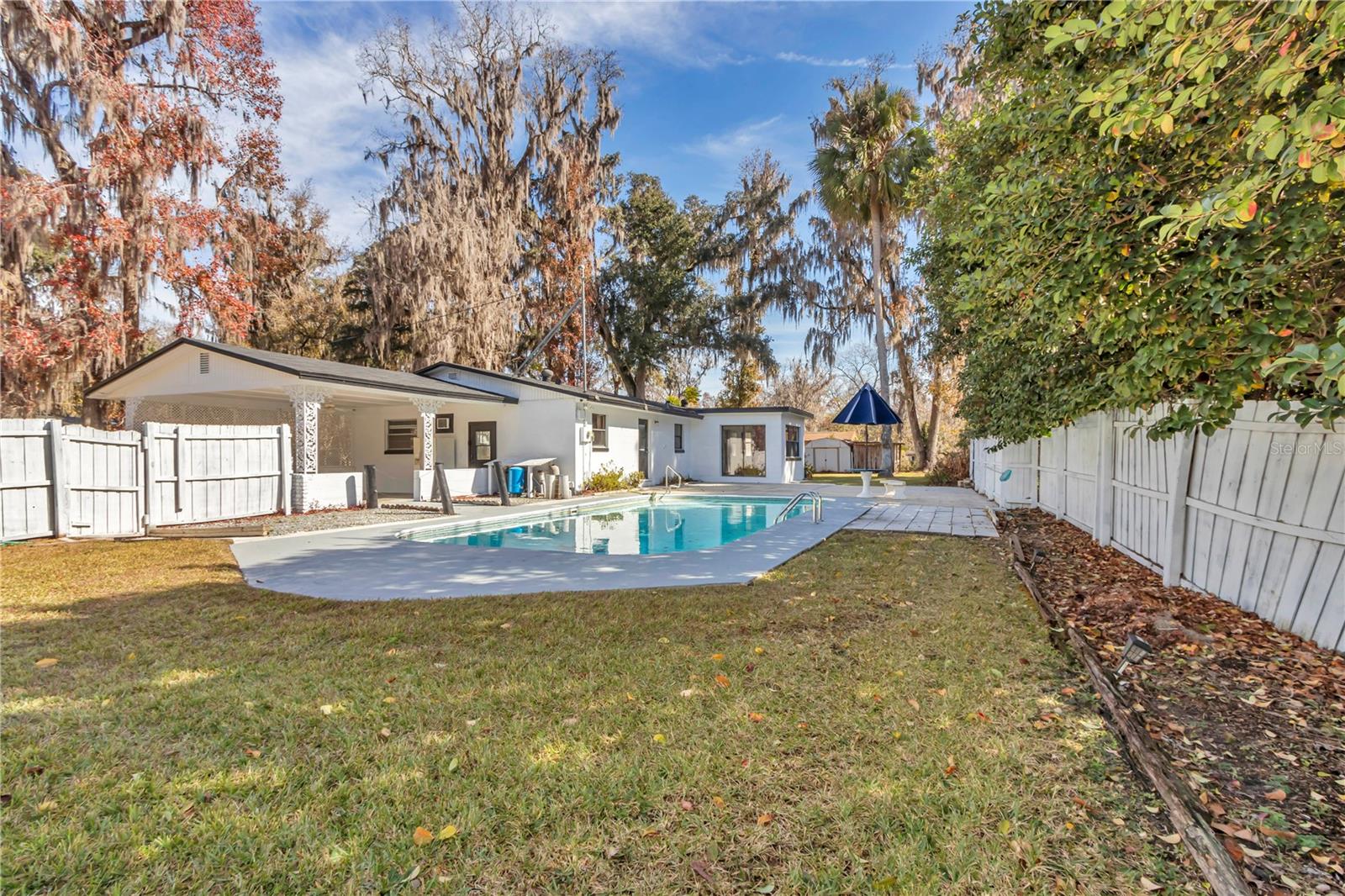 NOVA AVALIAÇÃO FHA EM PEDIR SEM REPAROS !! Incrível apelação do meio-fio em grandes dimensões (1/2 acre), lote de esquina sem HOA, piscina subterrânea, quintal privativo e galpão de armazenamento! A varanda frontal coberta leva a uma casa moderna e renovada com pranchas de vinil luxuosas para toda a casa. Espaçosa sala de estar com vista para cozinha com Peninsula Island com bancadas em granito atualizadas e armários novos com puxadores de níquel. Geladeira e fogão inox novos. A cozinha tem vista para a área de café da manhã que leva a uma sala coberta de grandes dimensões com belas vistas para a grande piscina subterrânea com pátio de grandes dimensões. Esta é uma verdadeira casa de três quartos e três banheiros completos com planta de quartos divididos. O quarto principal fica à direita da casa e é grande com chuveiro com porta de vidro. Voltando pela casa até a espaçosa lavanderia e lavabo! Do outro lado da casa fica o segundo quarto com banheiro privativo com portas de vidro com acabamentos modernos. O terceiro quarto é basicamente dois quartos em um com área de estar. Seu hóspede pode usar o banheiro ao lado do corredor com porta de correr de vidro e acabamentos modernos, incluindo armários novos e penteadeira de granito grande. Telhado 2021, aquecedor de água quente Hvac 2018 e 2022. Bomba de piscina 2025 Saindo da sala da Flórida, fora da porta dupla de vidro deslizante para o oásis do seu quintal que tem cerca de privacidade e também um galpão de armazenamento. Garagem para 2 carros excelente para estacionamento ou sombra coberta para piscina! Tudo super perto do mercado Grand Oaks, do teatro e do centro da cidade!