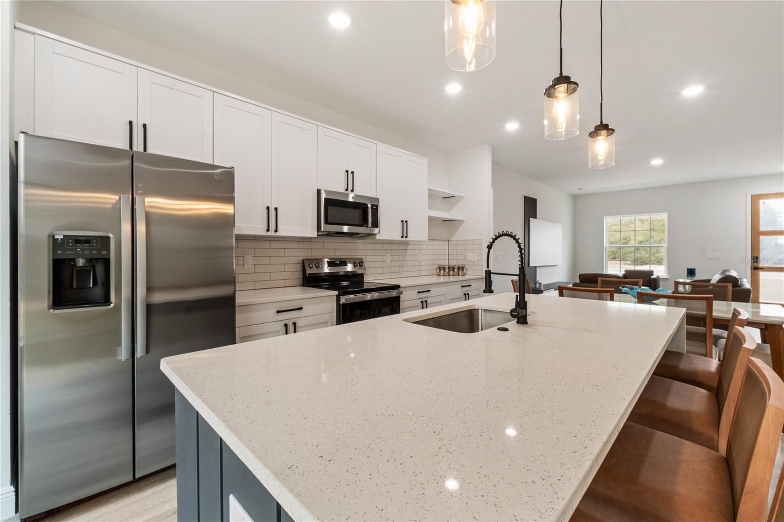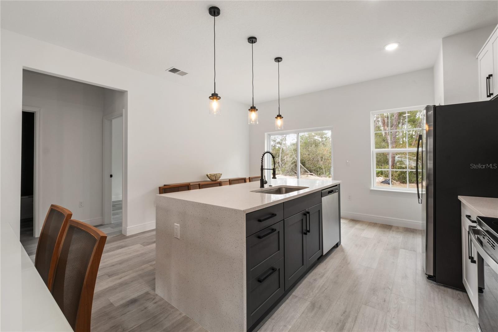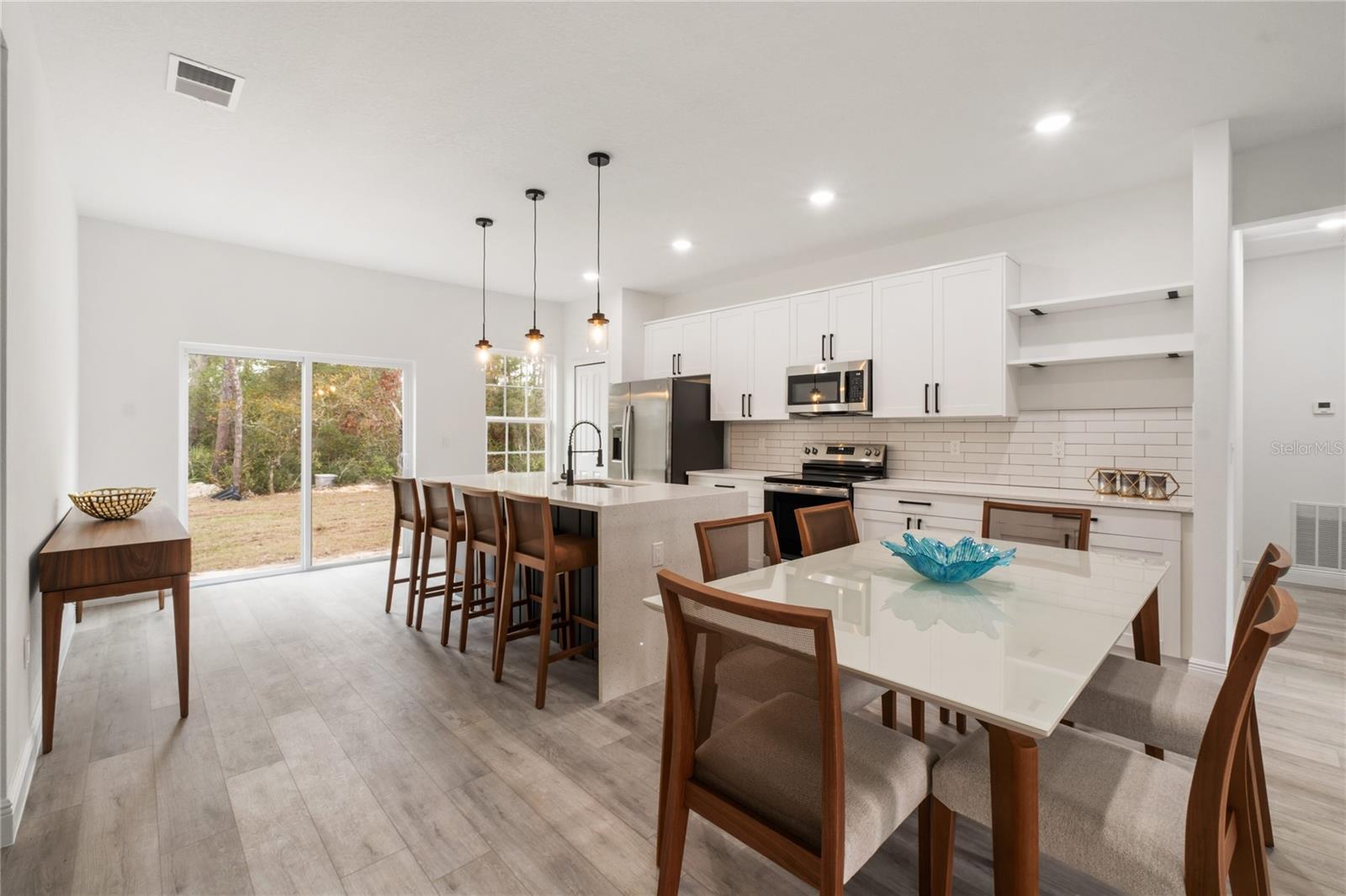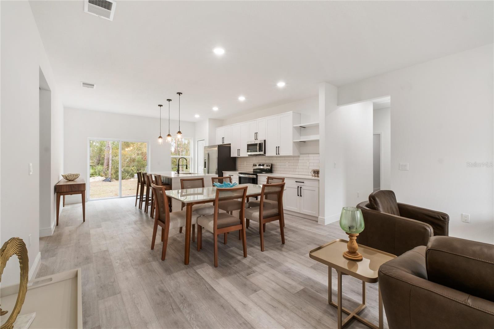 Bem-vindo à sua nova casa em Ocala, FL, localizada em um terreno com faixa verde nos fundos. Disponível para sua mudança imediata. Situada numa localização privilegiada, esta casa apresenta uma estética moderna e espaços habitacionais generosos. Com 4 quartos confortáveis, 2 banheiros e uma espaçosa planta aberta, é perfeito para reuniões familiares ou para quem gosta de se divertir. A cozinha está totalmente equipada com eletrodomésticos de aço inoxidável, incluindo fogão, geladeira, lava-louças e micro-ondas. Aproveite a conveniência de uma ilha e um amplo espaço no gabinete do shaker para todas as suas necessidades culinárias. A cozinha também conta com bancada de quartzo com bordas em cascata, backsplash e ilha com parede, agregando um toque de elegância ao seu dia a dia. Várias atualizações de armários em toda a casa Ambos os banheiros possuem bancadas de quartzo, pia dupla e box de vidro no banheiro principal Toda a área de estar e os quartos possuem piso vinílico para fácil manutenção e uma aparência coesa em toda a casa. Não perca esta oportunidade de viver uma vida luxuosa em uma localização conveniente. Agende hoje mesmo a sua visita! *Móveis incluídos*