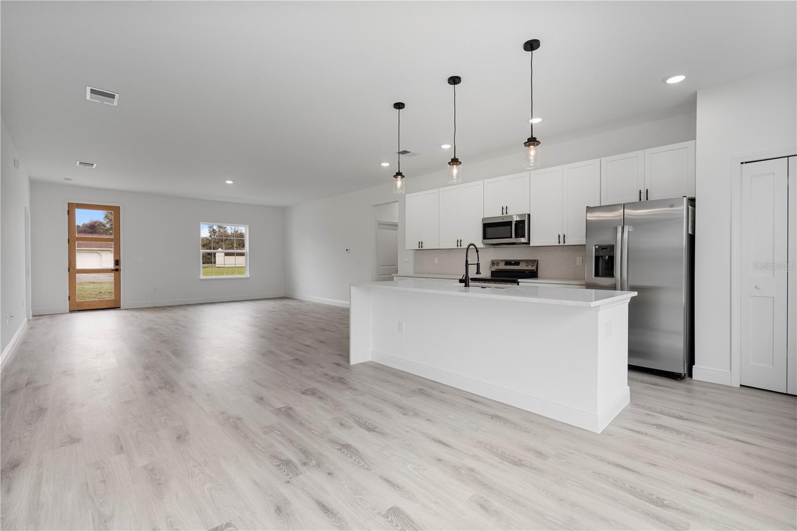 Casa nova e moderna em Ocala - conforto, estilo e conveniência! Apresentamos esta incrível casa recém -construída em Ocala, projetada para oferecer o máximo conforto e estilo para sua família. Com 4 quartos espaçosos, todos equipados com armários personalizados que garantem excelente organização e conveniência. A casa tem 2 banheiros bem acabados, ambos com armários de alta qualidade, trazendo sofisticação e funcionalidade. Ao entrar, você será recebido por uma planta baixa que integra perfeitamente a sala de estar, a cozinha e a sala de jantar, criando um ambiente arejado e acolhedor. A cozinha, um verdadeiro destaque, oferece bancadas de quartzo, uma ilha central, uma despensa espaçosa e também vem com armários e eletrodomésticos incluídos, ideais para quem gosta de cozinhar e divertir. A casa também tem uma varanda encantadora e um pequeno jardim, proporcionando um espaço agradável para momentos de lazer. As portas deslizantes na sala permitem acesso direto à área externa, adicionando mais espaço ao espaço. Além disso, a casa possui uma área de lavanderia dedicada, pronta para ser equipada conforme necessário. A garagem de dois carros é prática, com um portão automático para maior segurança e conforto. Todos os detalhes desta casa foram cuidadosamente planejados para oferecer o equilíbrio perfeito entre conforto, conveniência e estilo. E o melhor de tudo: uma garantia de construção! Não perca a chance de viver no coração de Ocala em uma casa que combina tudo o que você e sua família merecem. Agende sua visita hoje e imagine como seria viver em um lugar como este.