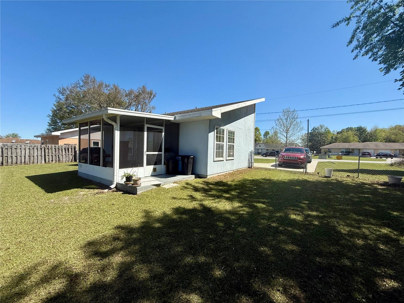 Uma casa aconchegante construída em 2001 no sudeste de Ocala, na Flórida, provavelmente apresentaria um design confortável e convidativo, com características únicas que incluem: Exterior: Telhado de duas águas ou quadril, incorporando um lanchone coberto ao longo de um espaçoso quintal cercado para apreciar o clima quente da Flórida Interior: uma planta com 3 quartos e 2 banheiros. Os espaços sociais vivos têm clarabóias, piso laminado e ampla luz natural. A cozinha equipada com armários suficientes, uma barra de café da manhã e bancadas espaçosas. Espaço ao ar livre: uma área de lanai ou pátio exibida, com vista para o quintal de tamanho modesto e bem conservado, com um galpão de armazenamento. Muita privacidade!